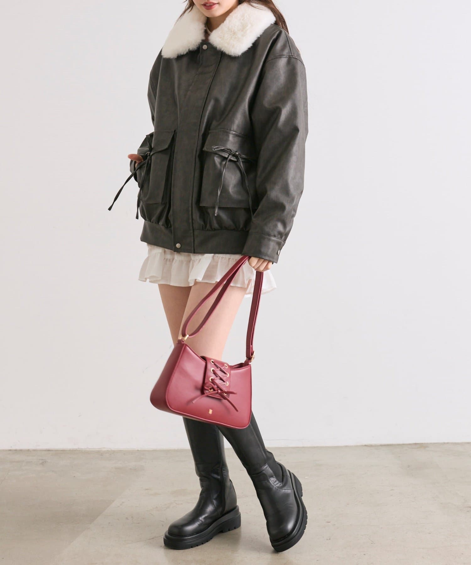 ・ミニワンピやミニスカートに合わせてガーリーな着こなしがおすすめです。