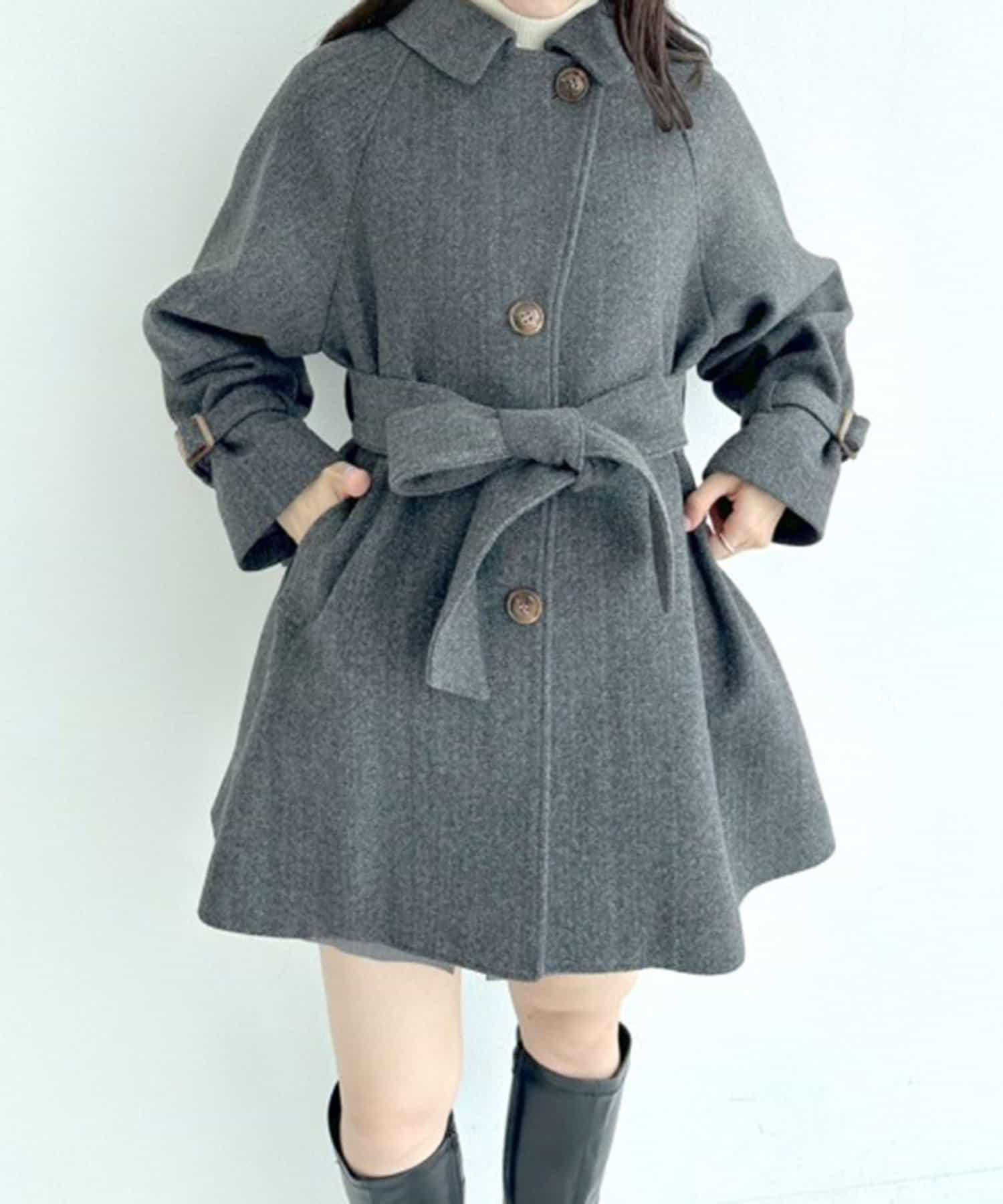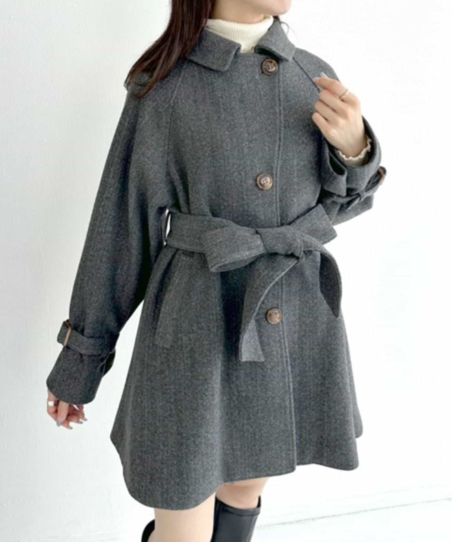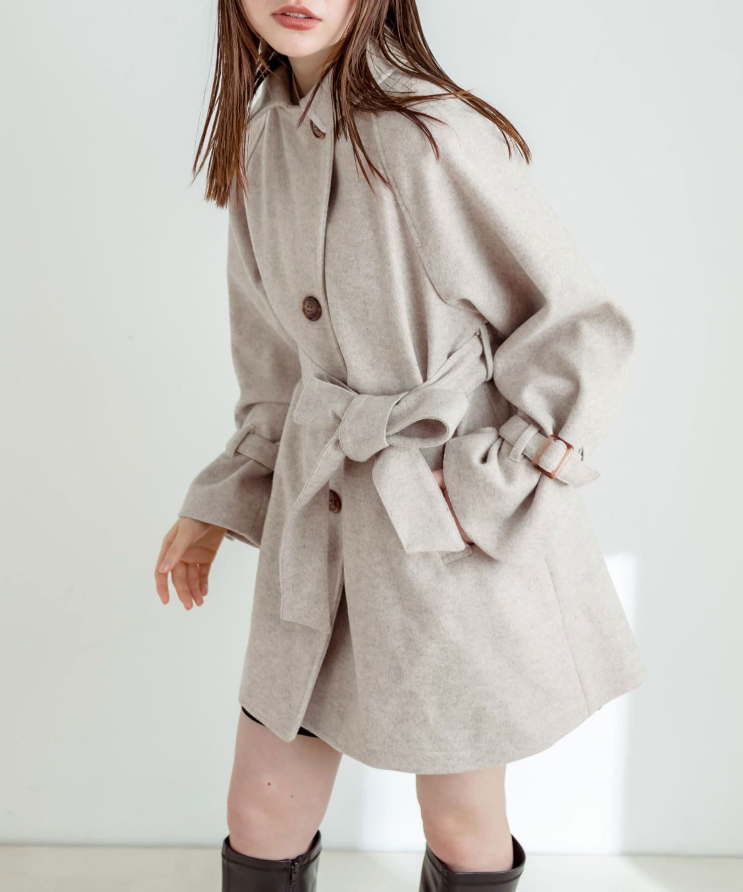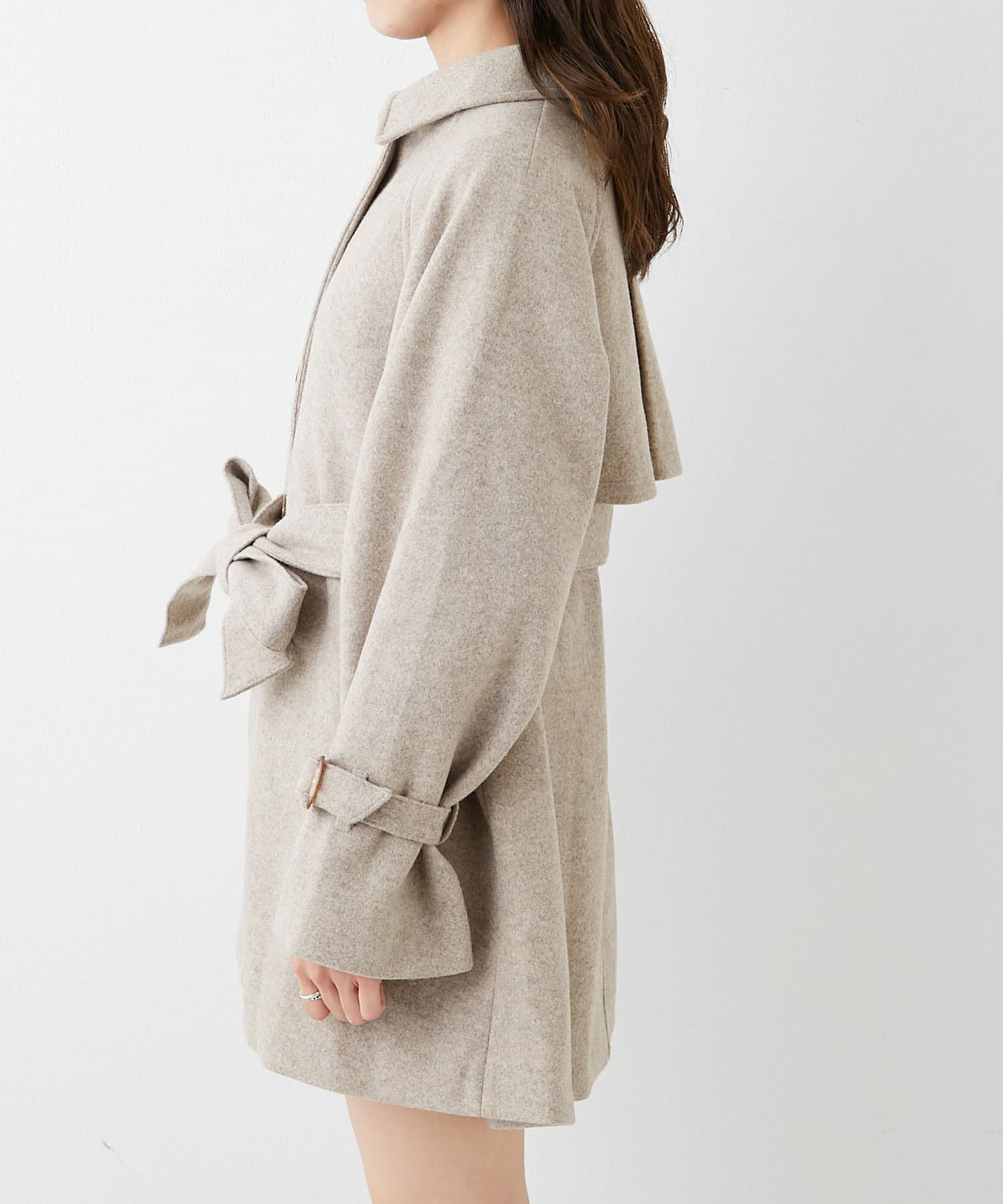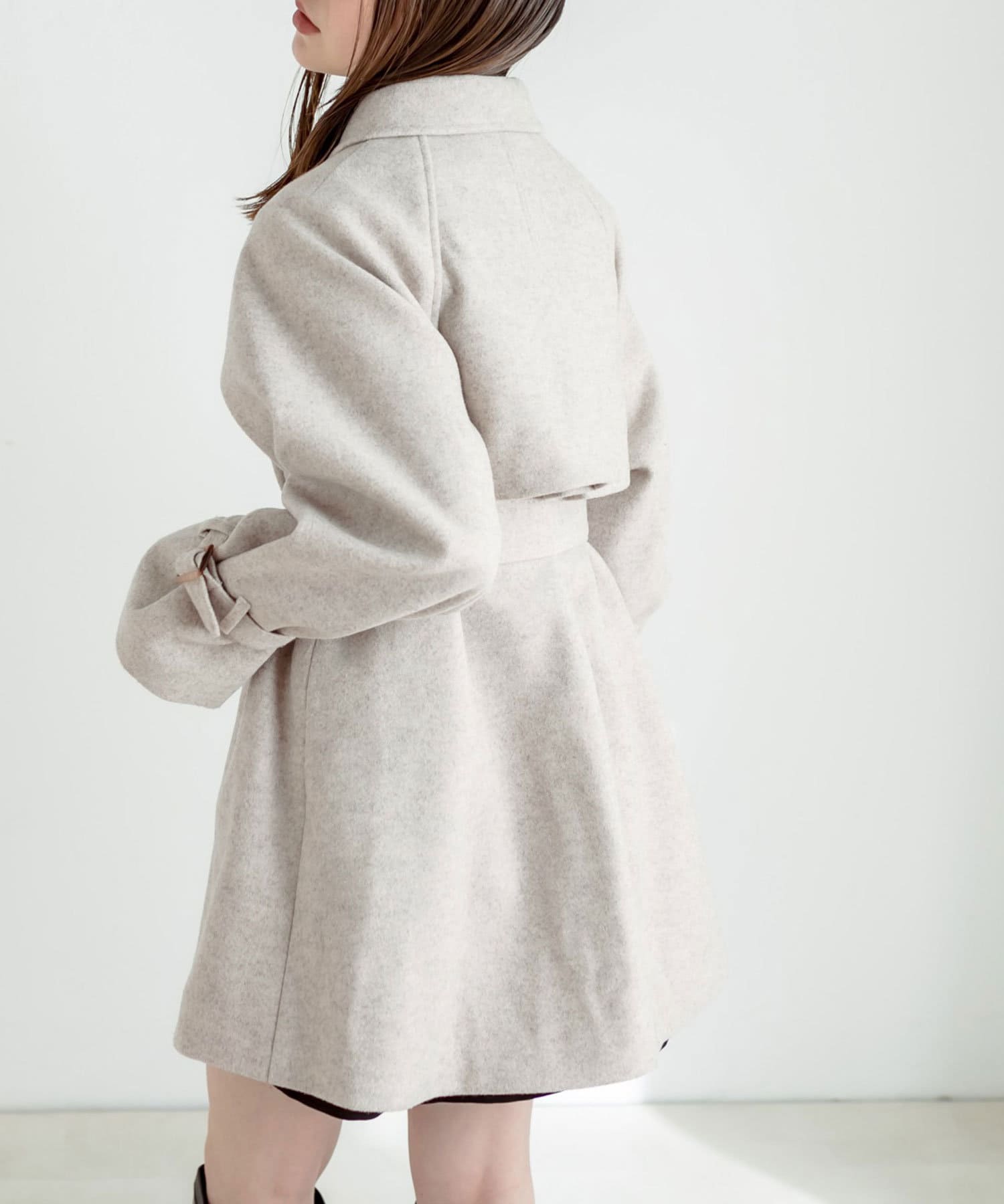 ・程よくAラインに広がるシルエットが大人可愛いトレンチ風コート。