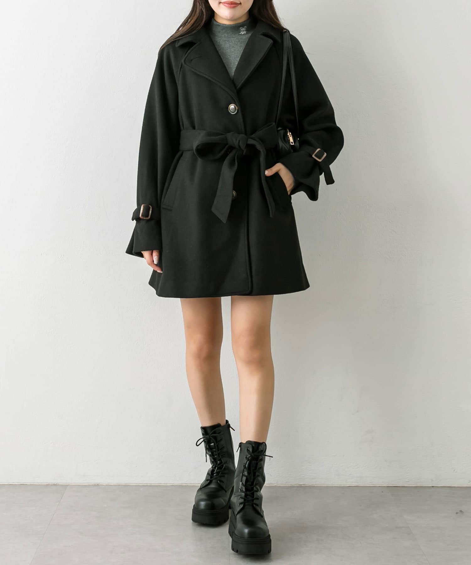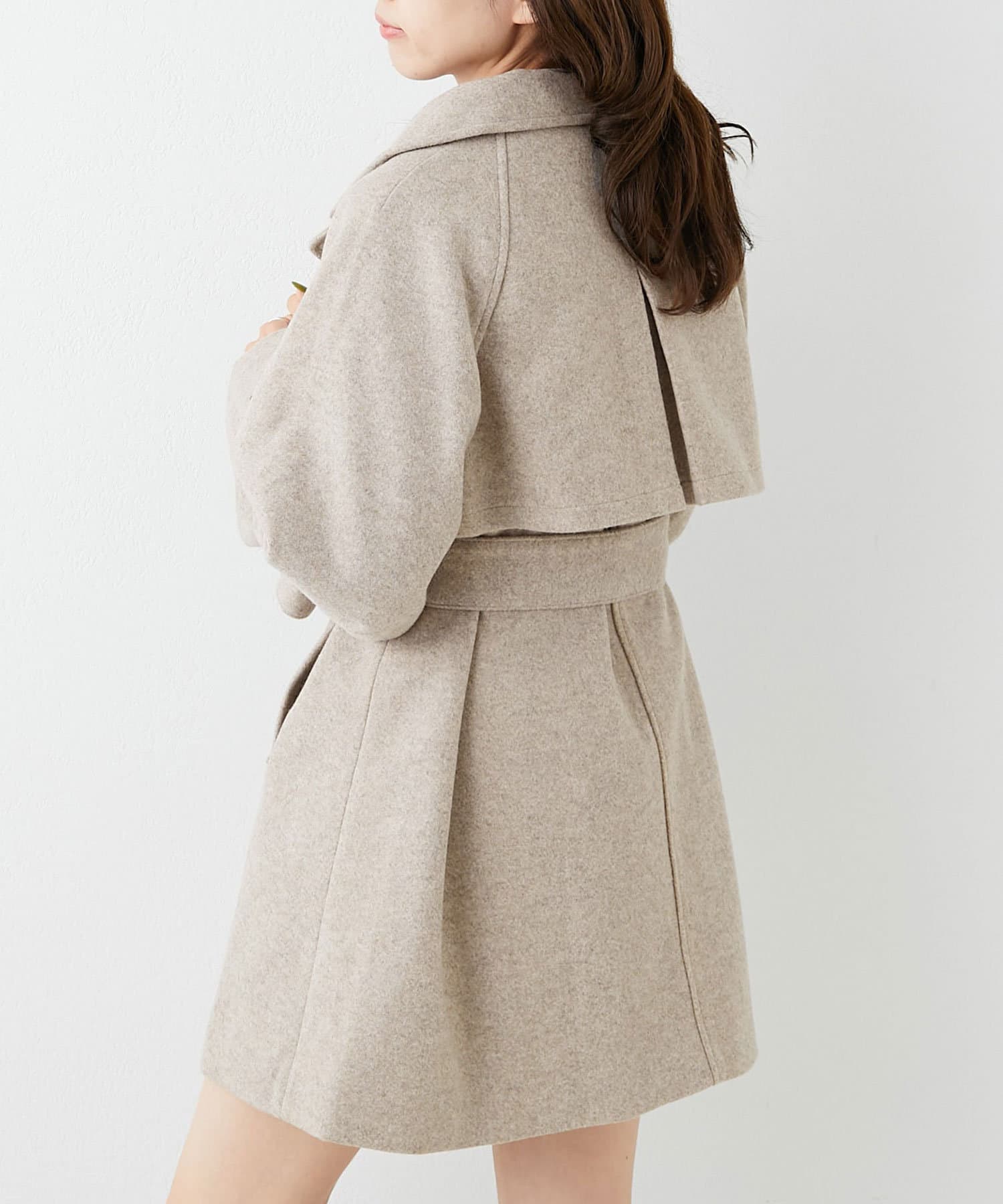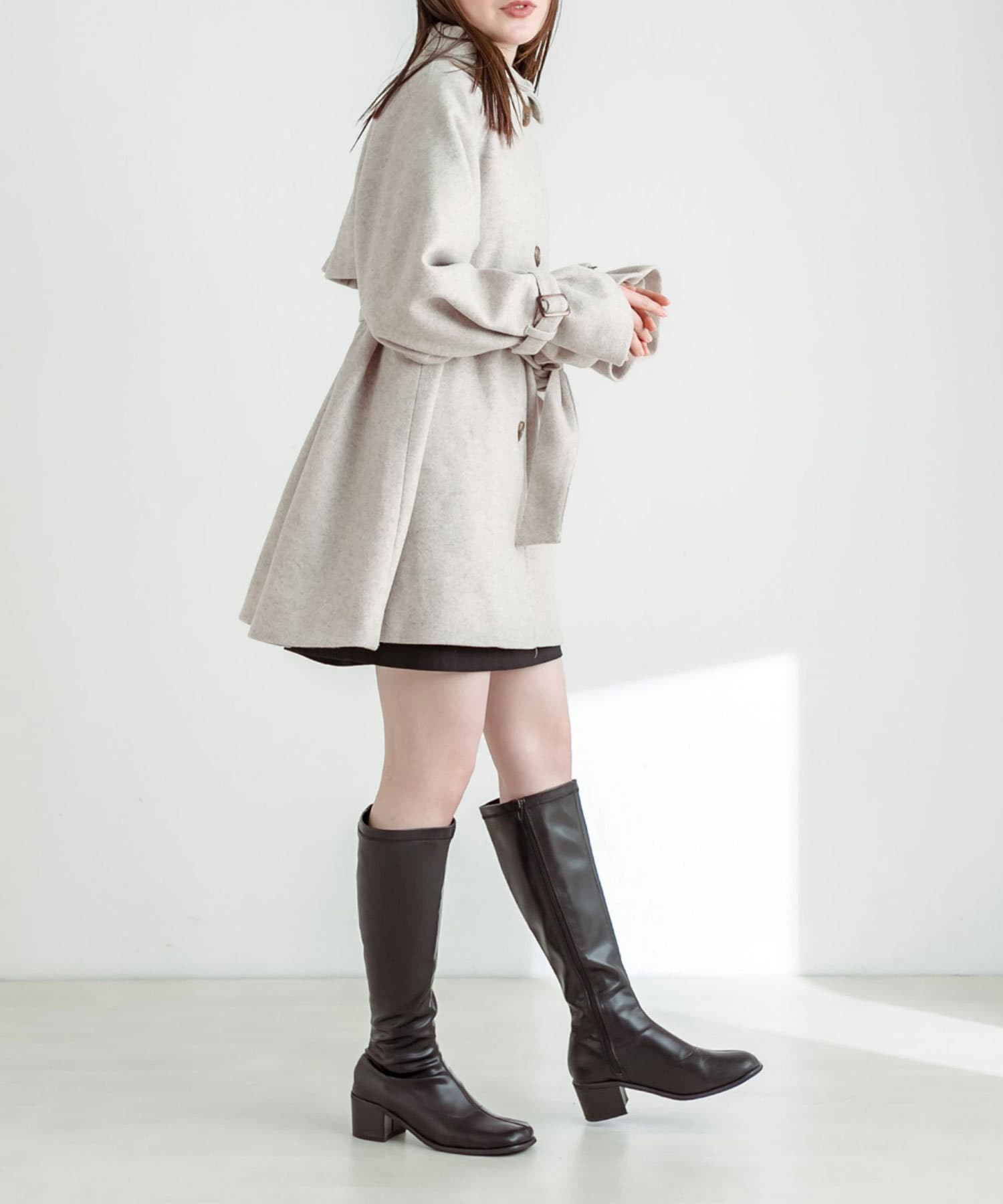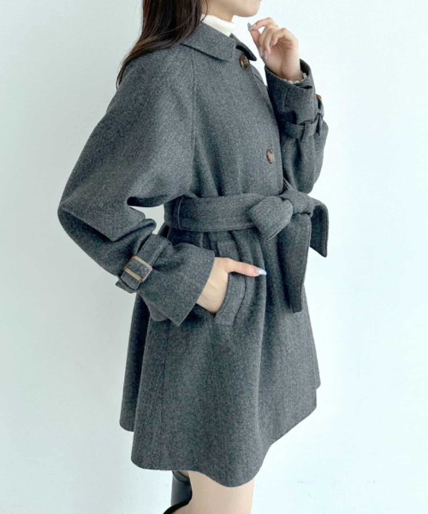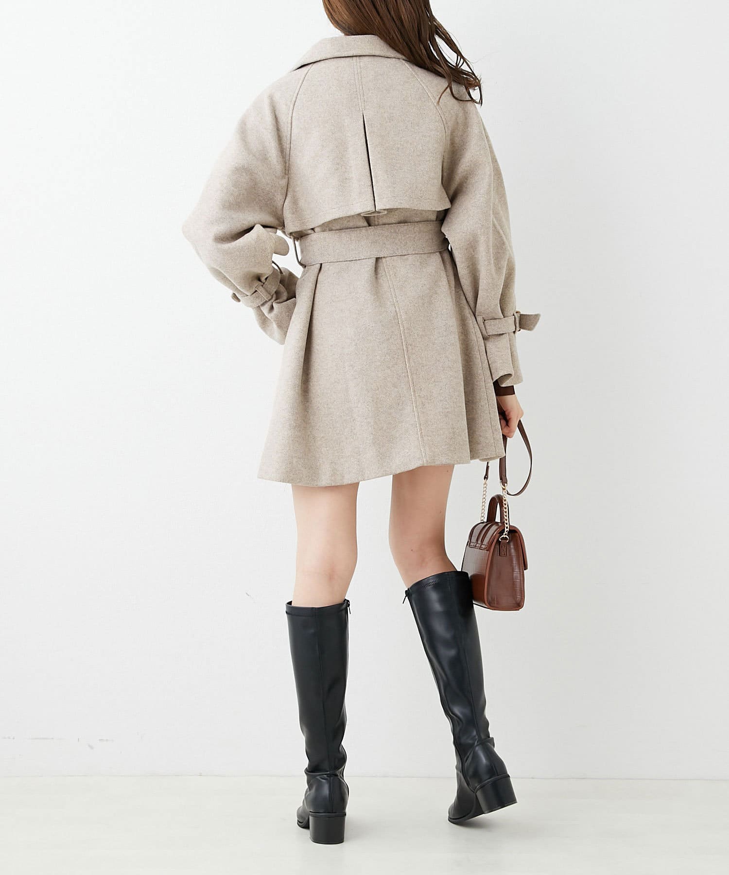 ・程よくAラインに広がるシルエットが大人可愛いトレンチ風コート。
