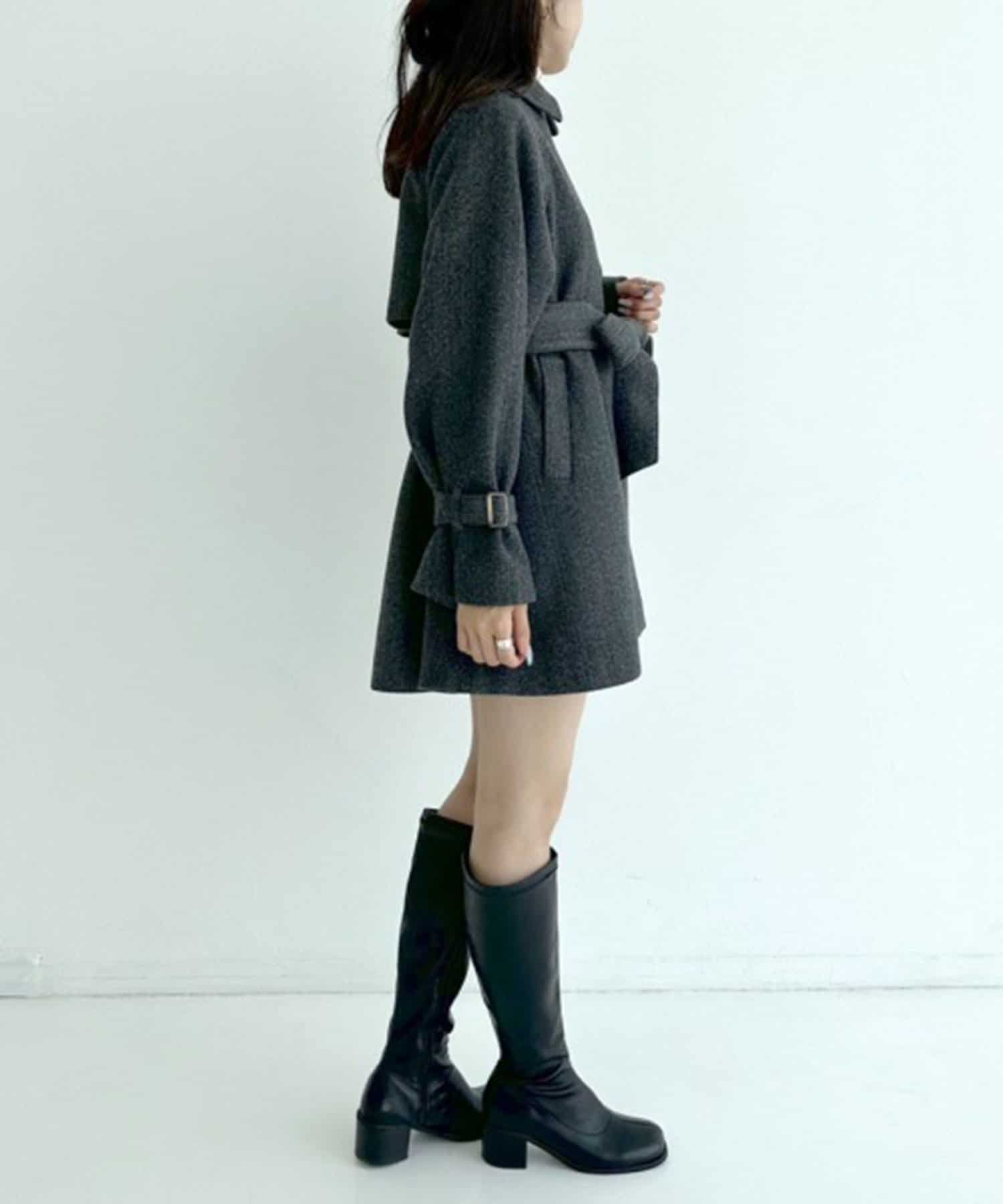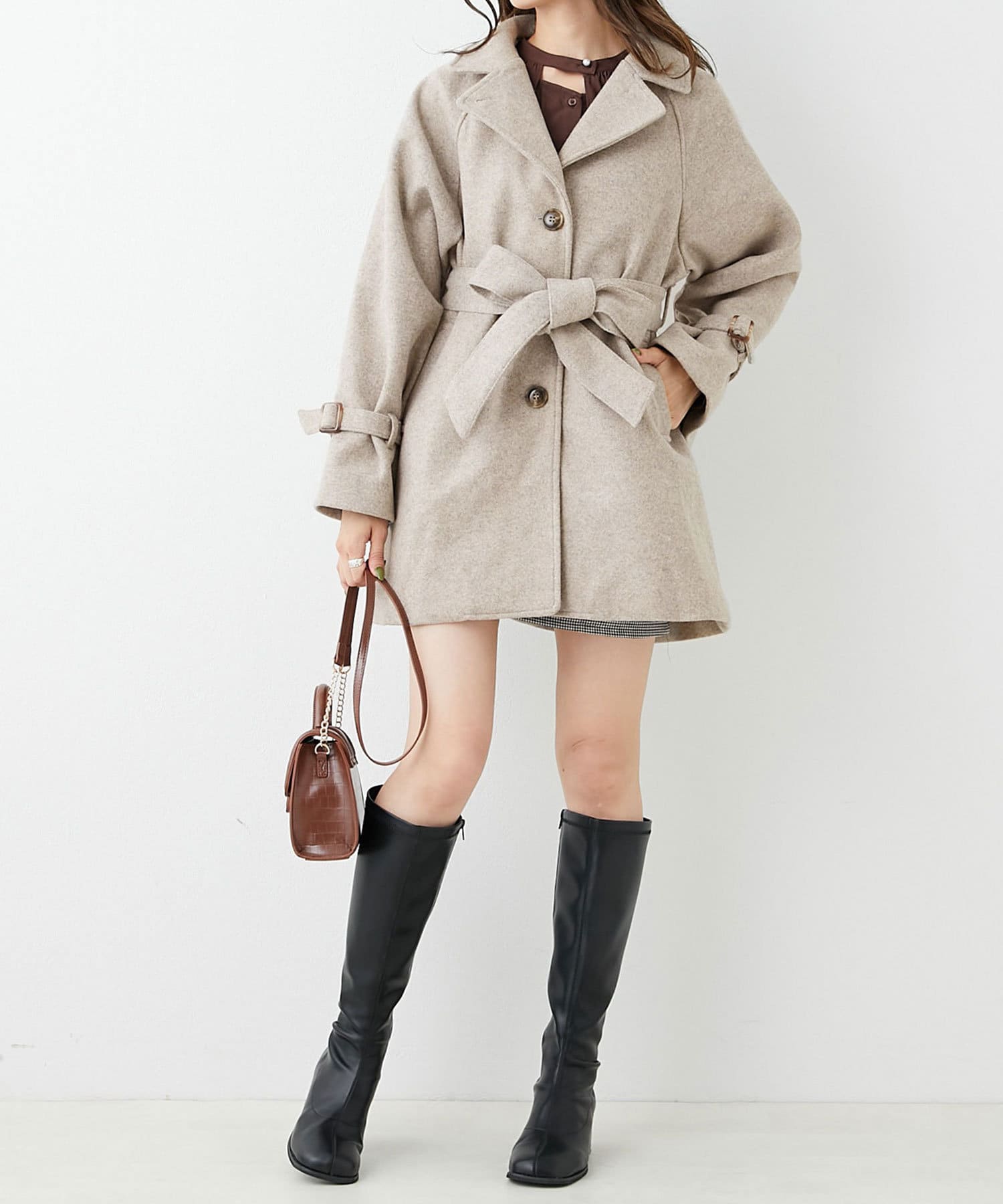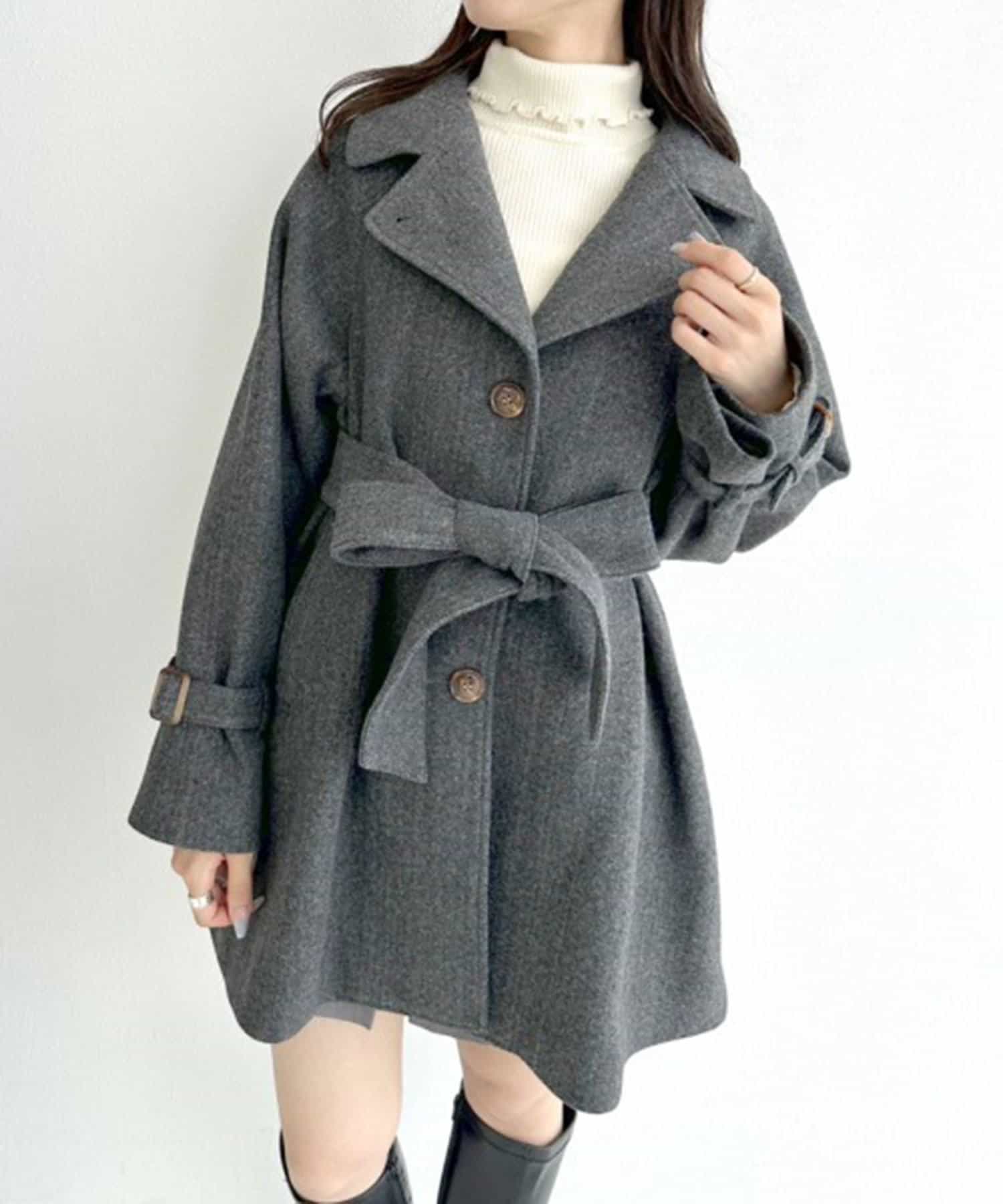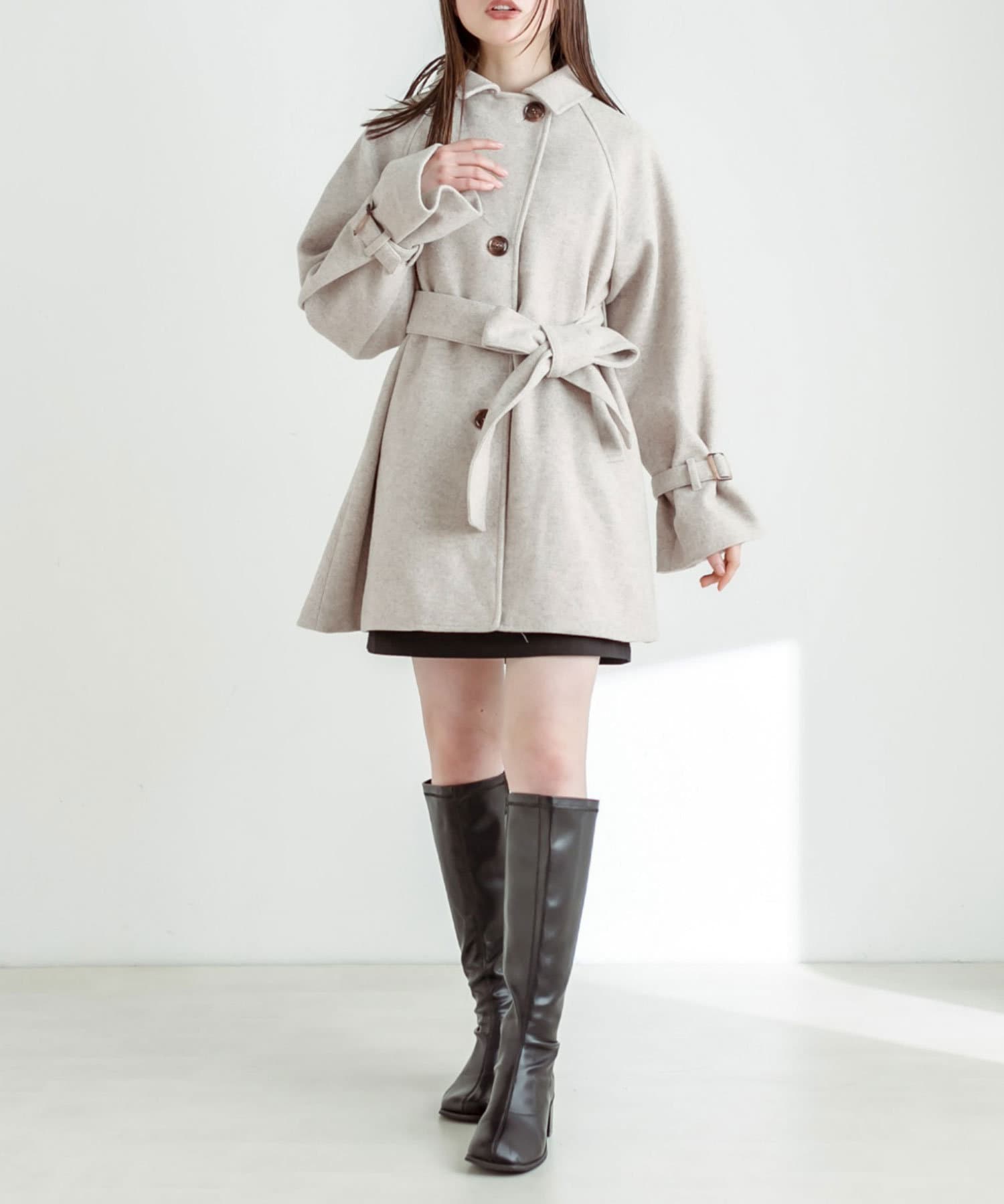 ・程よくAラインに広がるシルエットが大人可愛いトレンチ風コート。