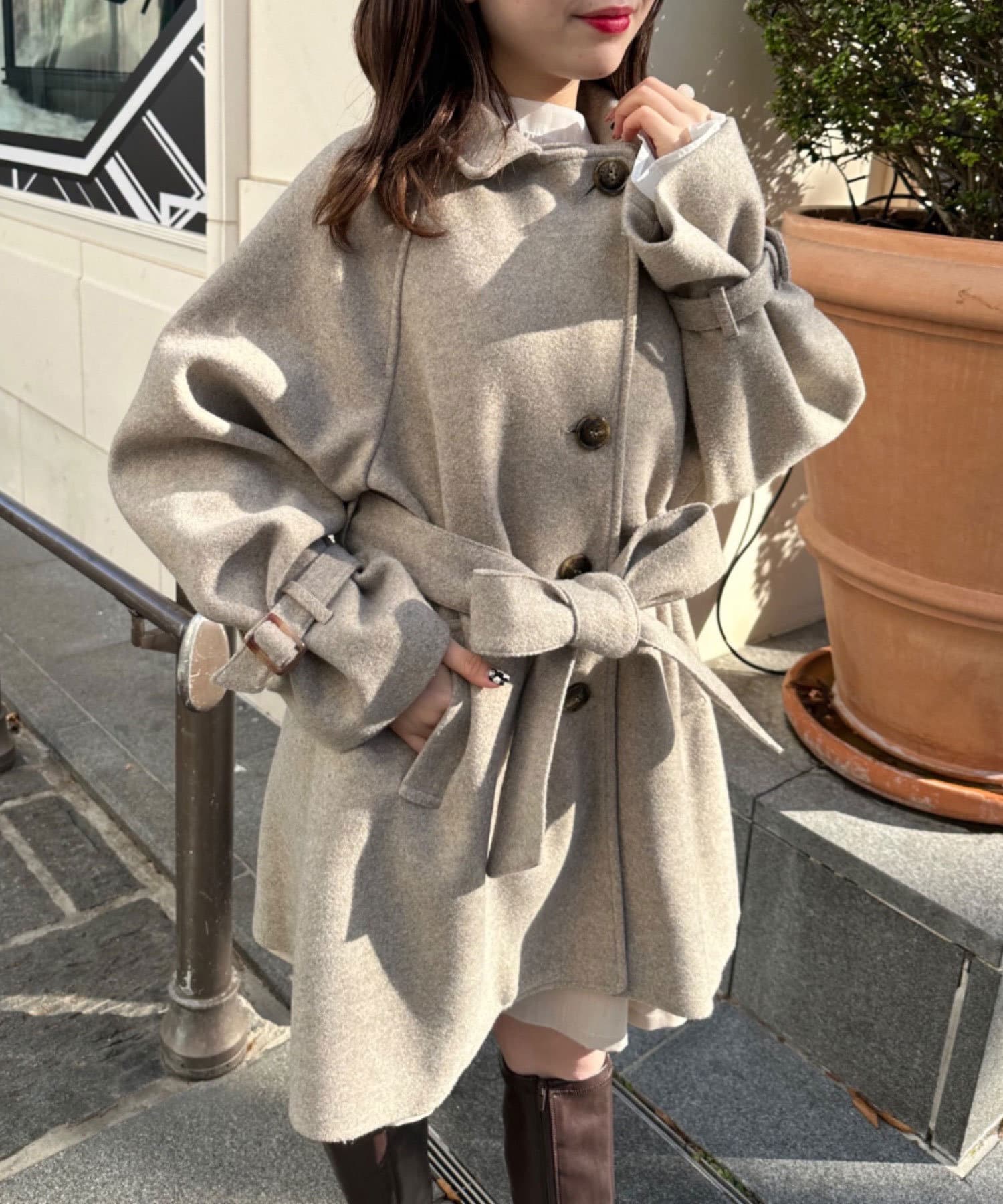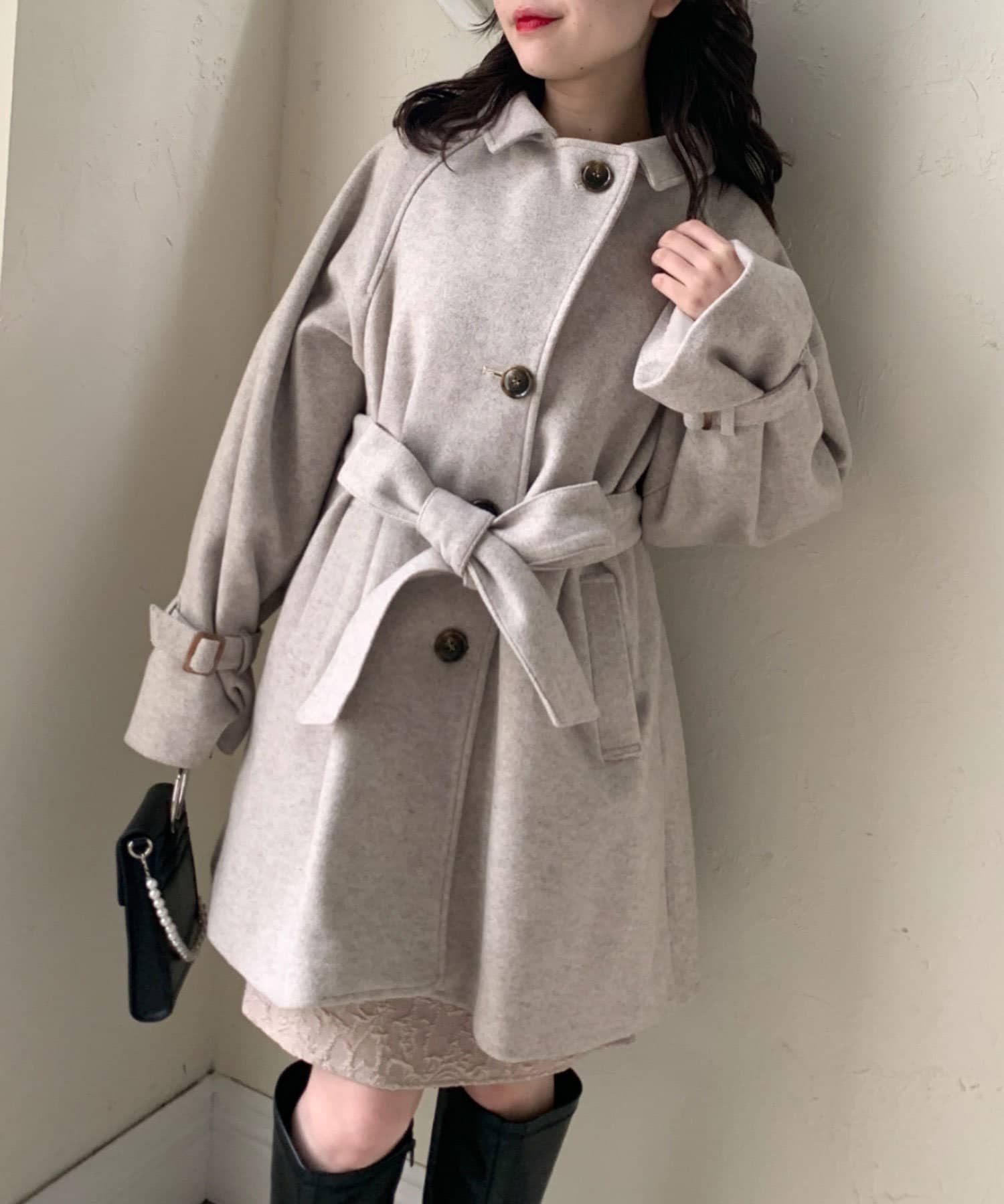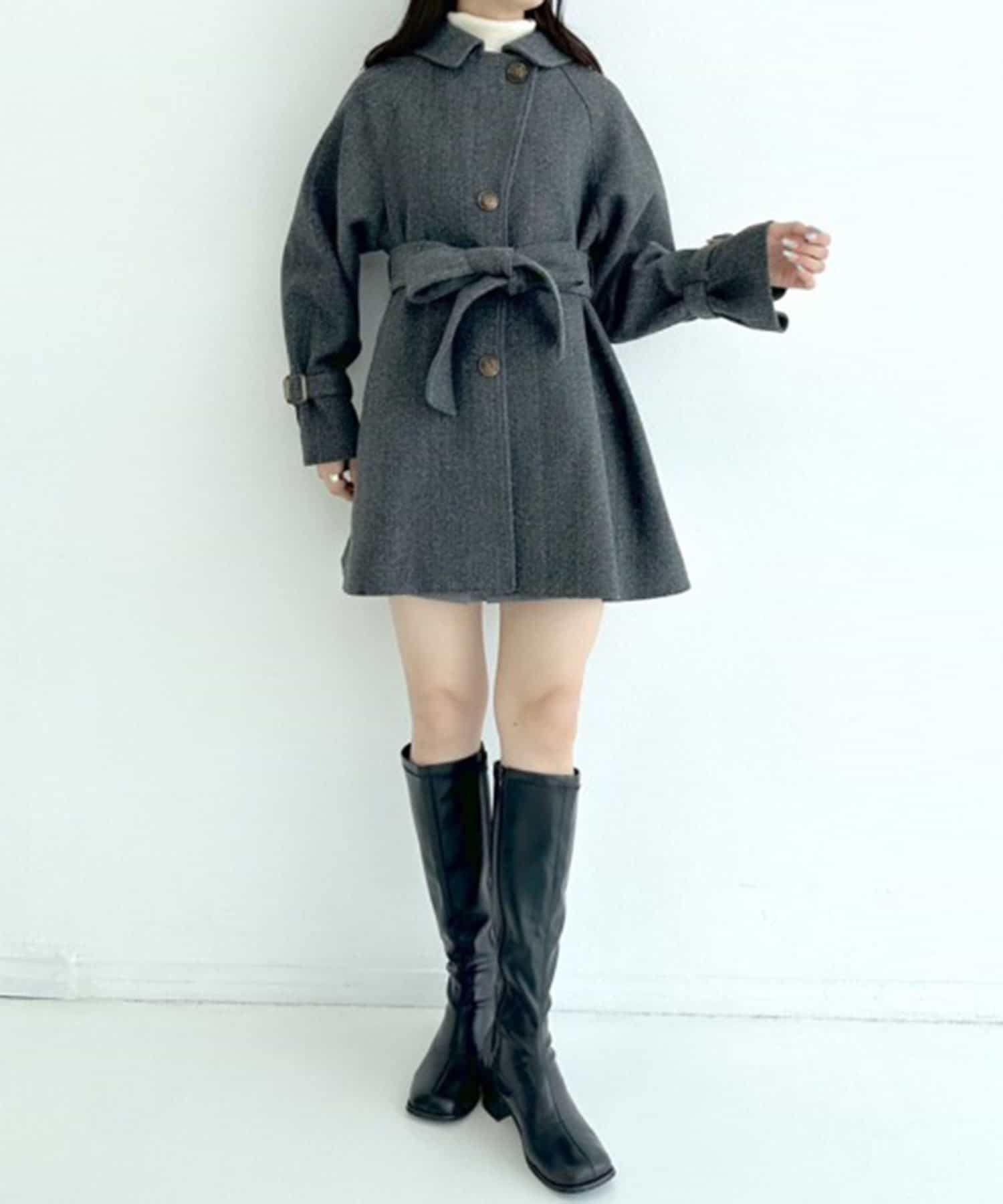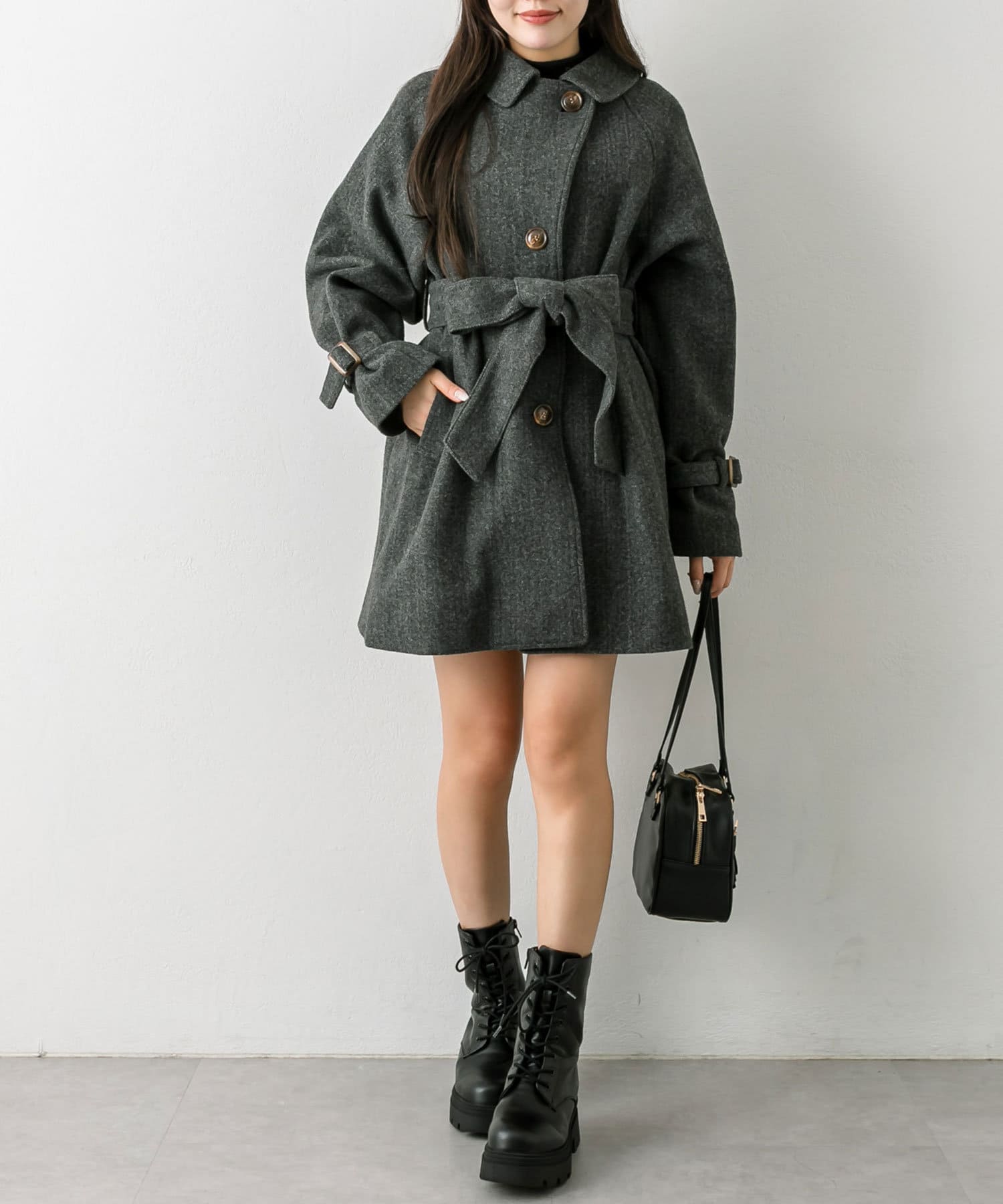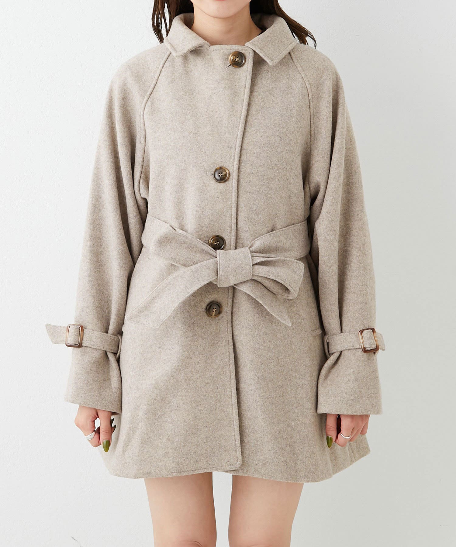 ・程よくAラインに広がるシルエットが大人可愛いトレンチ風コート。