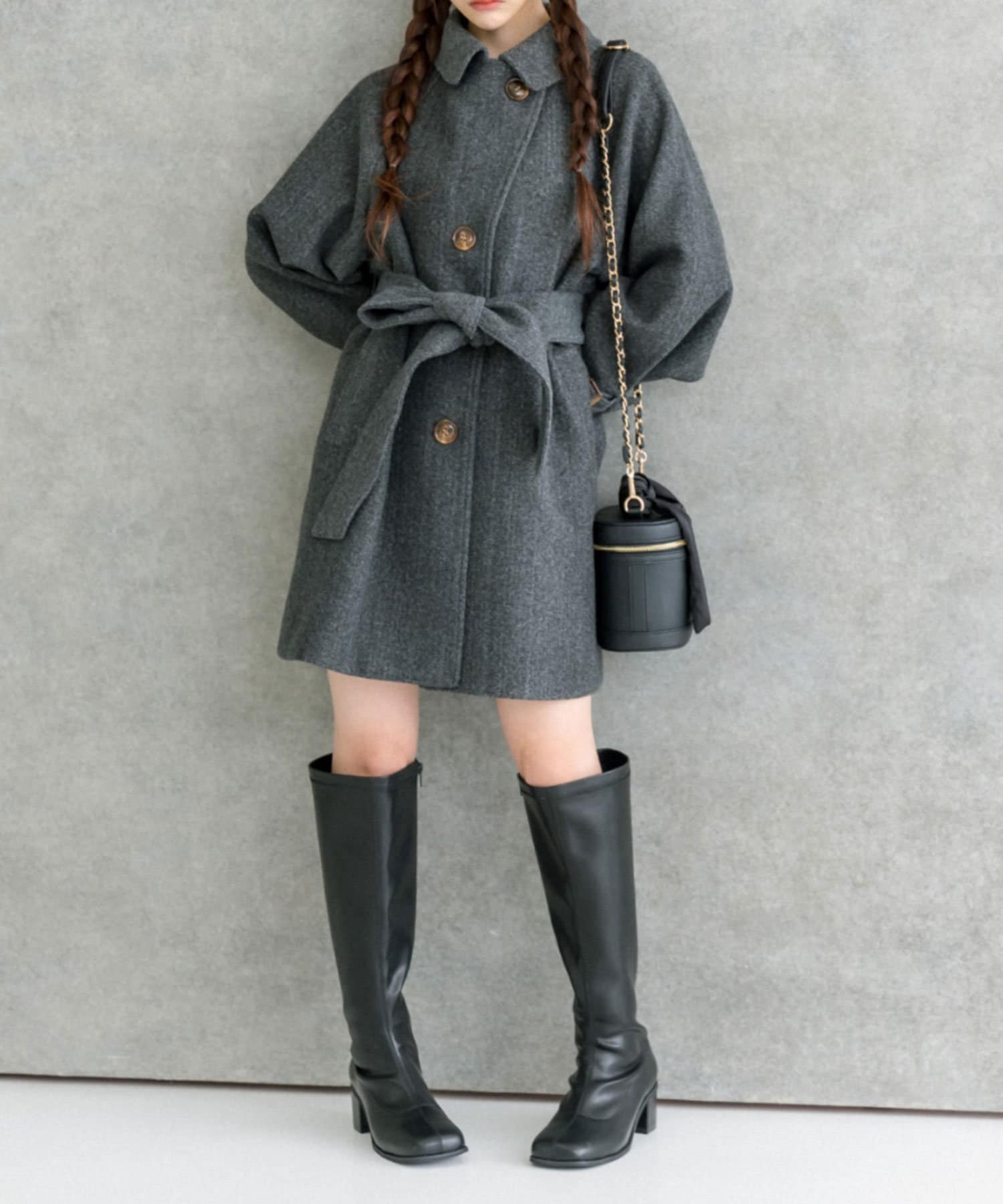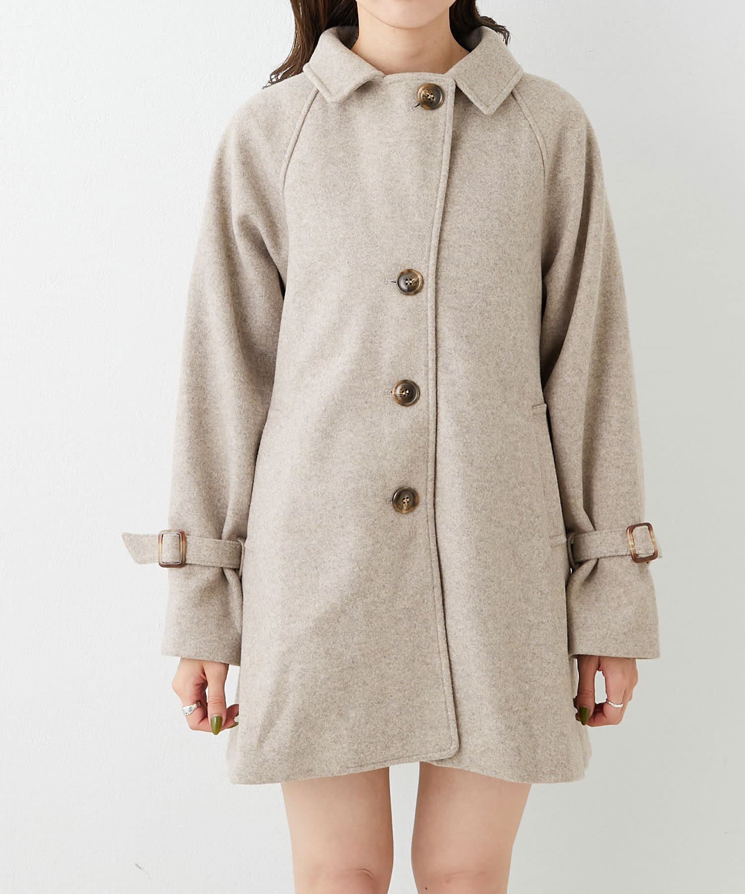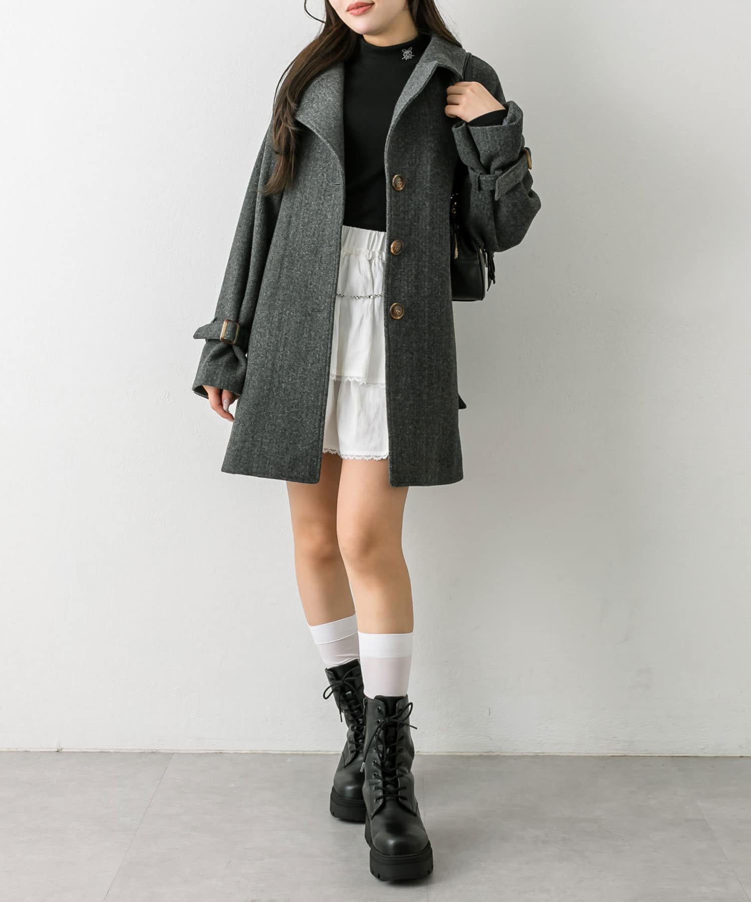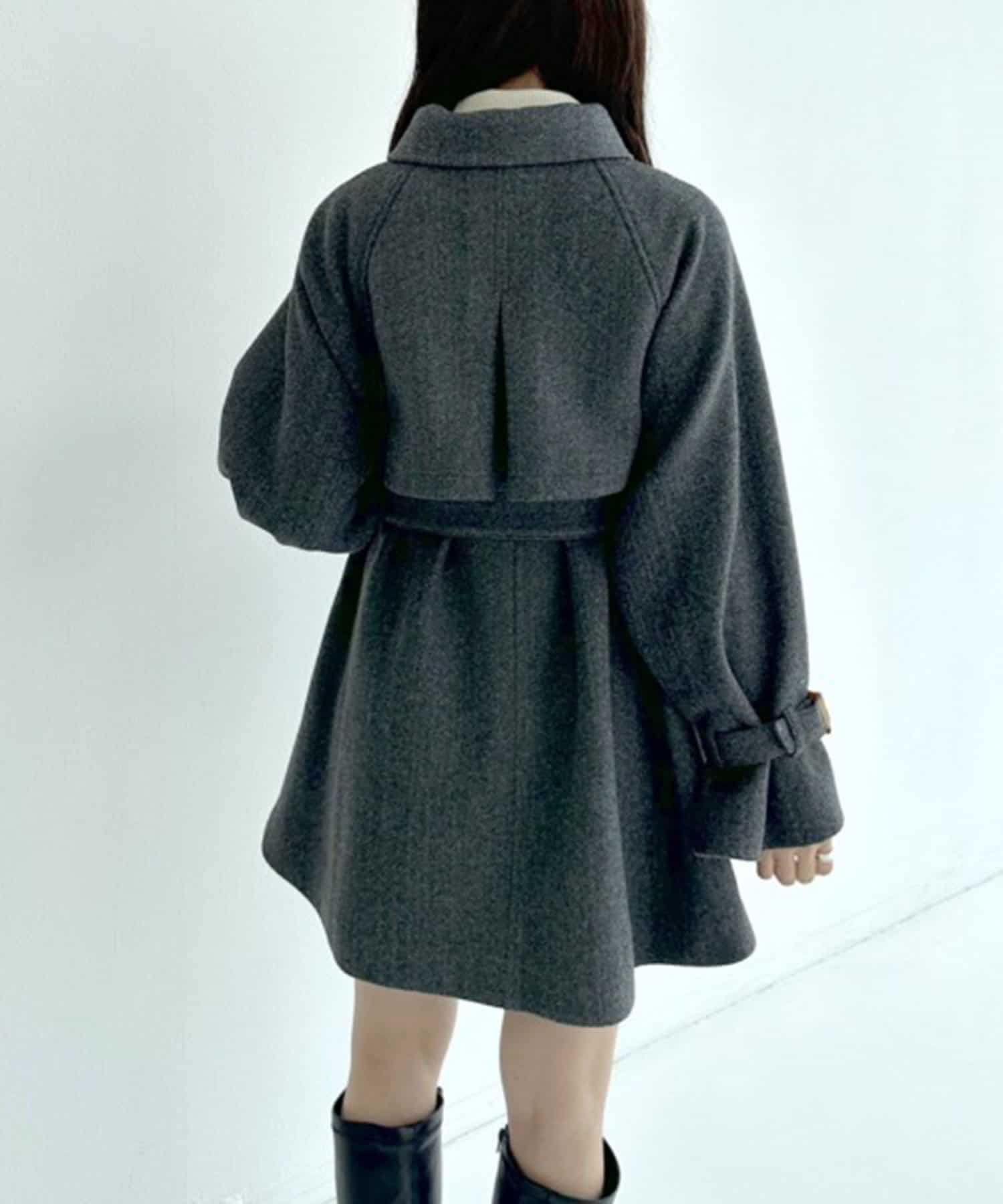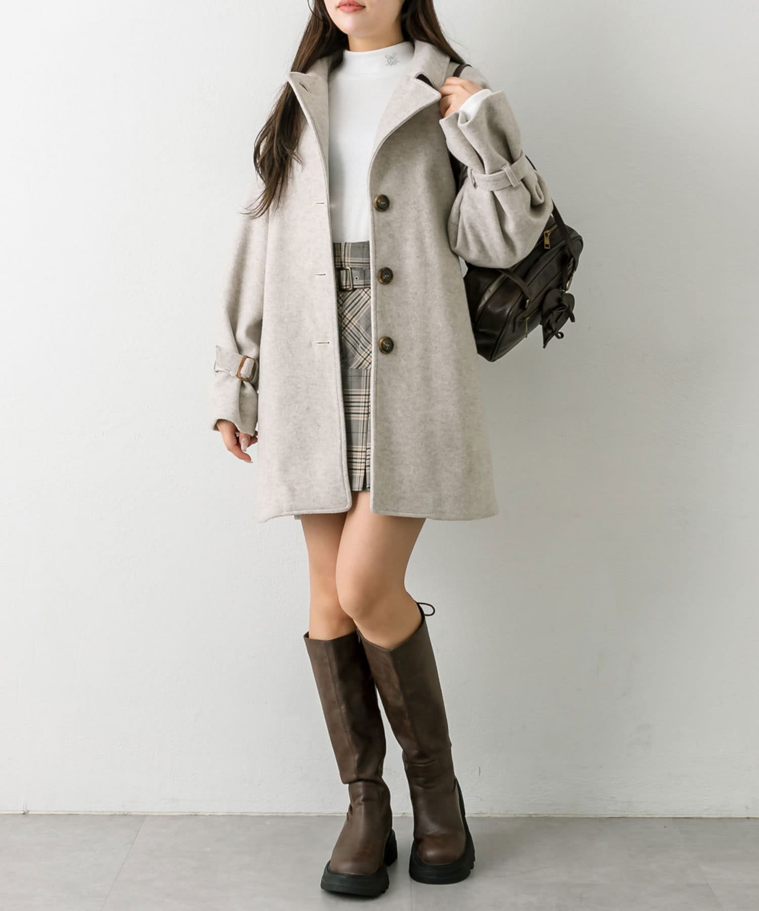 ・程よくAラインに広がるシルエットが大人可愛いトレンチ風コート。