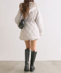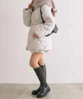 ・ミニボトムにロングブーツ合わせでガーリーな着こなしがおすすめ。