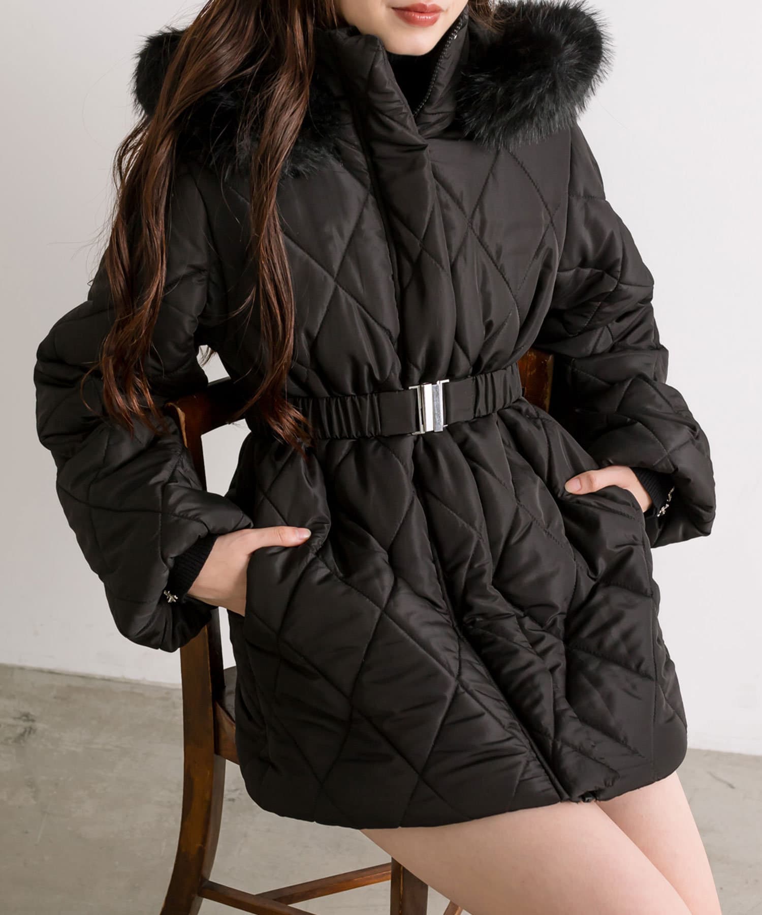 ・存在感のあるファーがお顔周りを華やかにみせてくれます。