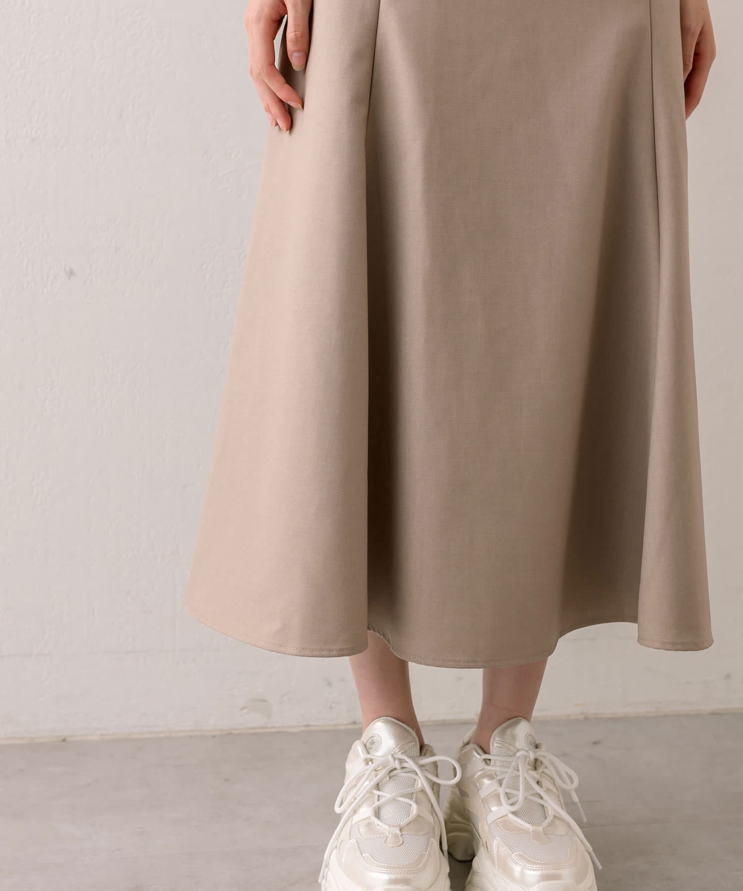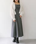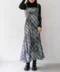 ・切替位置高めでウエストから裾に向かって広がるマーメイドシルエットなので、スタイルアップが期待できます。