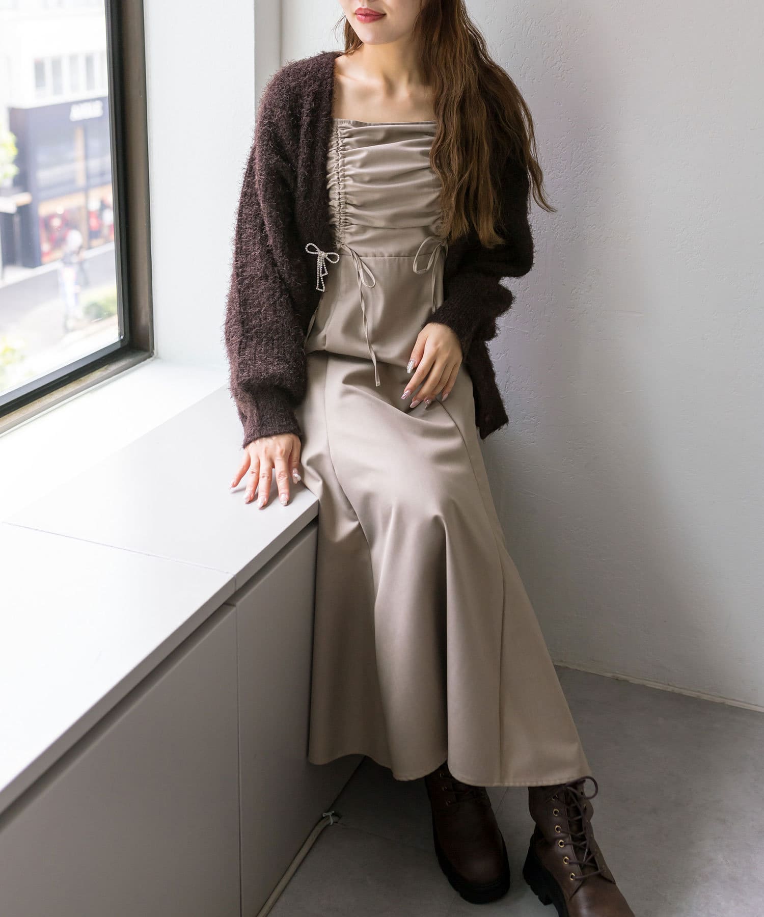 【全骨格対応!】ドロストリボンのデザインが目を惹くキャミワンピース