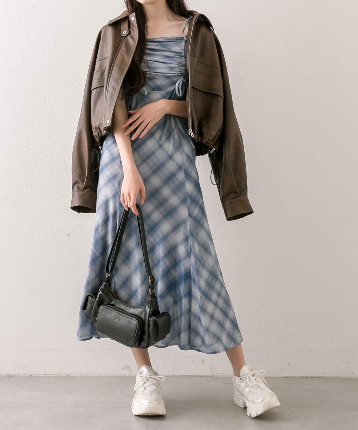 ・肌見せが苦手な方は、Tシャツなどをレイヤードすると着やすくなります。