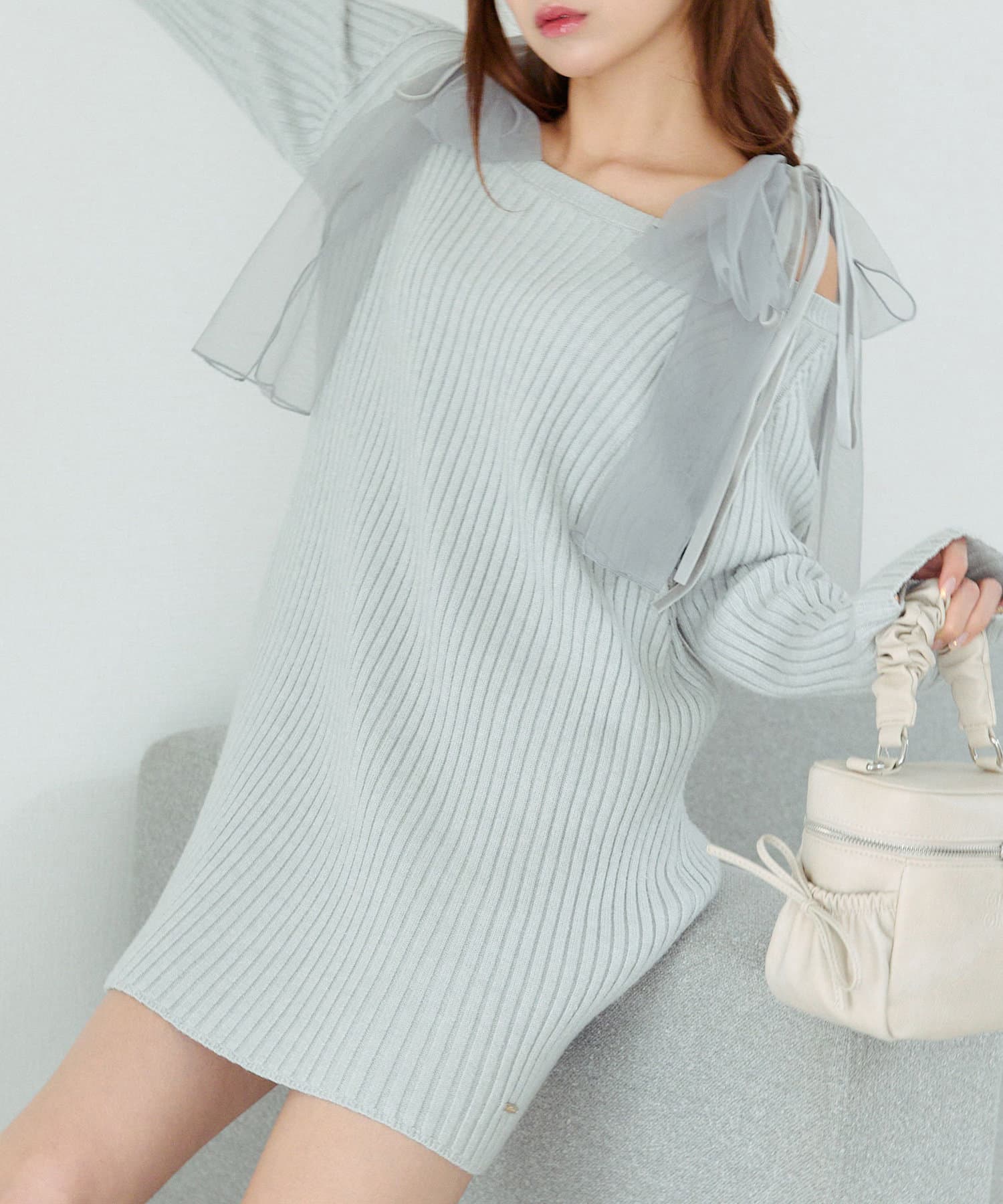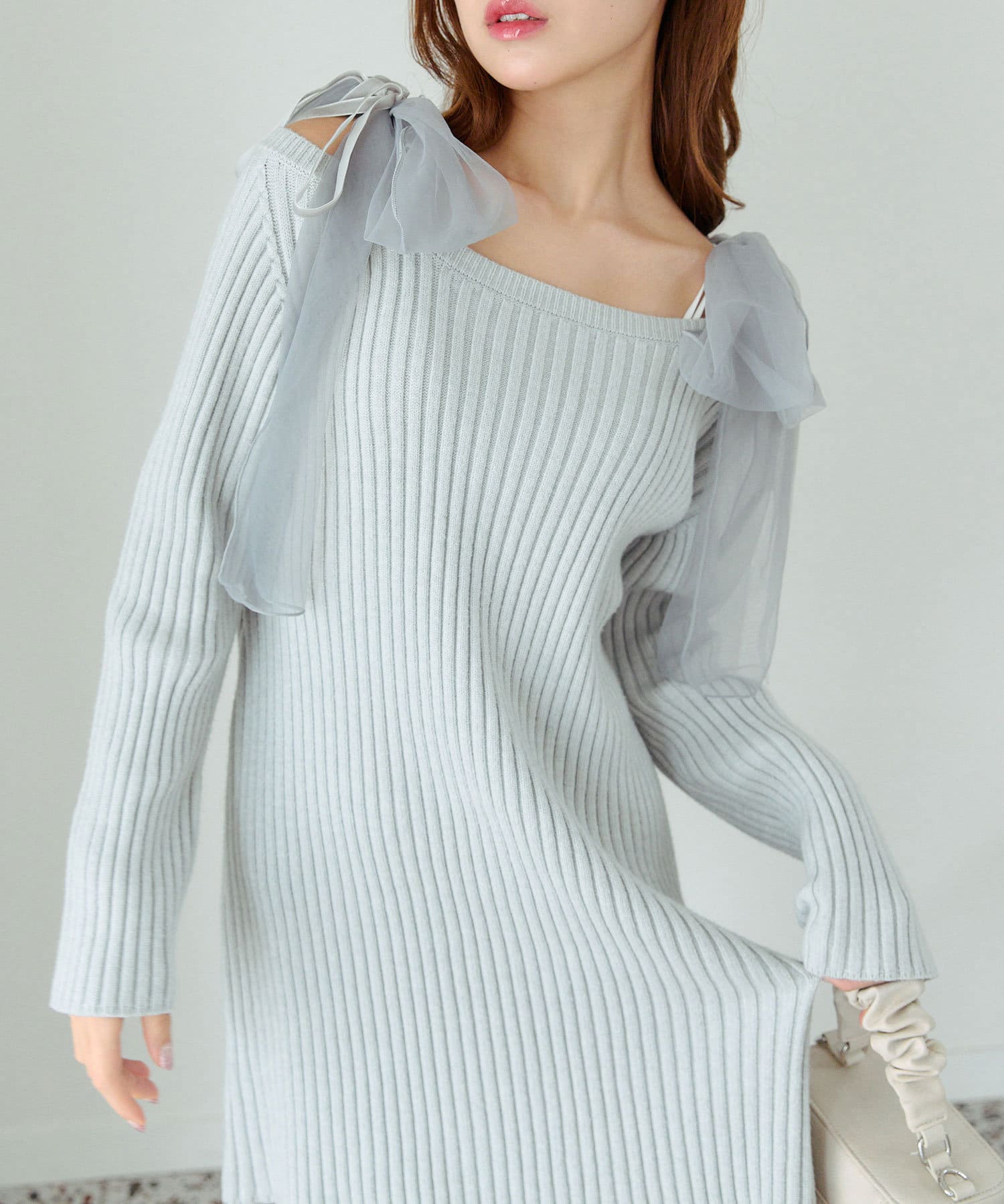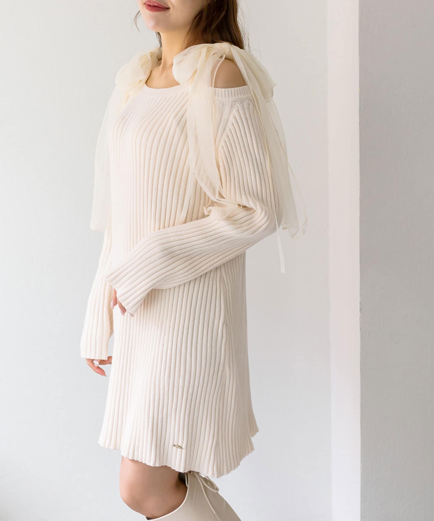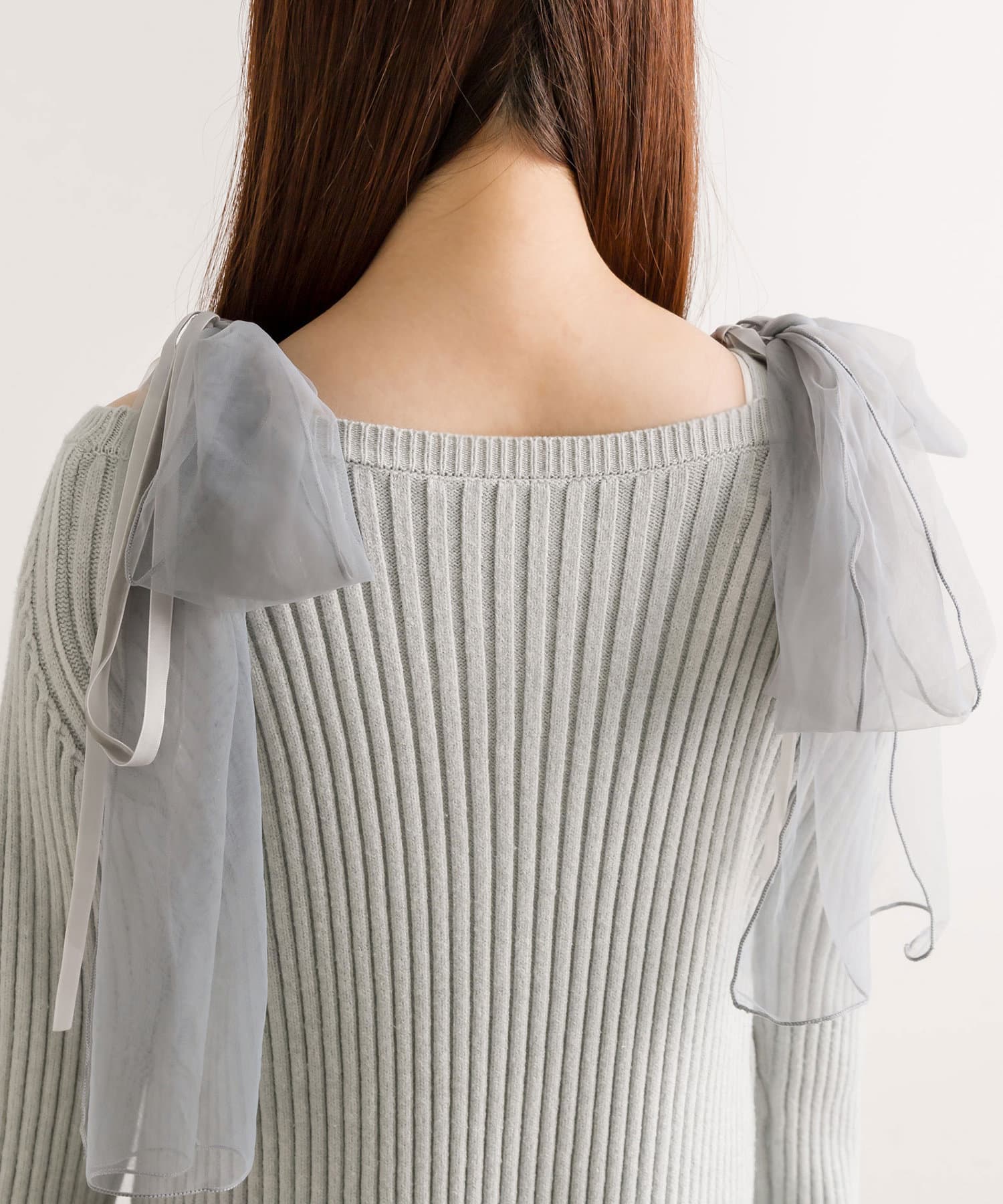 ・ボリュームたっぷりな肩リボンが目を惹くデザイン。