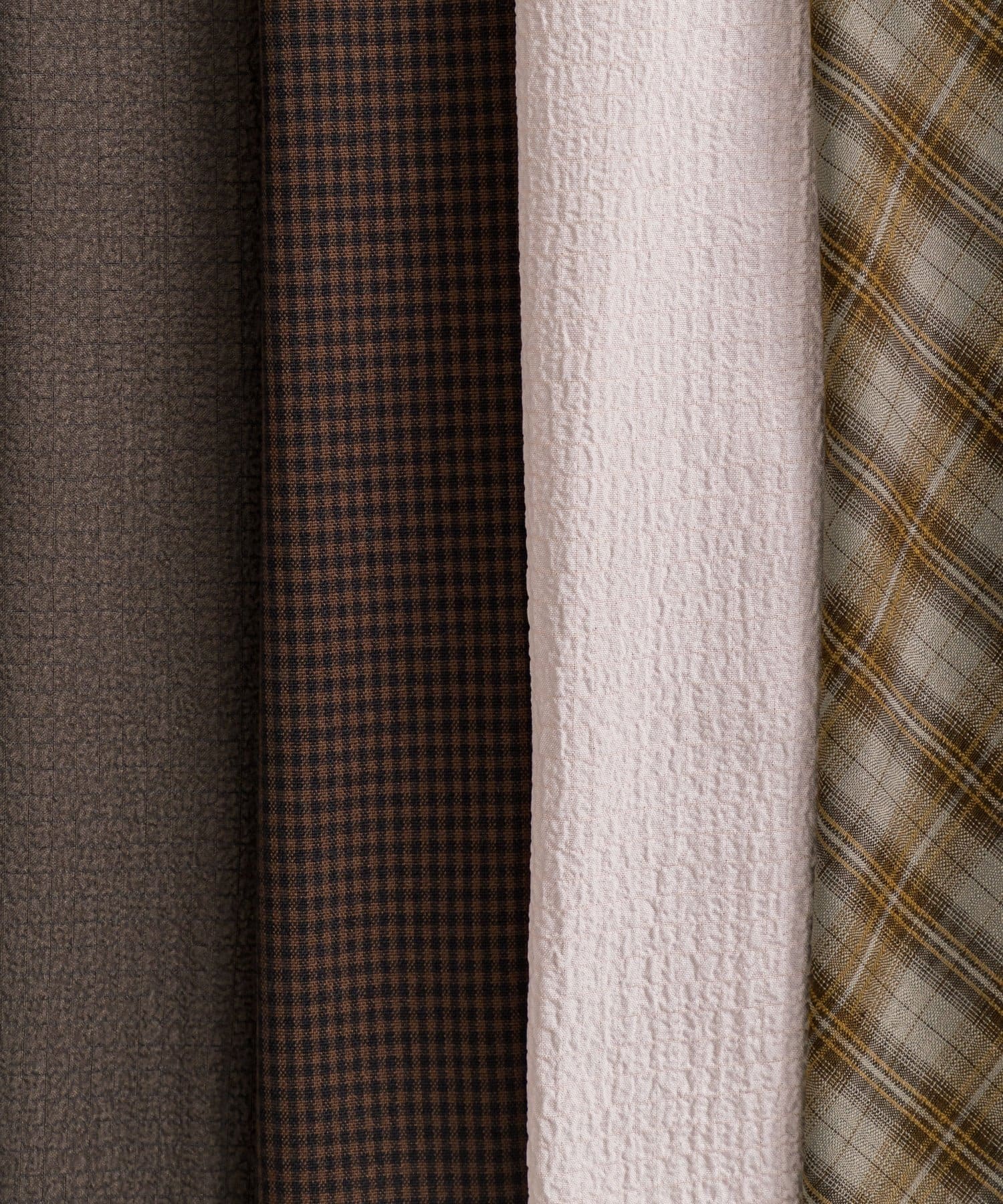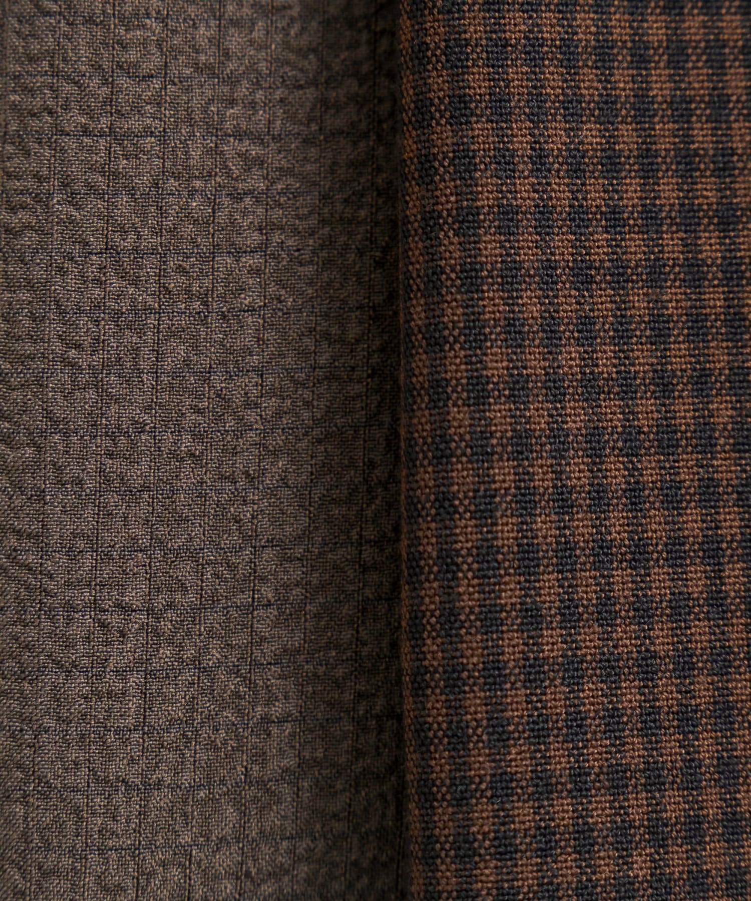 ・グレージュ/ダークブラウン(細チェック)/グレー系(バイアスチェック)/チャコールの4色展開