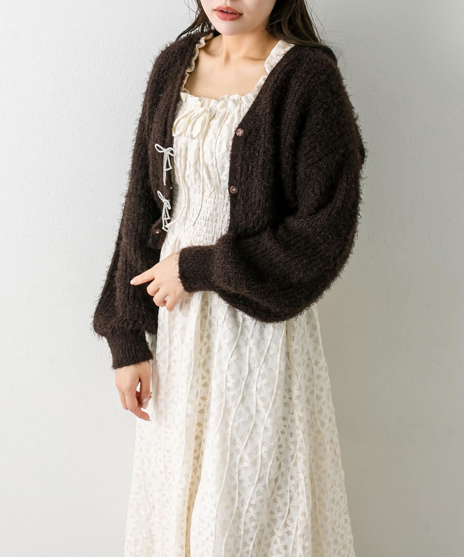 ※裏地はついておりますが、アイボリーは下に濃い色など着用しますと透け感が出てしまいますのでご理解のほどお願いいたします。