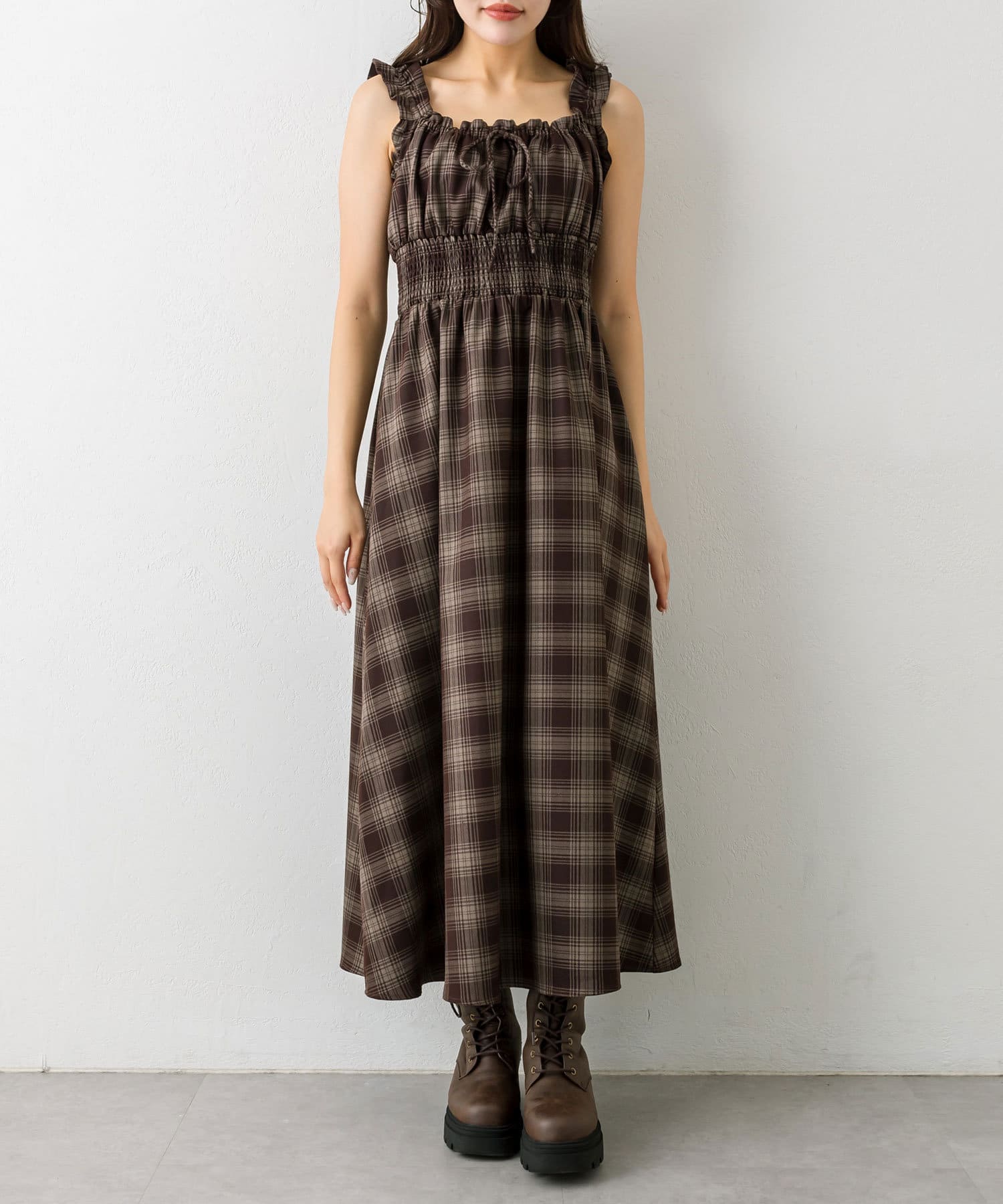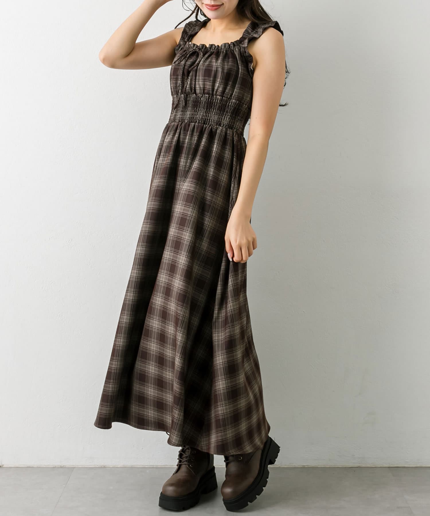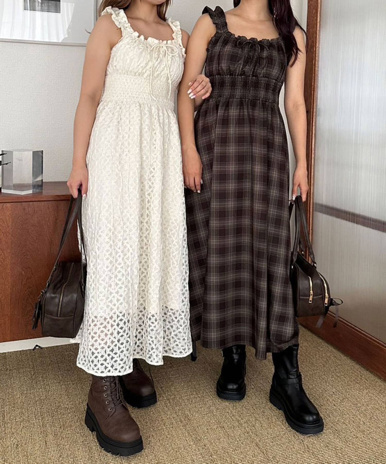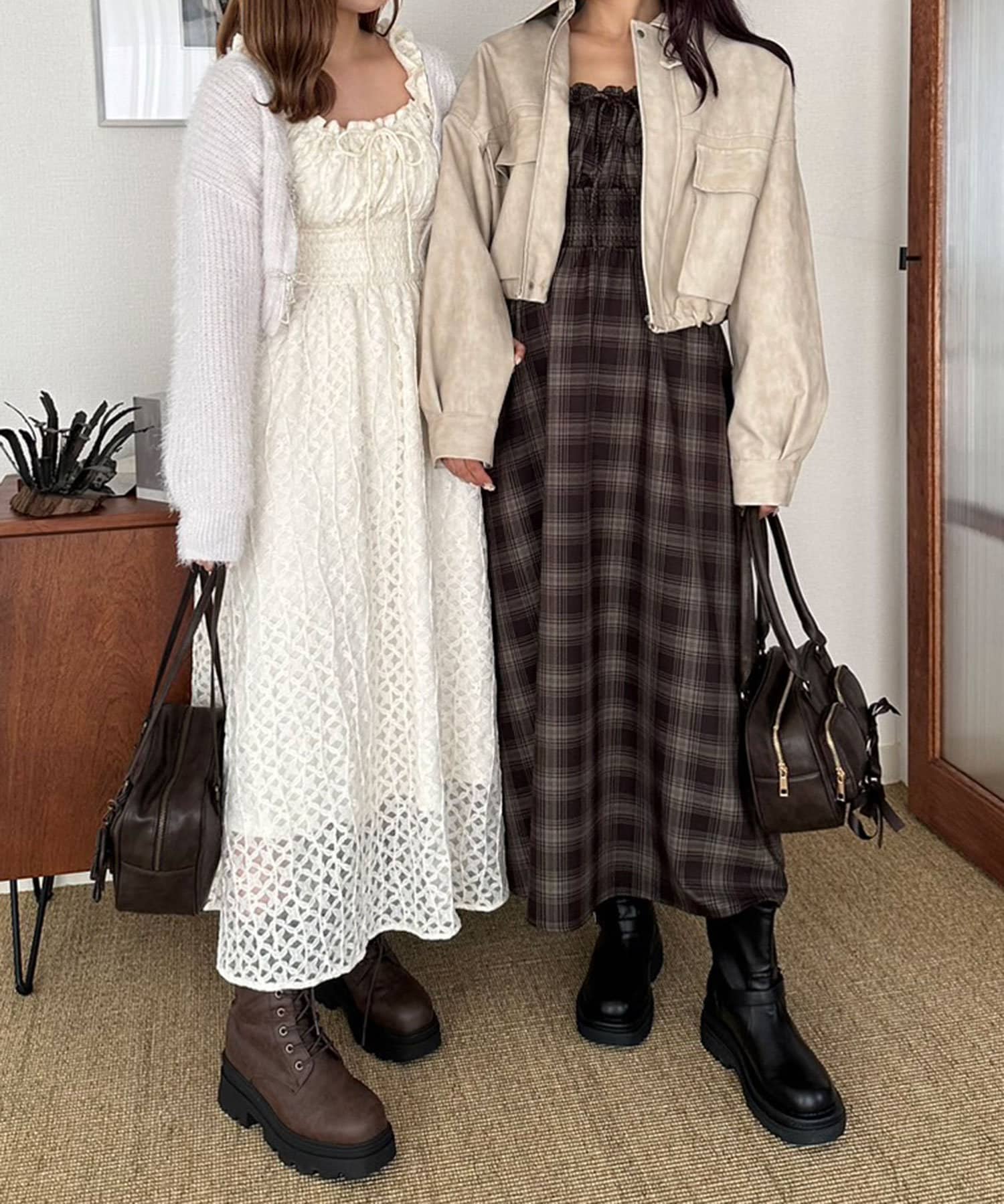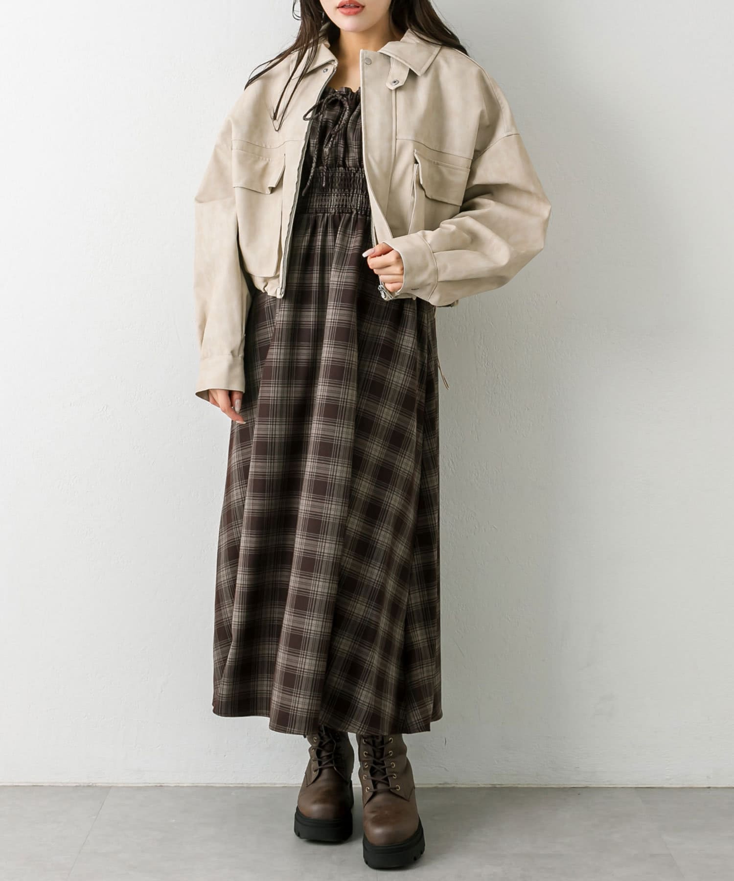・アイボリー/チェック/ブラウン/ブラックの4色展開