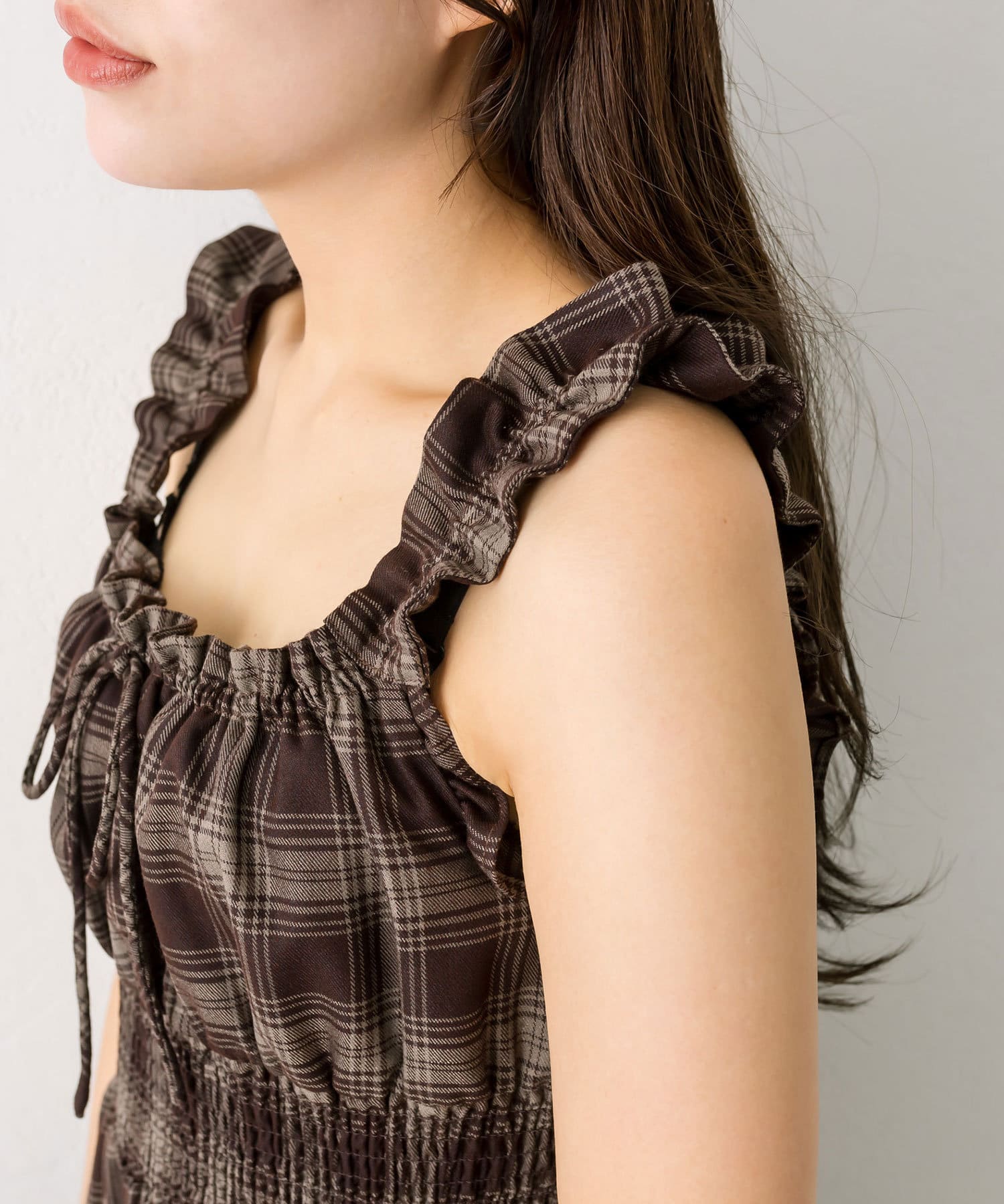 ・肩紐はフリルデザインで下着のラインが気になりにくいです。