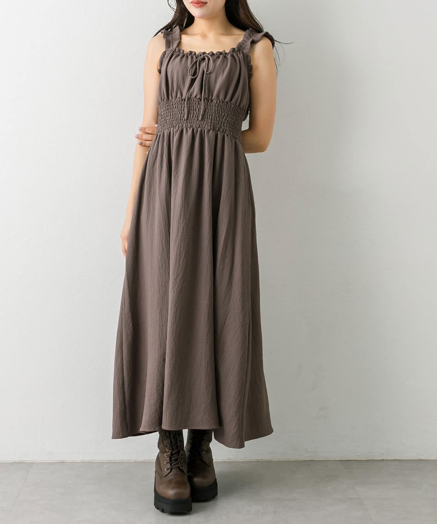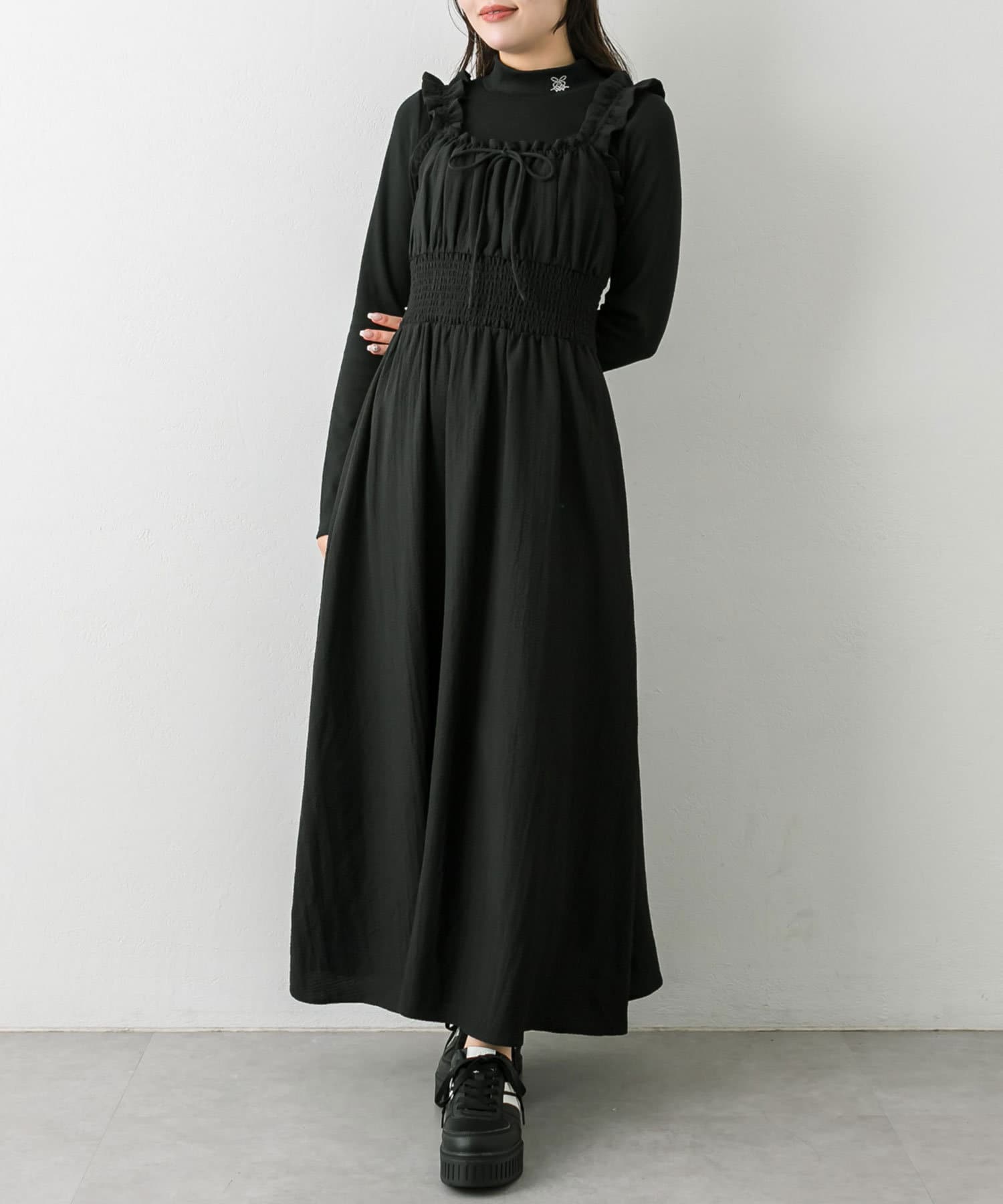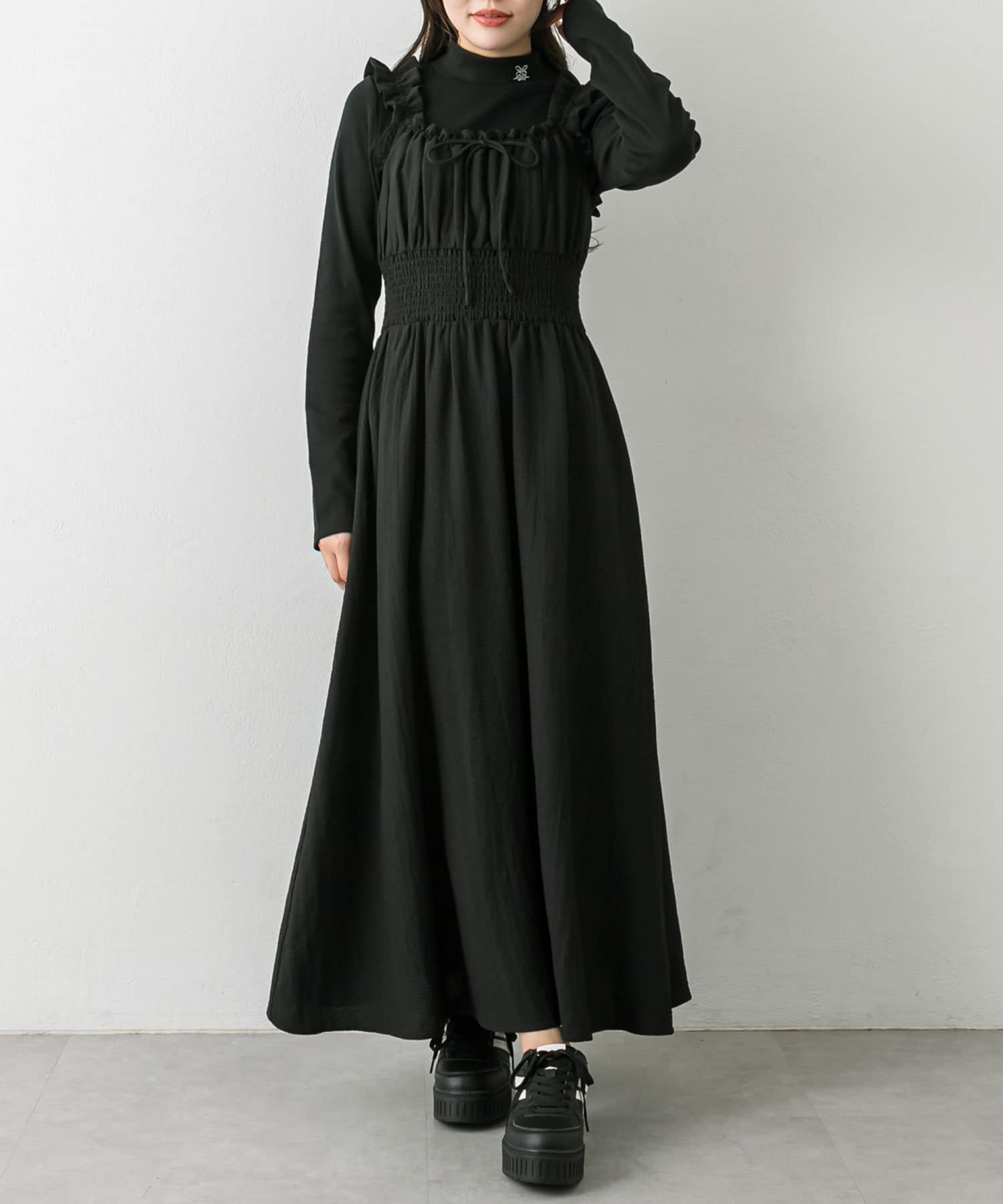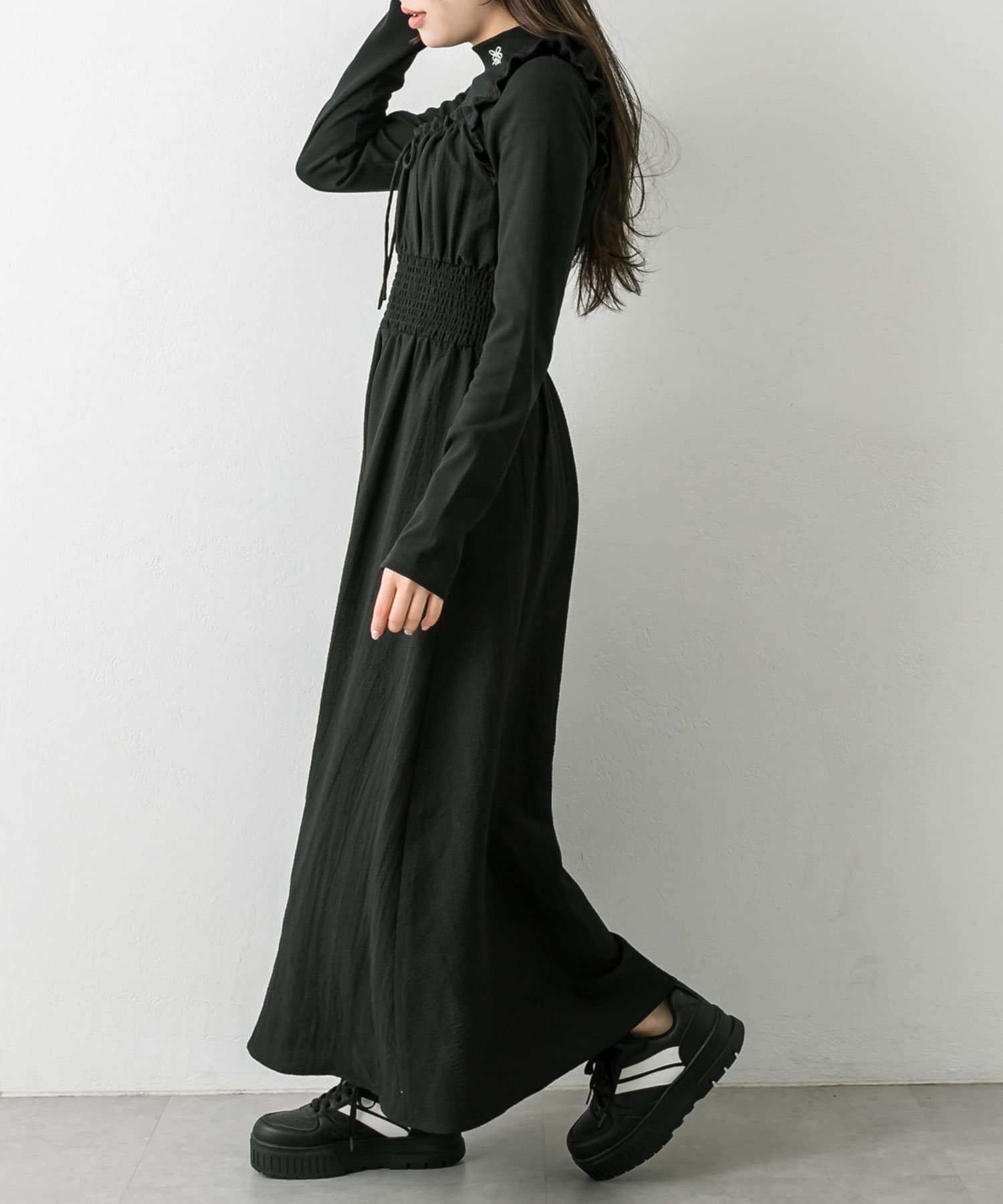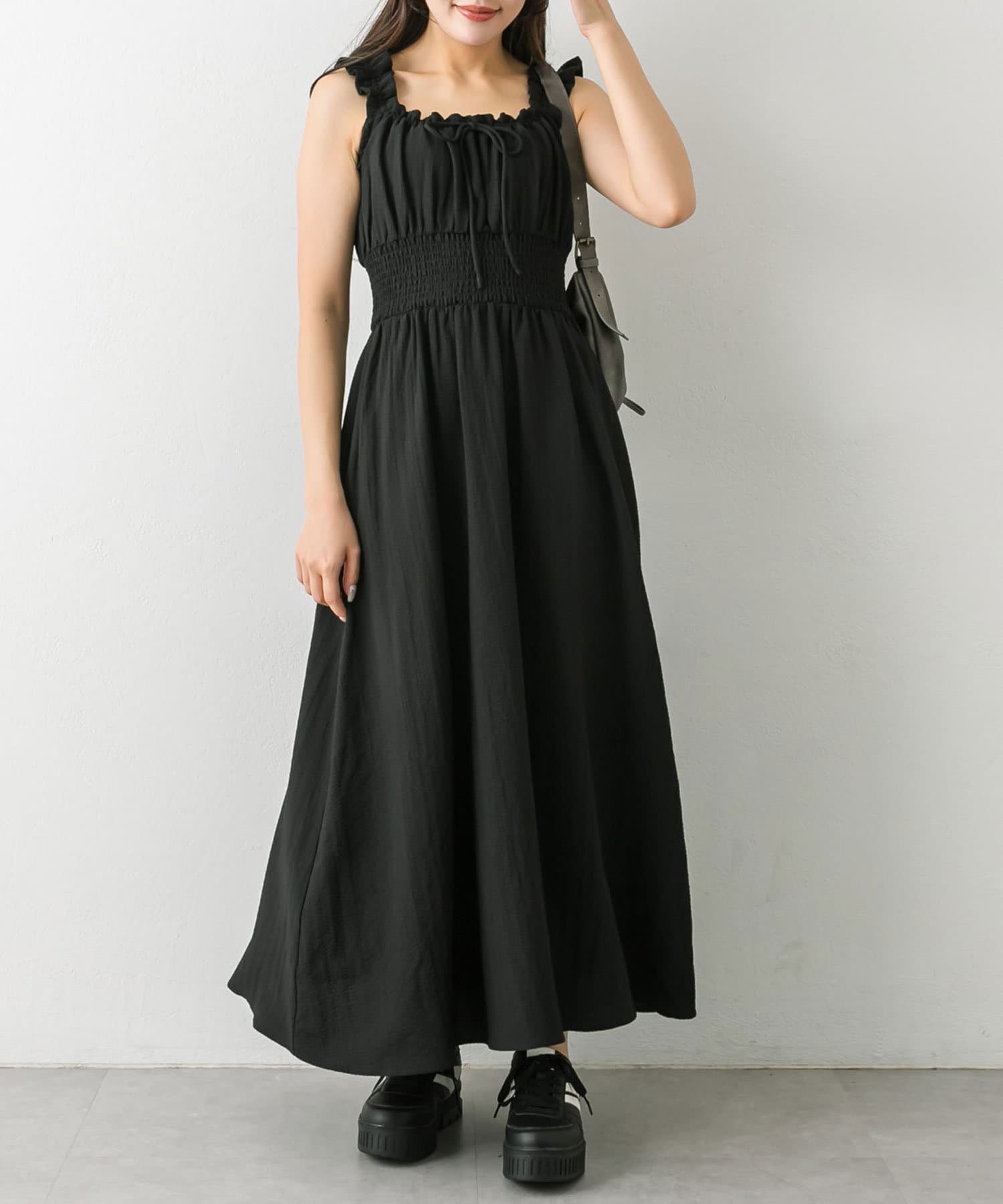 ・ウエストに太めのシャーリングがあることで、細見えが期待できます。