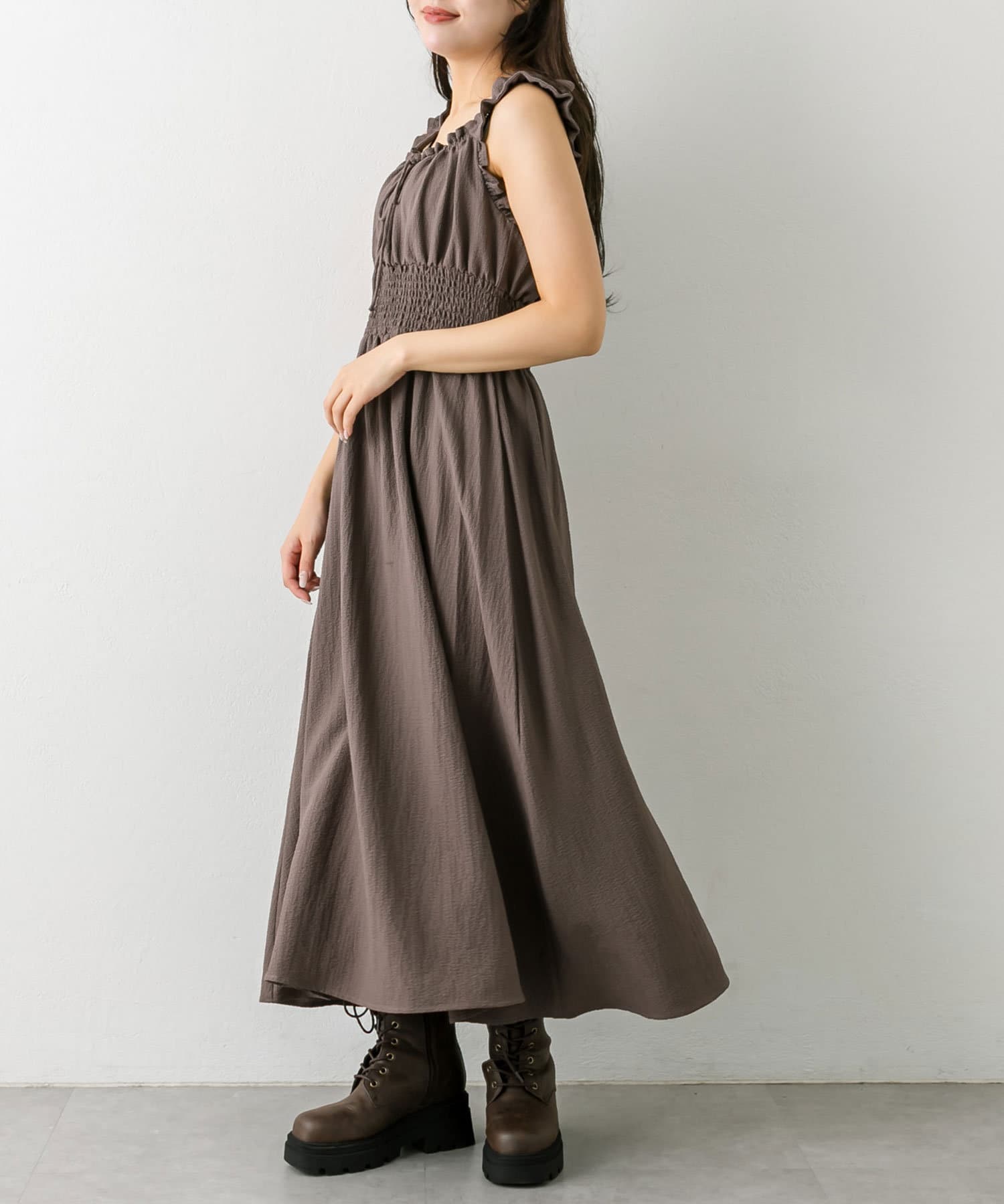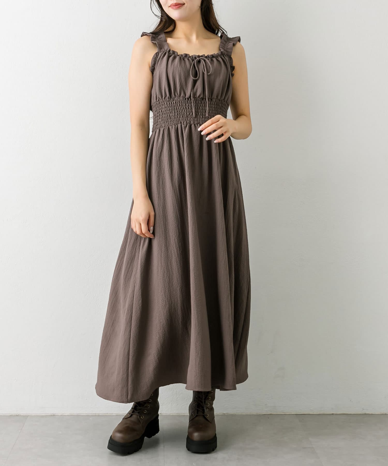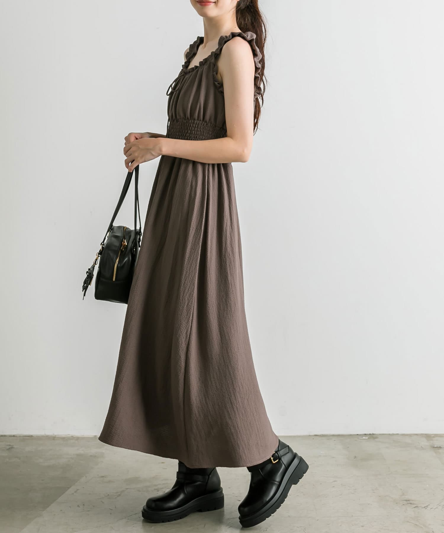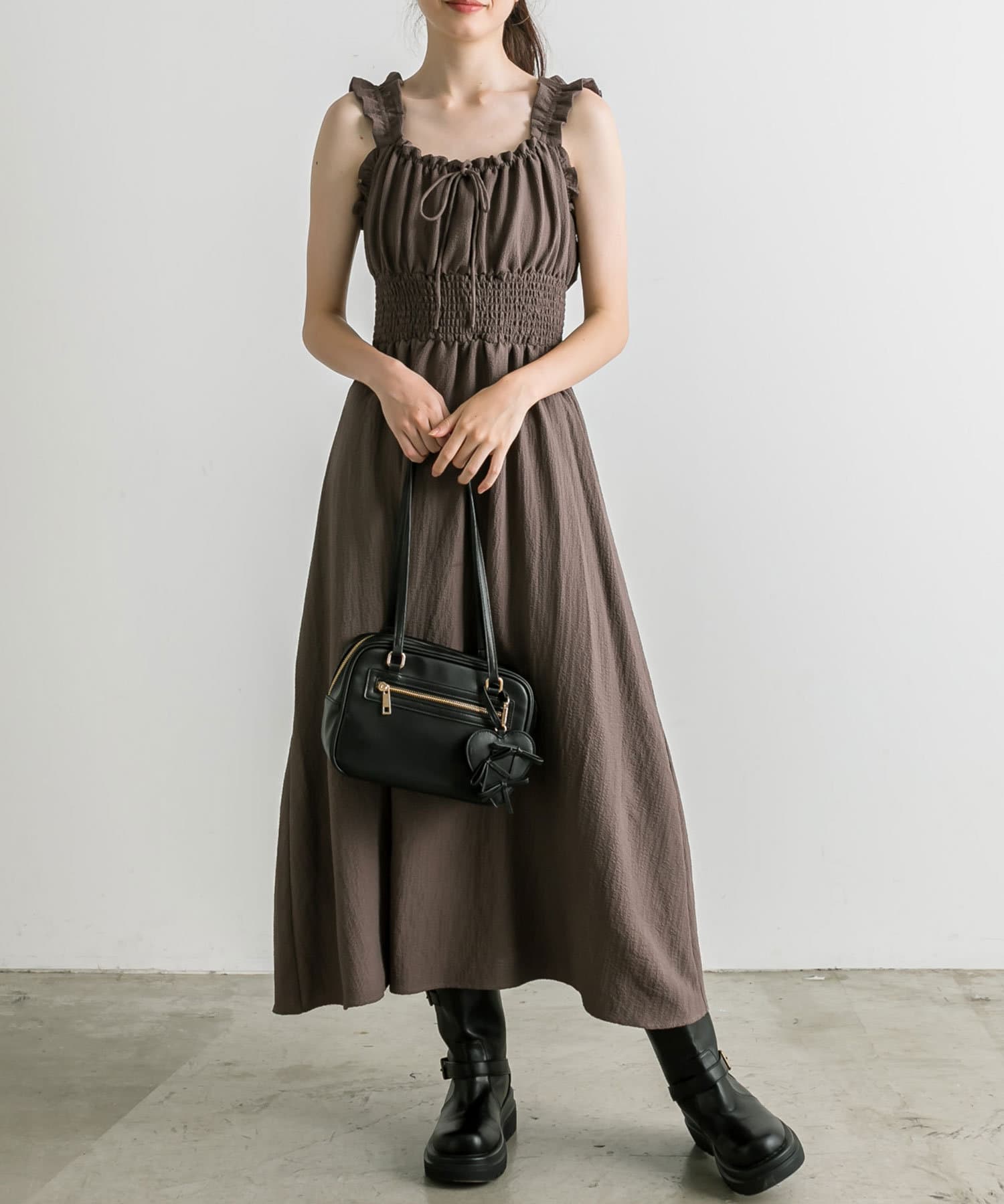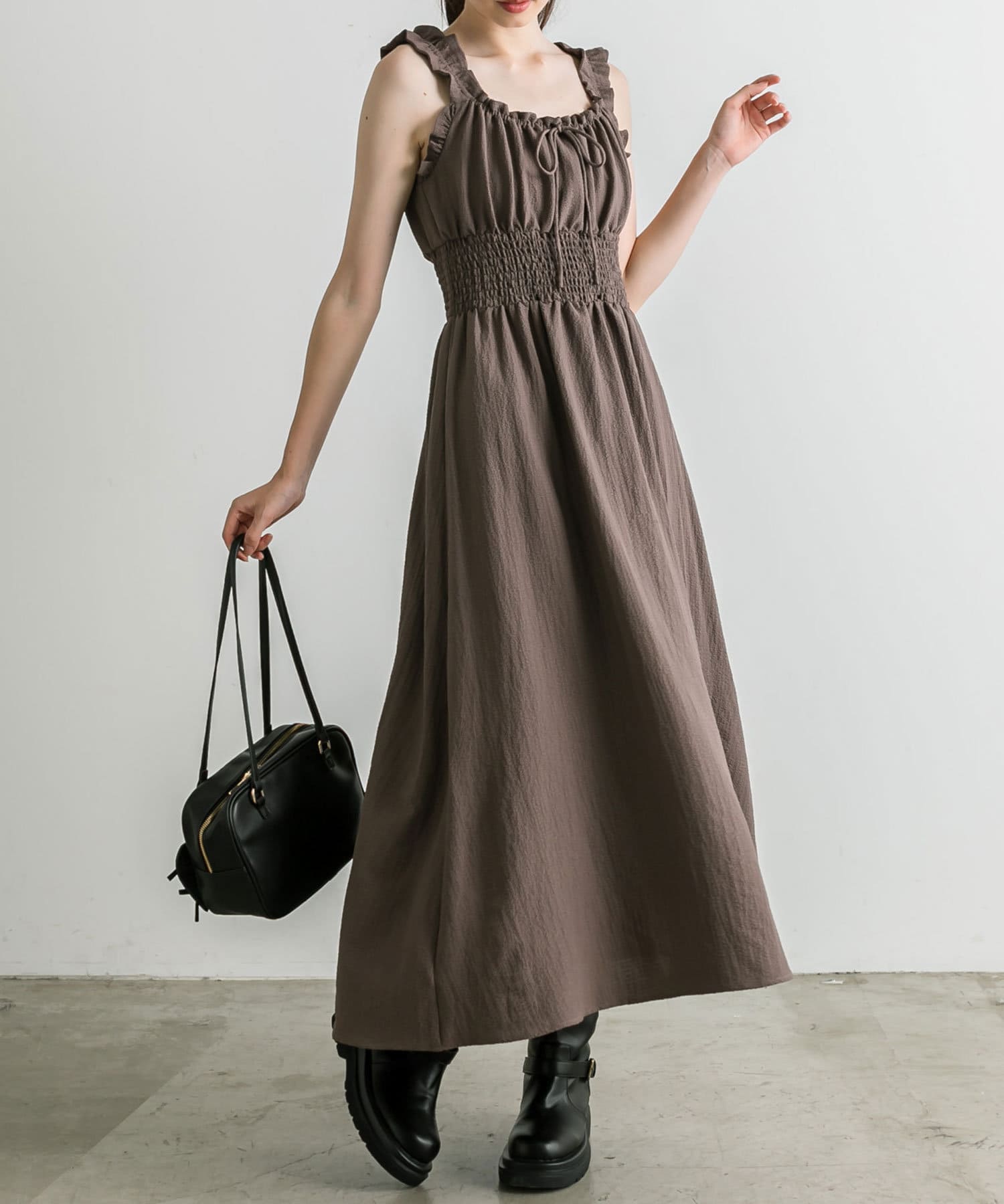 ・ウエストに太めのシャーリングがあることで、細見えが期待できます。