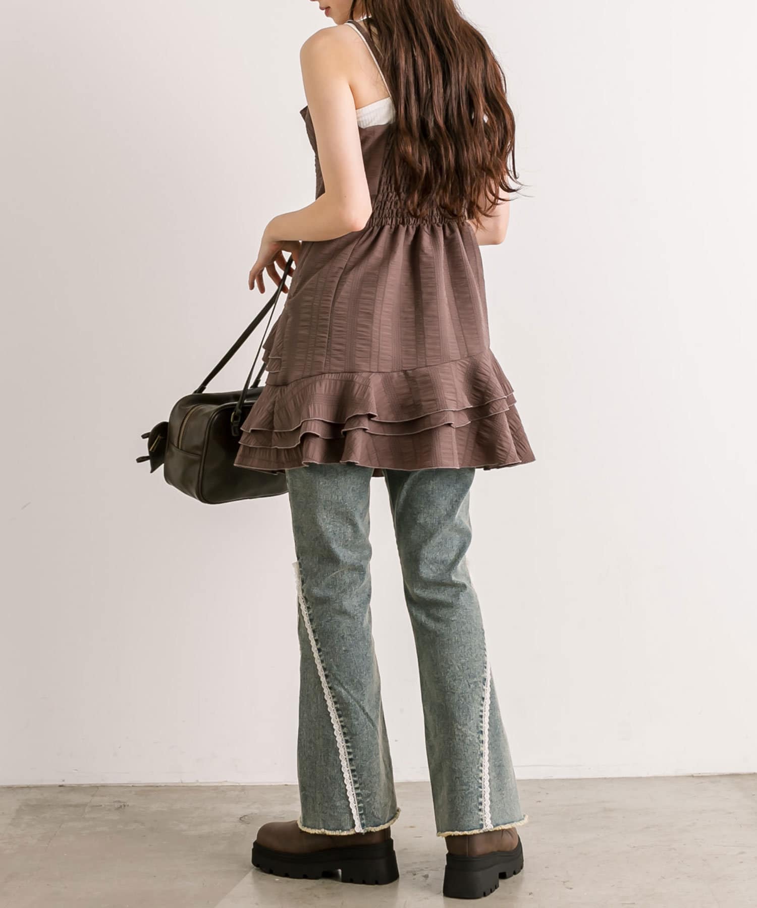 ボリュームたっぷりのラッフルデザインが目を惹くキャミワンピ
