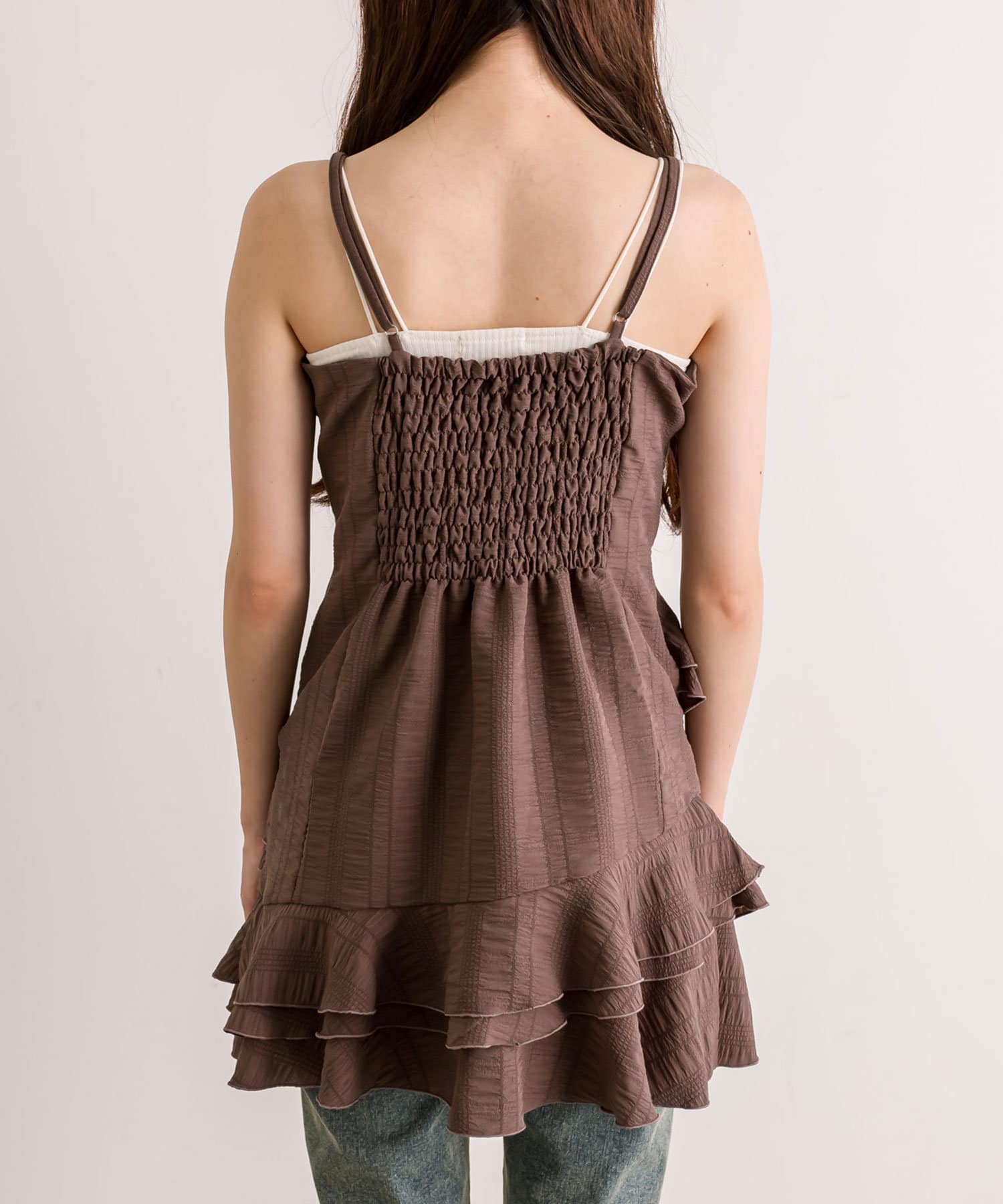 ボリュームたっぷりのラッフルデザインが目を惹くキャミワンピ