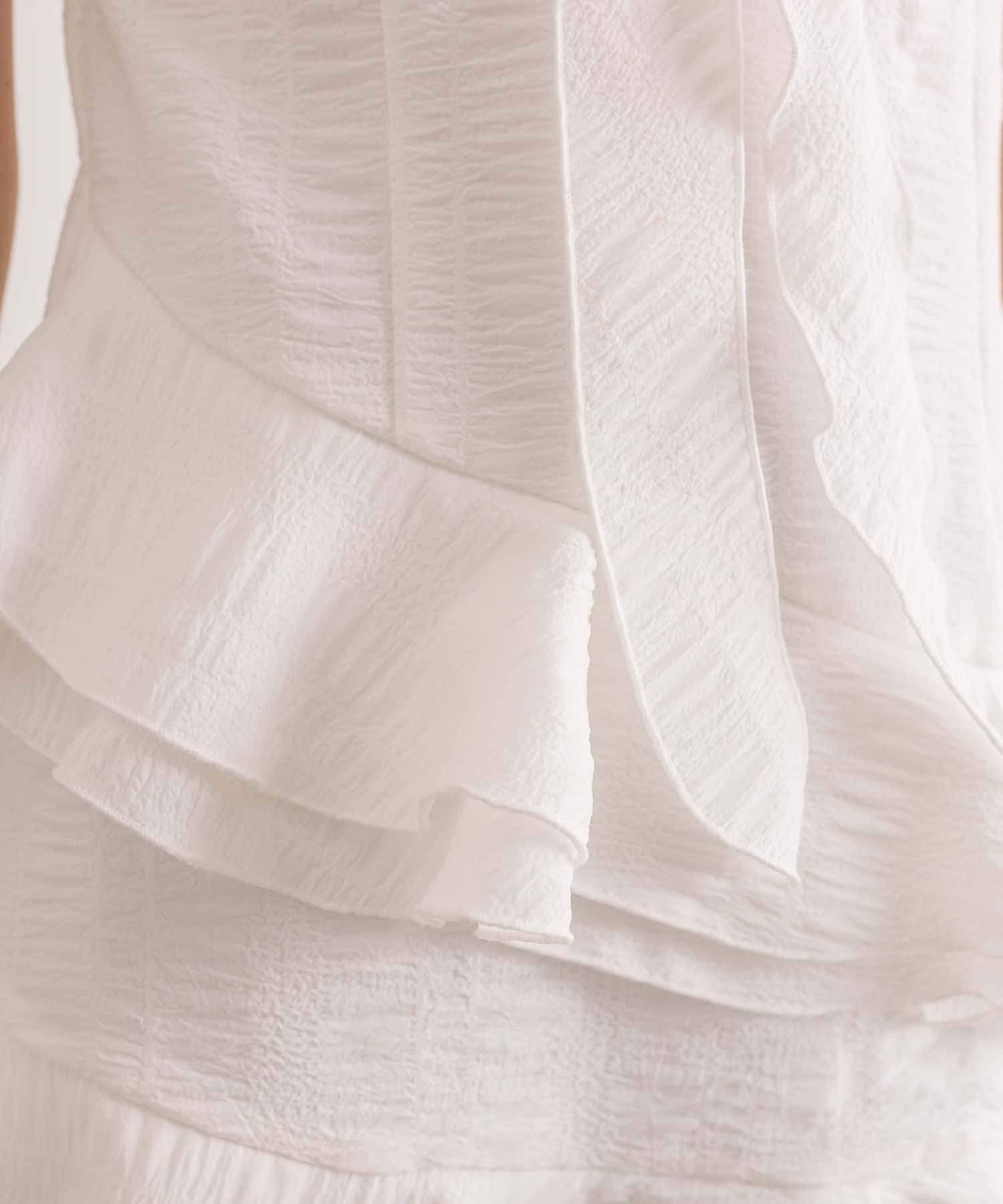 ボリュームたっぷりのラッフルデザインが目を惹くキャミワンピ