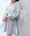・全体的にゆとりのあるサイズ感ですが、ウエスト部分は背中にゴム入りで細く見えるようなシルエットなので、スタイルアップが期待できます。