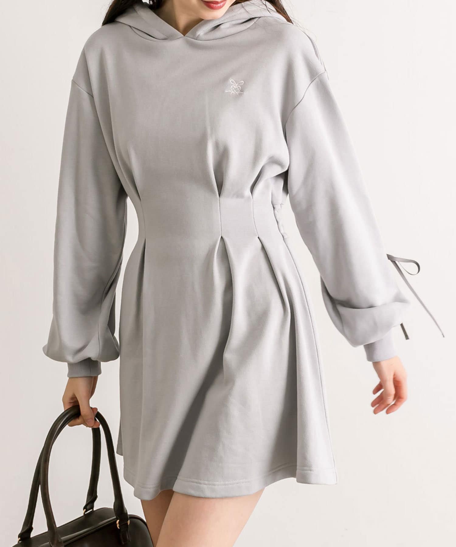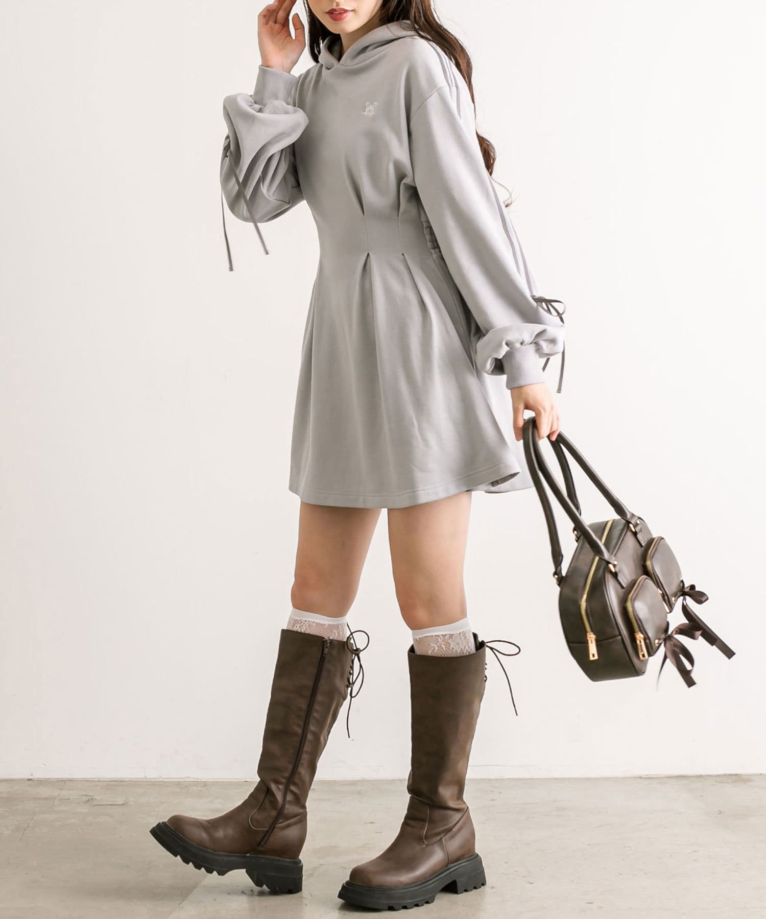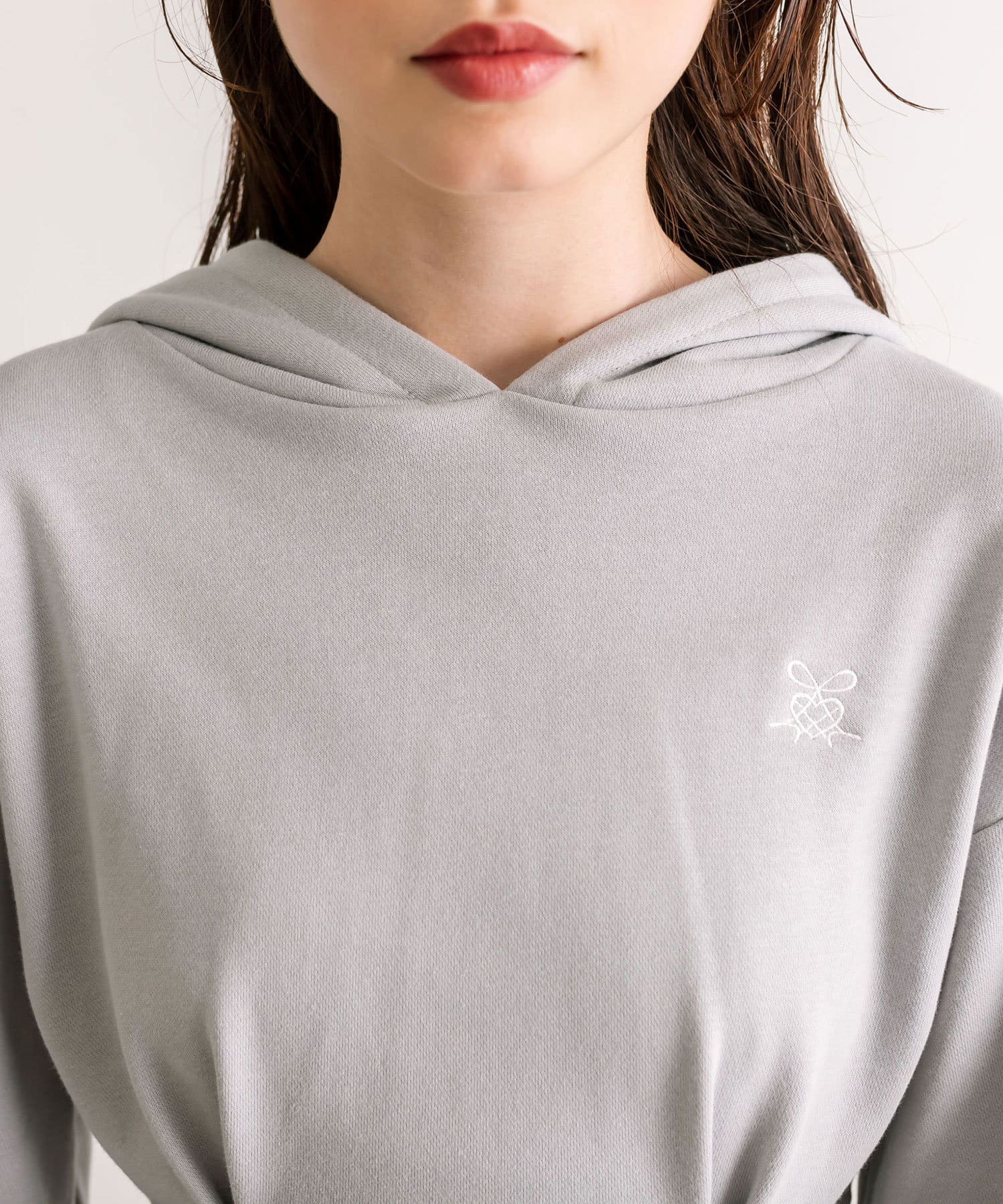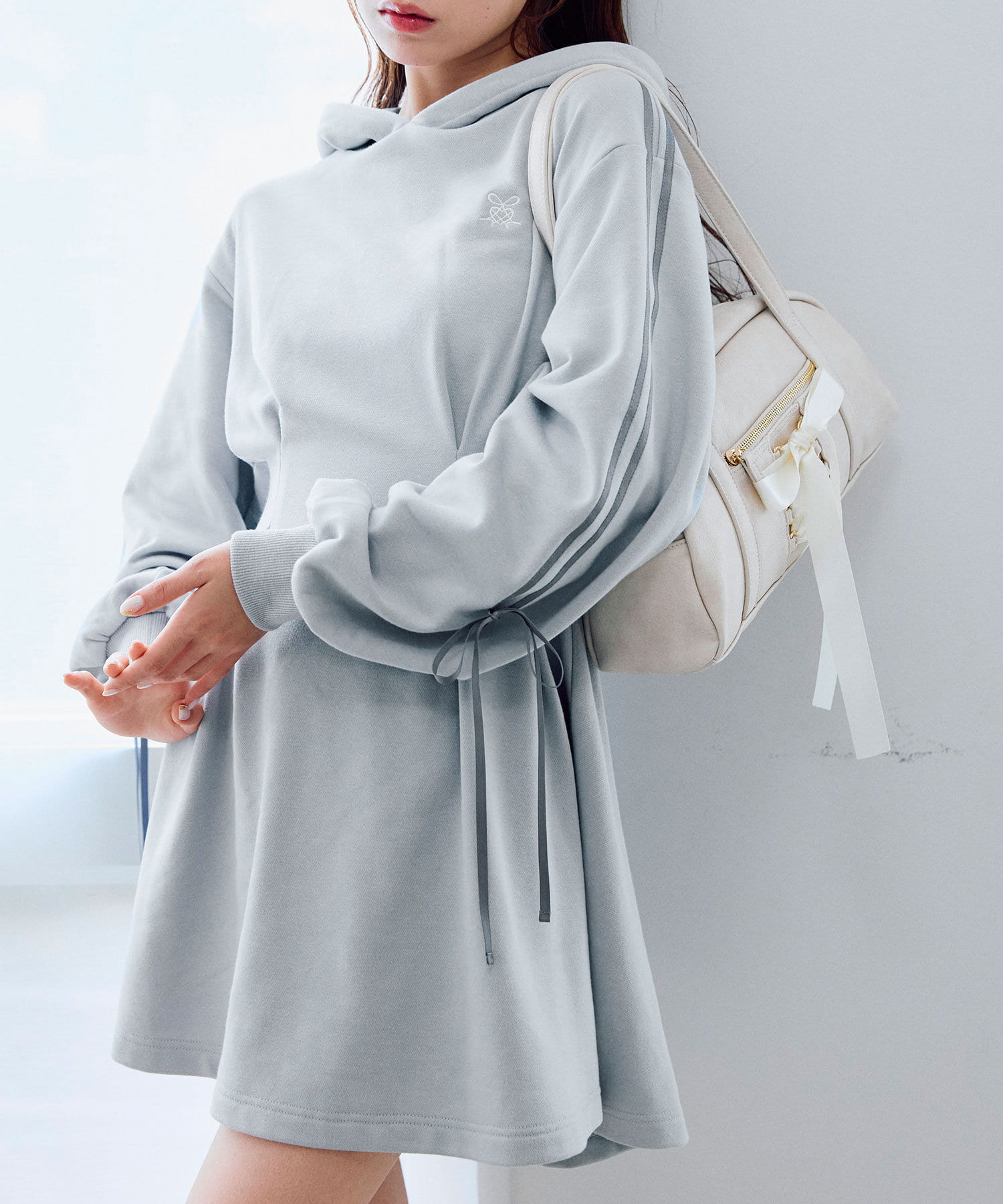 ・フード付きのスウェット素材で丈も短すぎないので、ガーリーになりすぎず着やすいです。