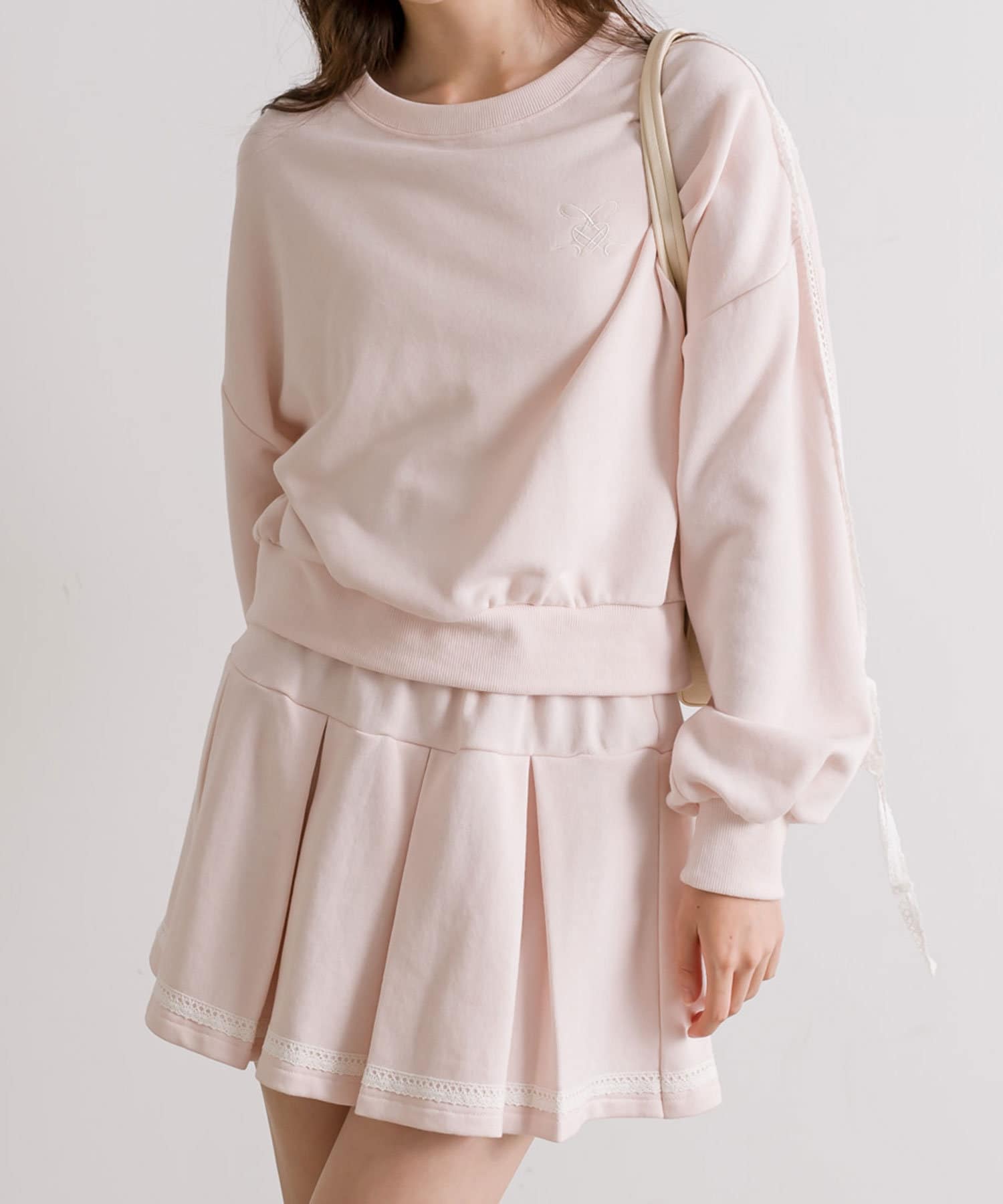 ・着心地らくちんなスウェット素材のトップスとスカートのセット。