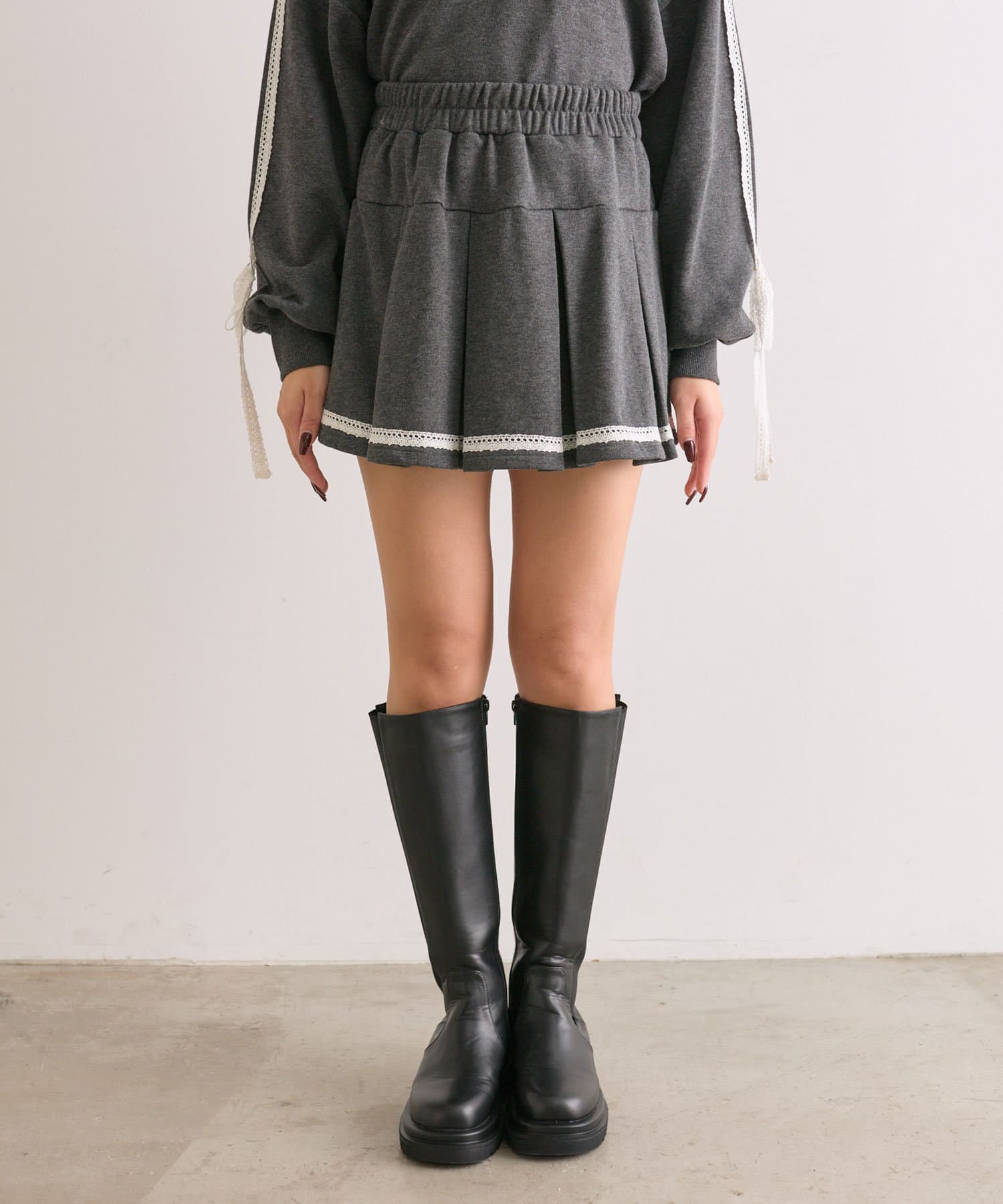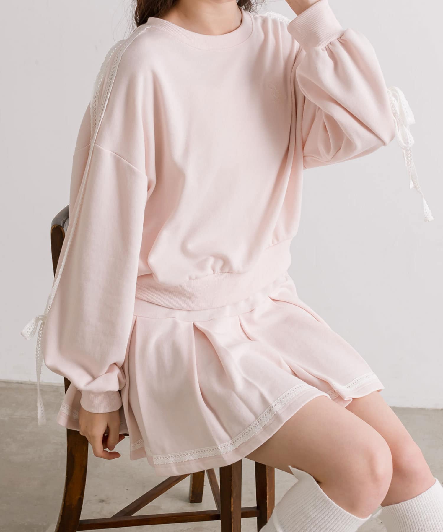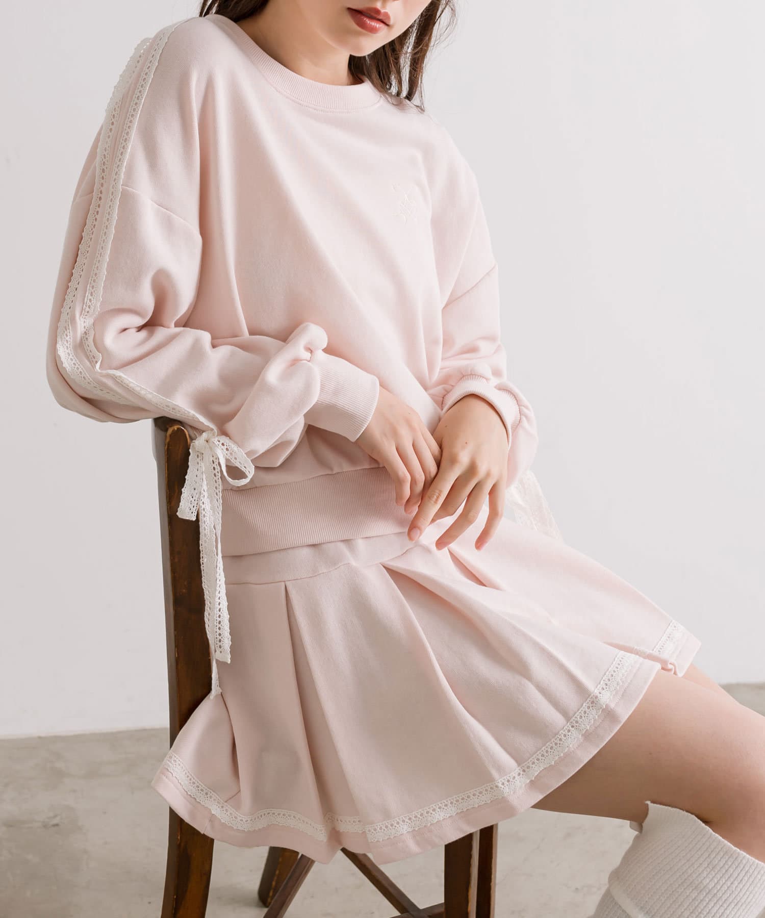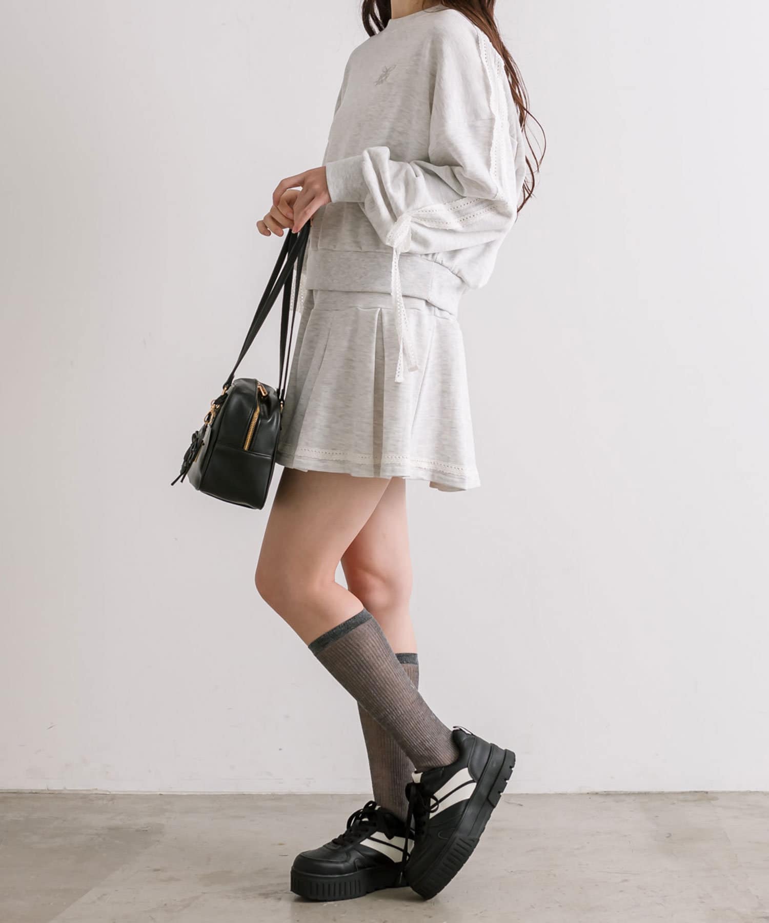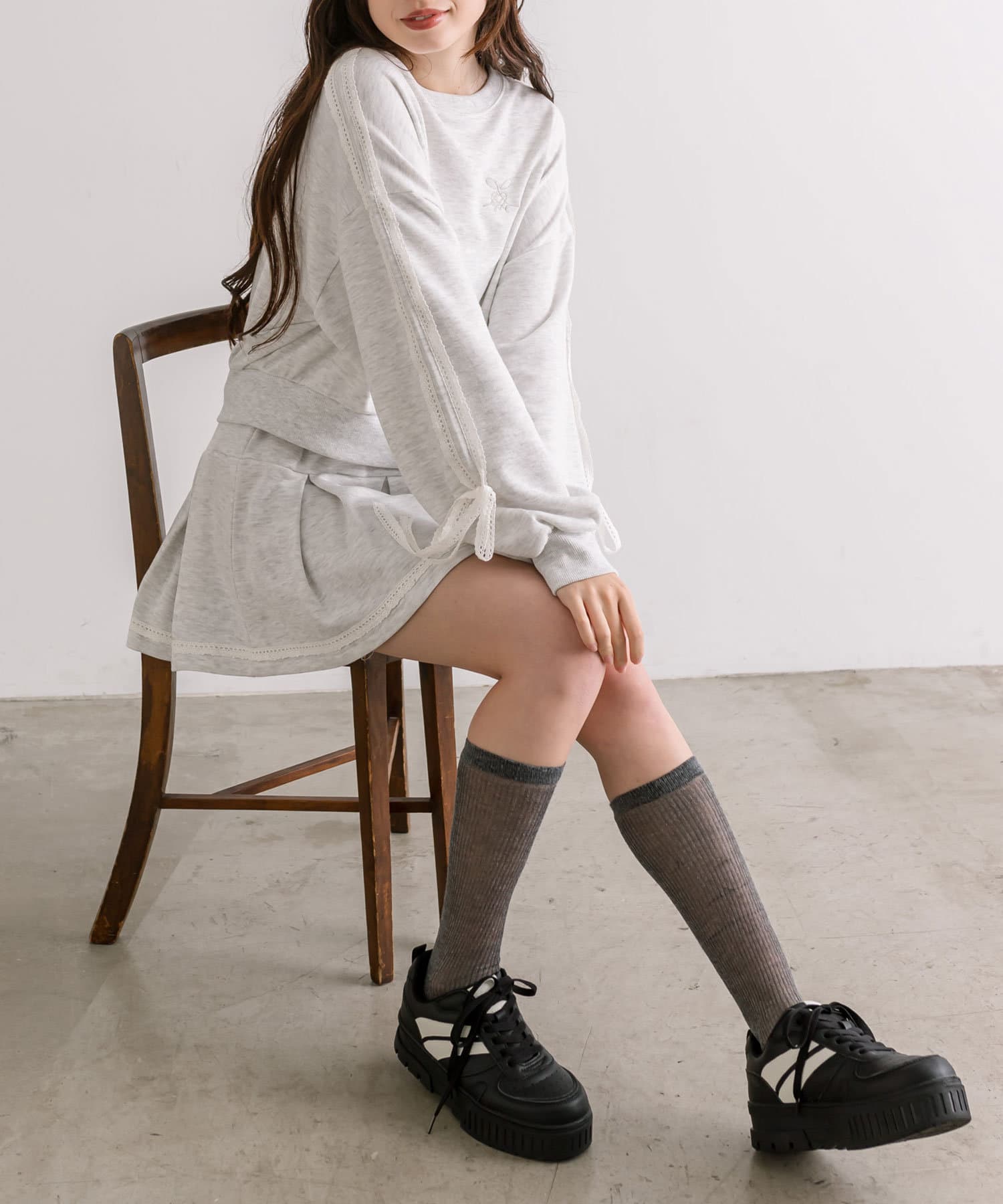 ・着心地らくちんなスウェット素材のトップスとスカートのセット。