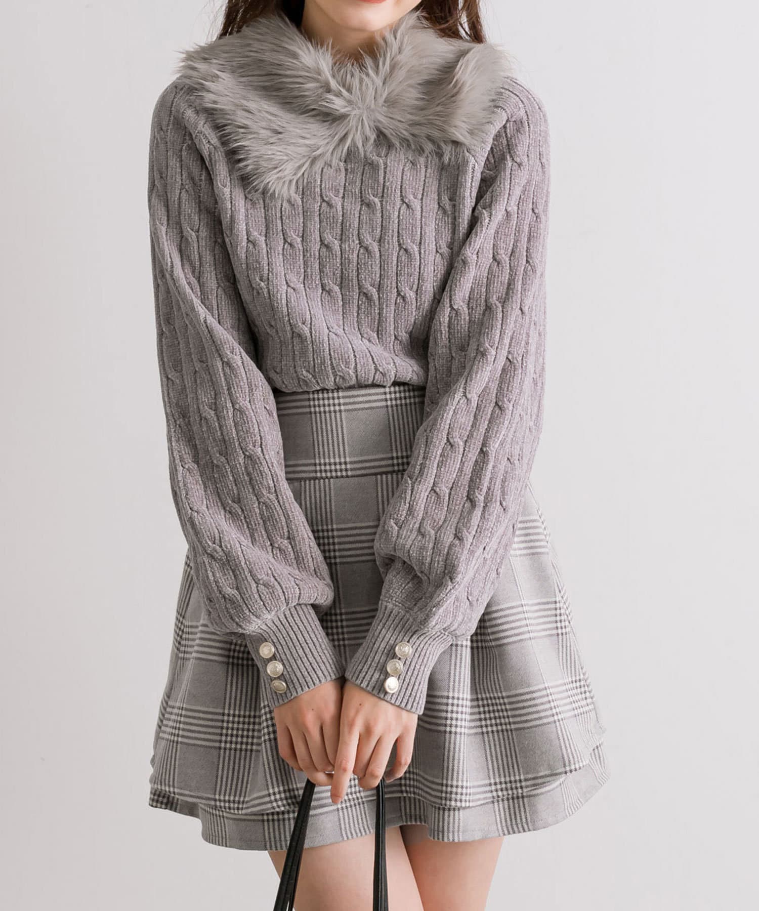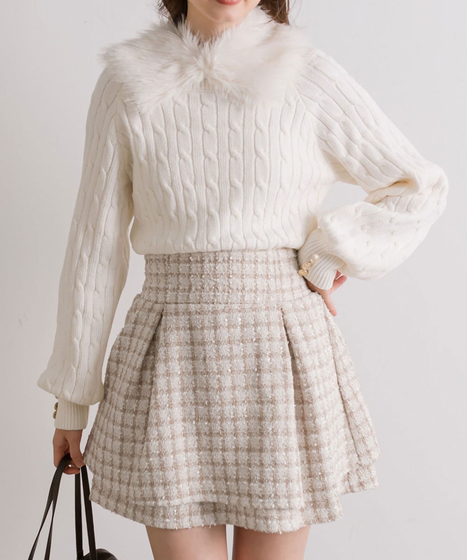 ・ファーは取り外し可能で、ワンショルやオフショルでも着れるので、気分によって雰囲気を変えて着用していただけます。