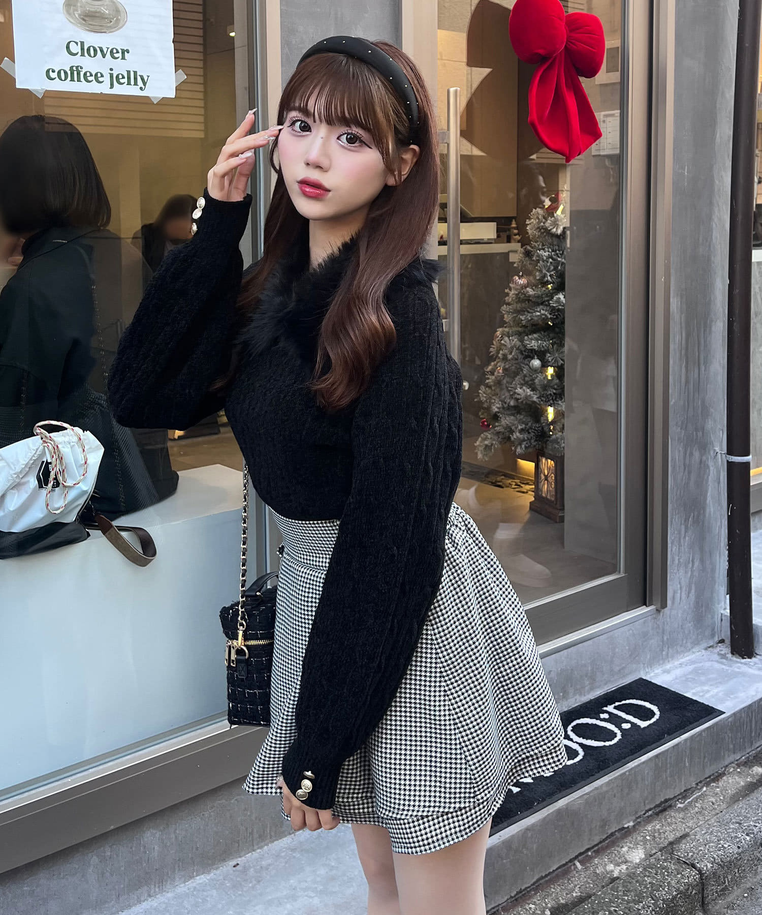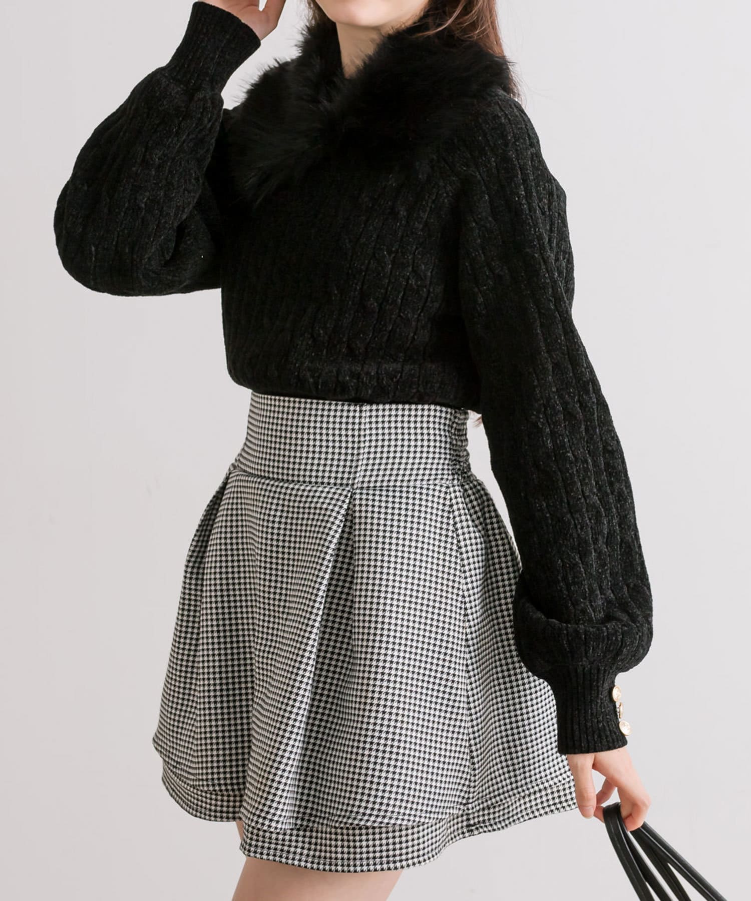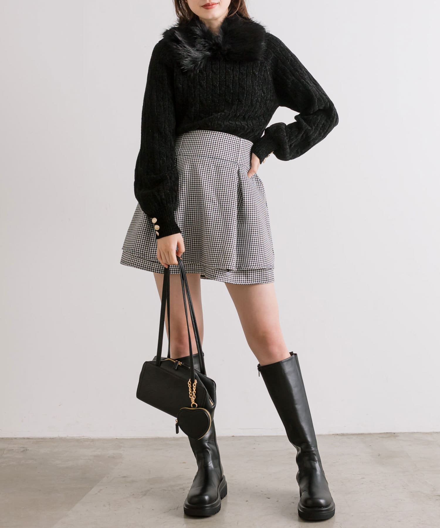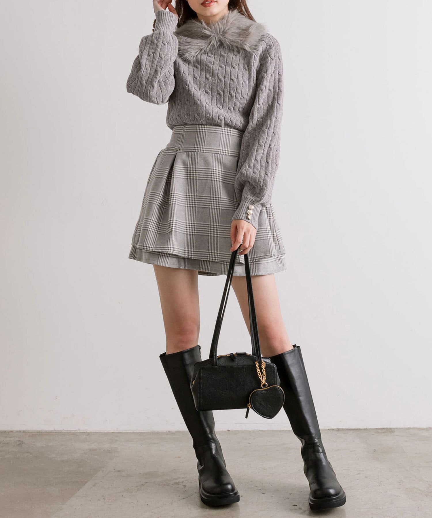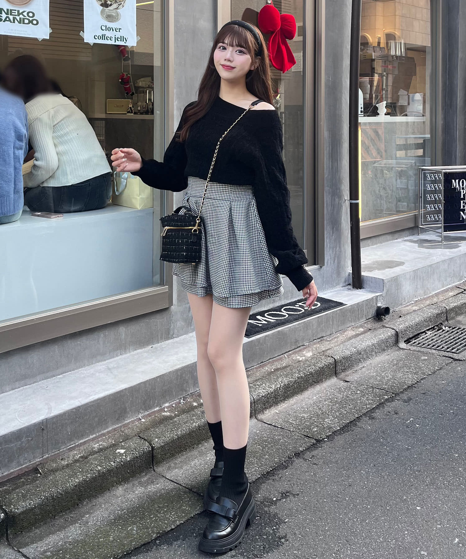 ・スカート部分ははオフがツイード、ライトグレーがチェック柄、ブラックが千鳥柄です。