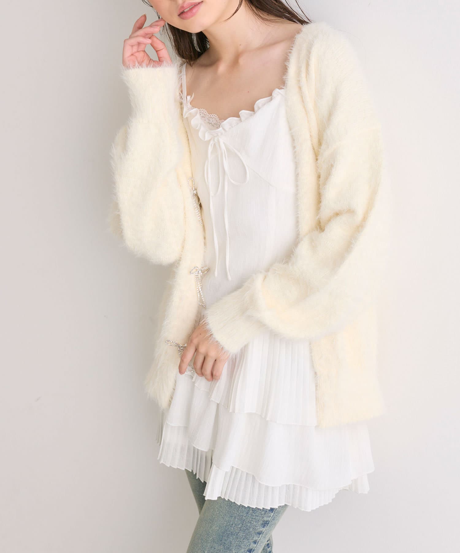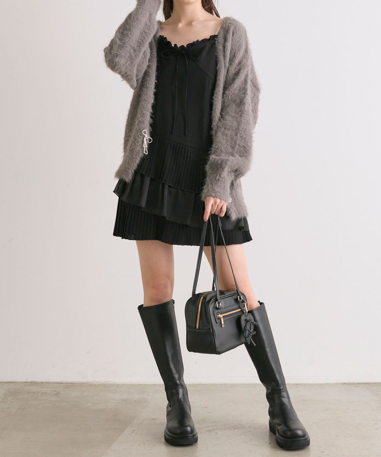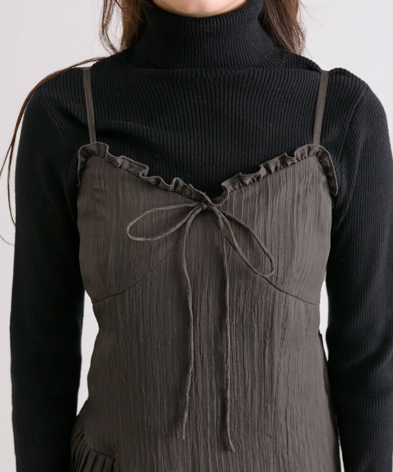 ・胸元のリボンやティアードなどかわいい要素が詰まったキャミワンピ。