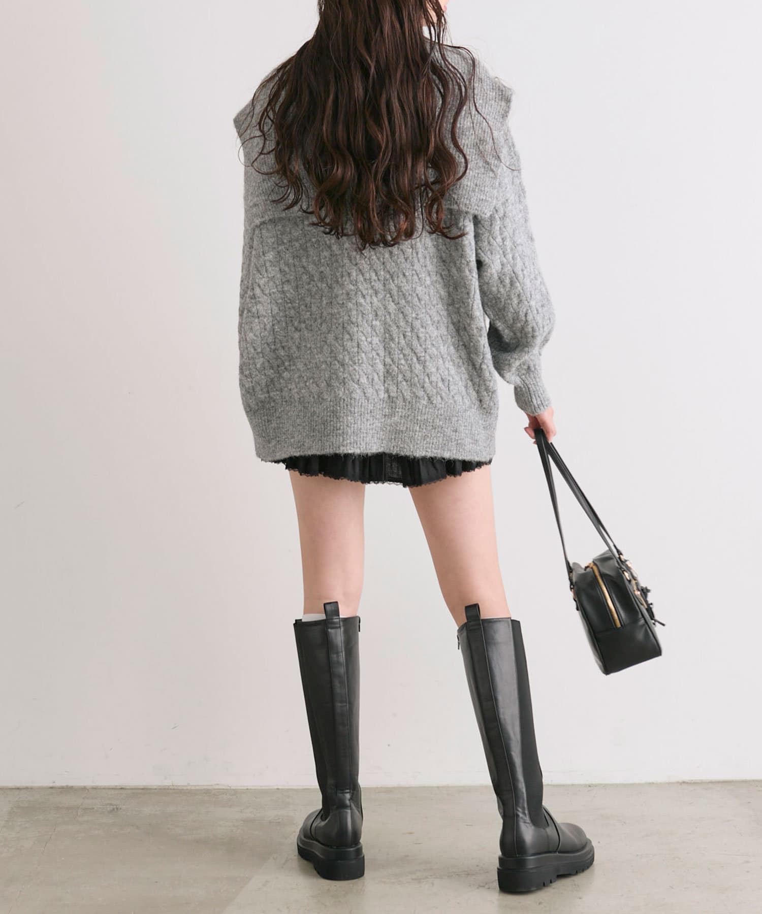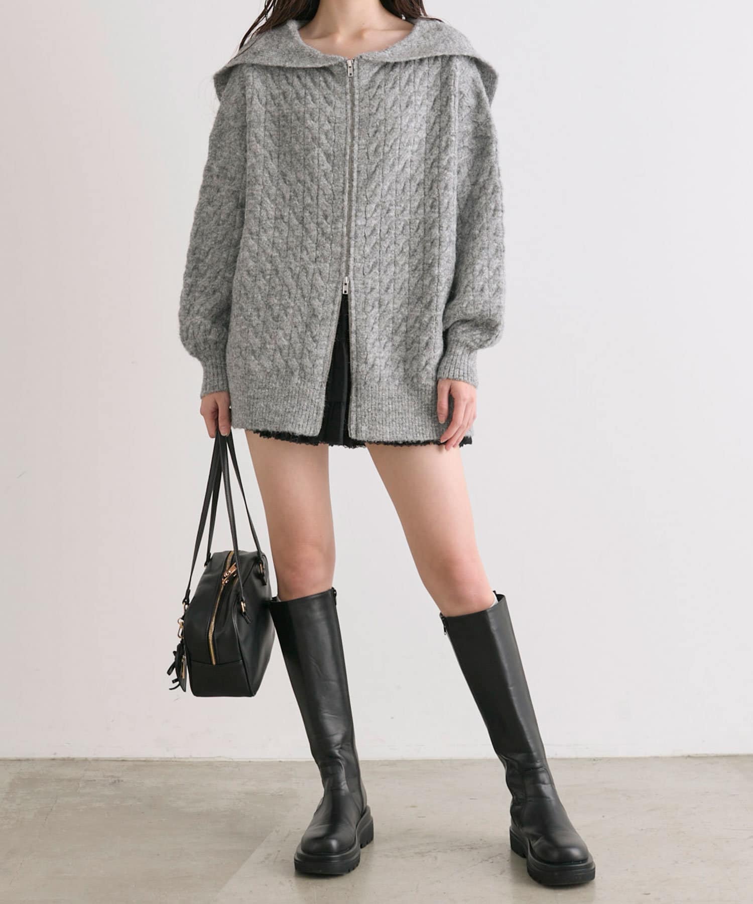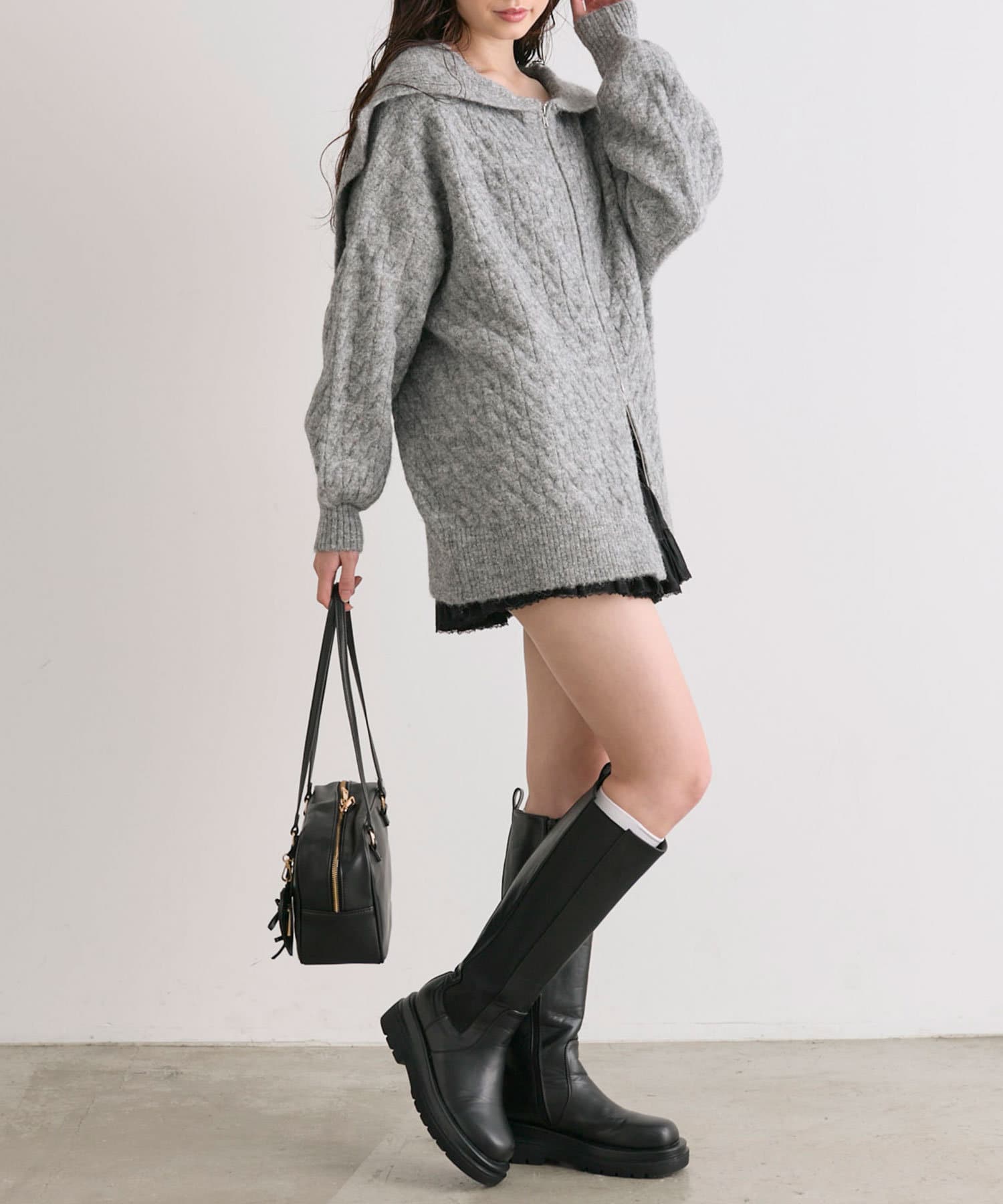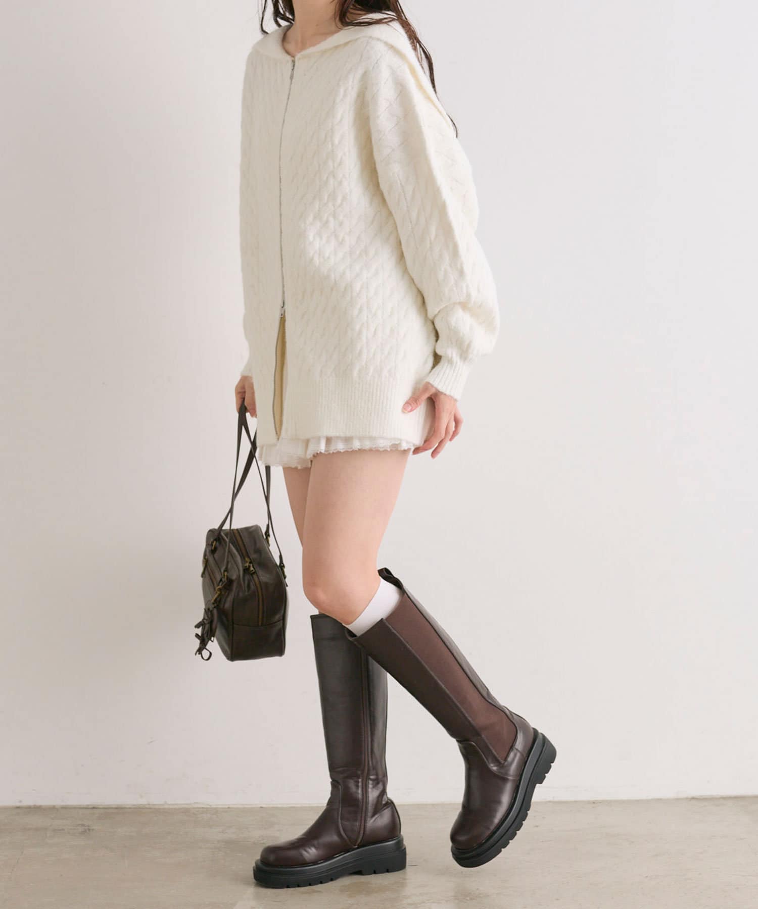 ・ミニスカート合わせでスカートが見えるように下を少し開けて着るのがおすすめ。