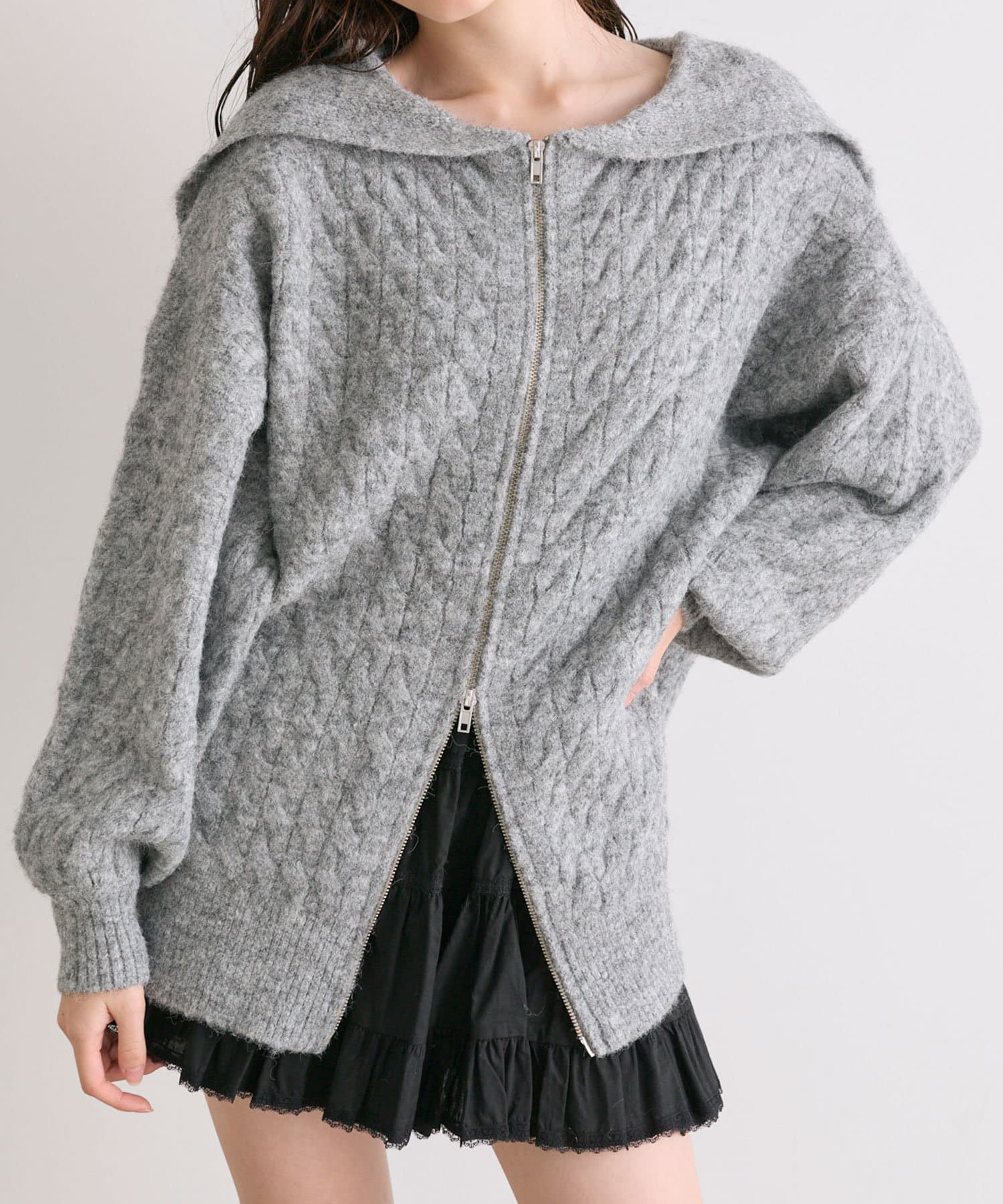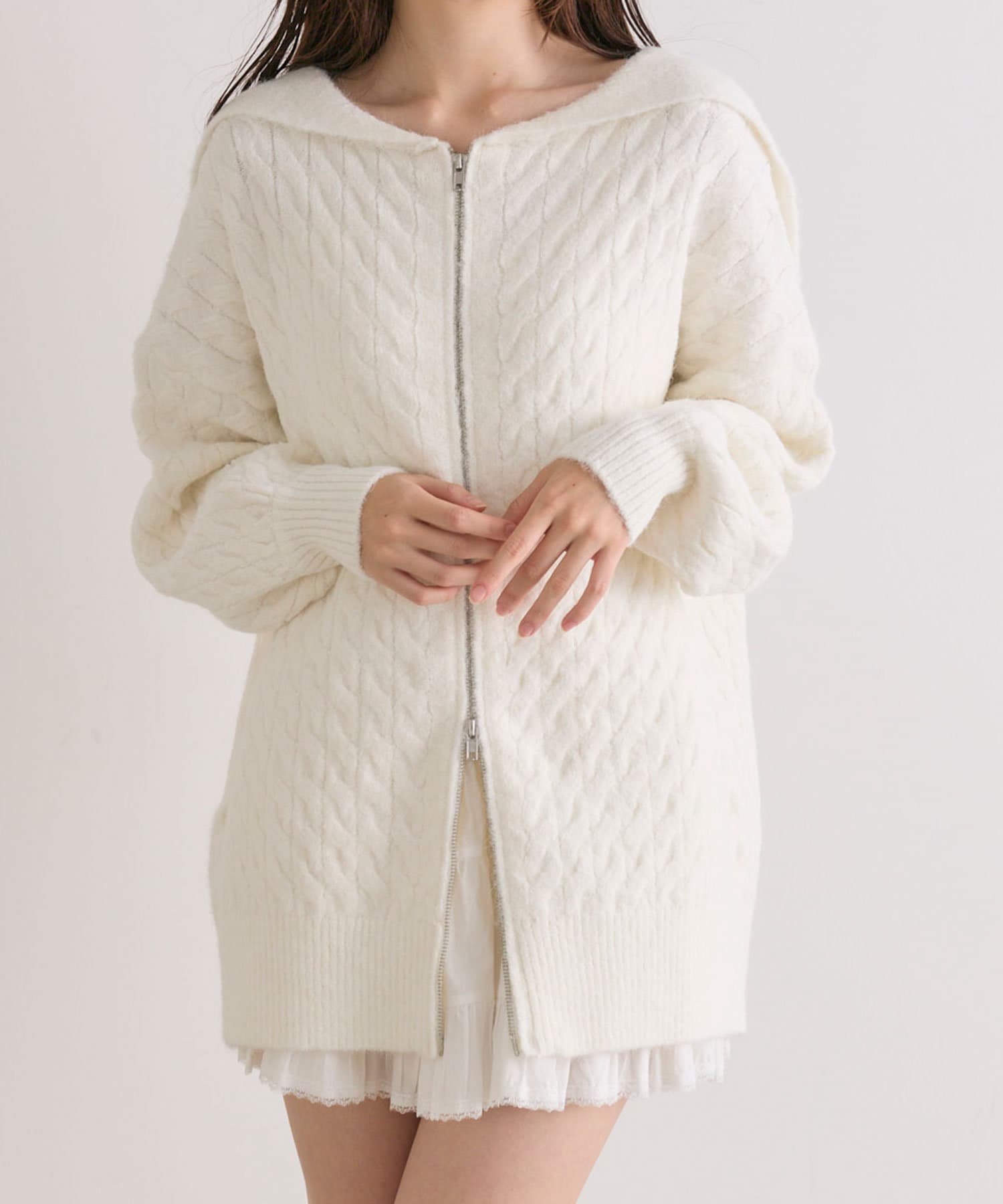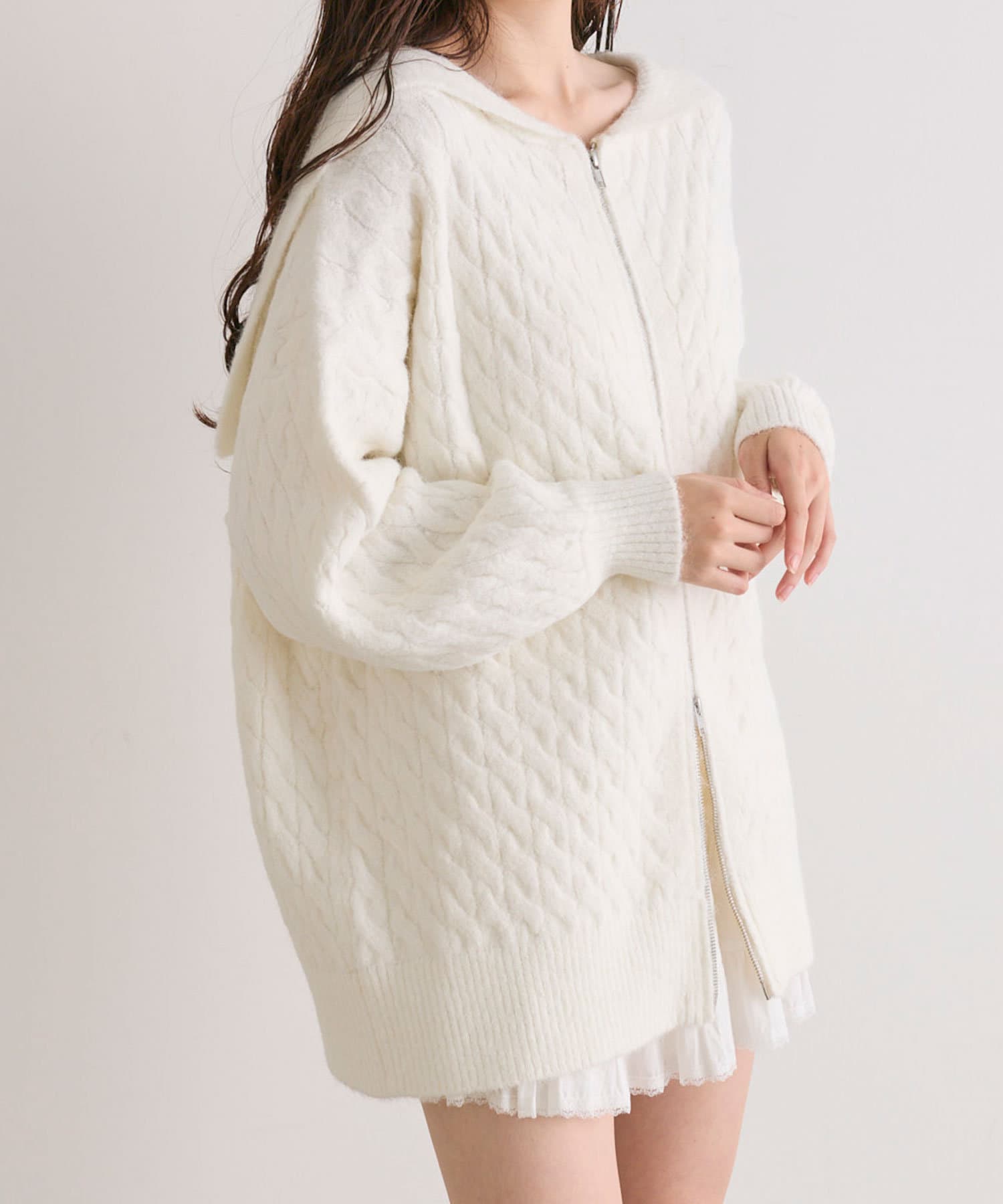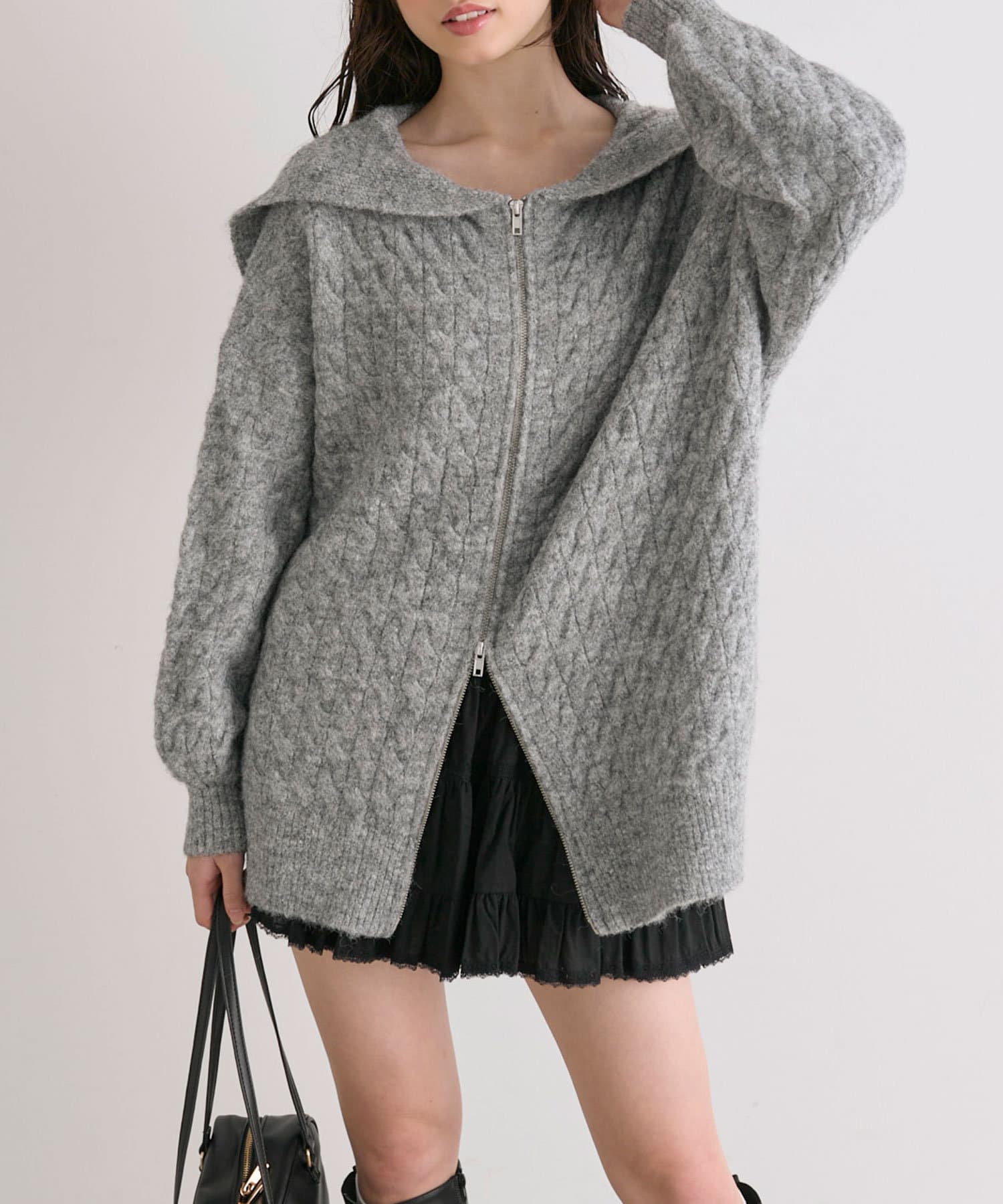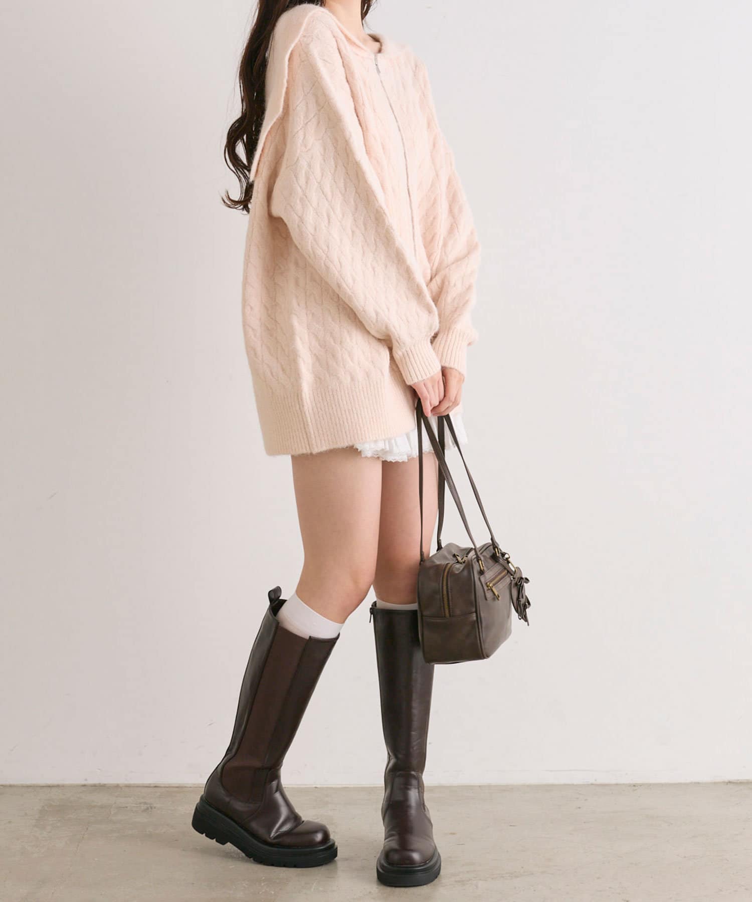 ・ミニスカート合わせでスカートが見えるように下を少し開けて着るのがおすすめ。
