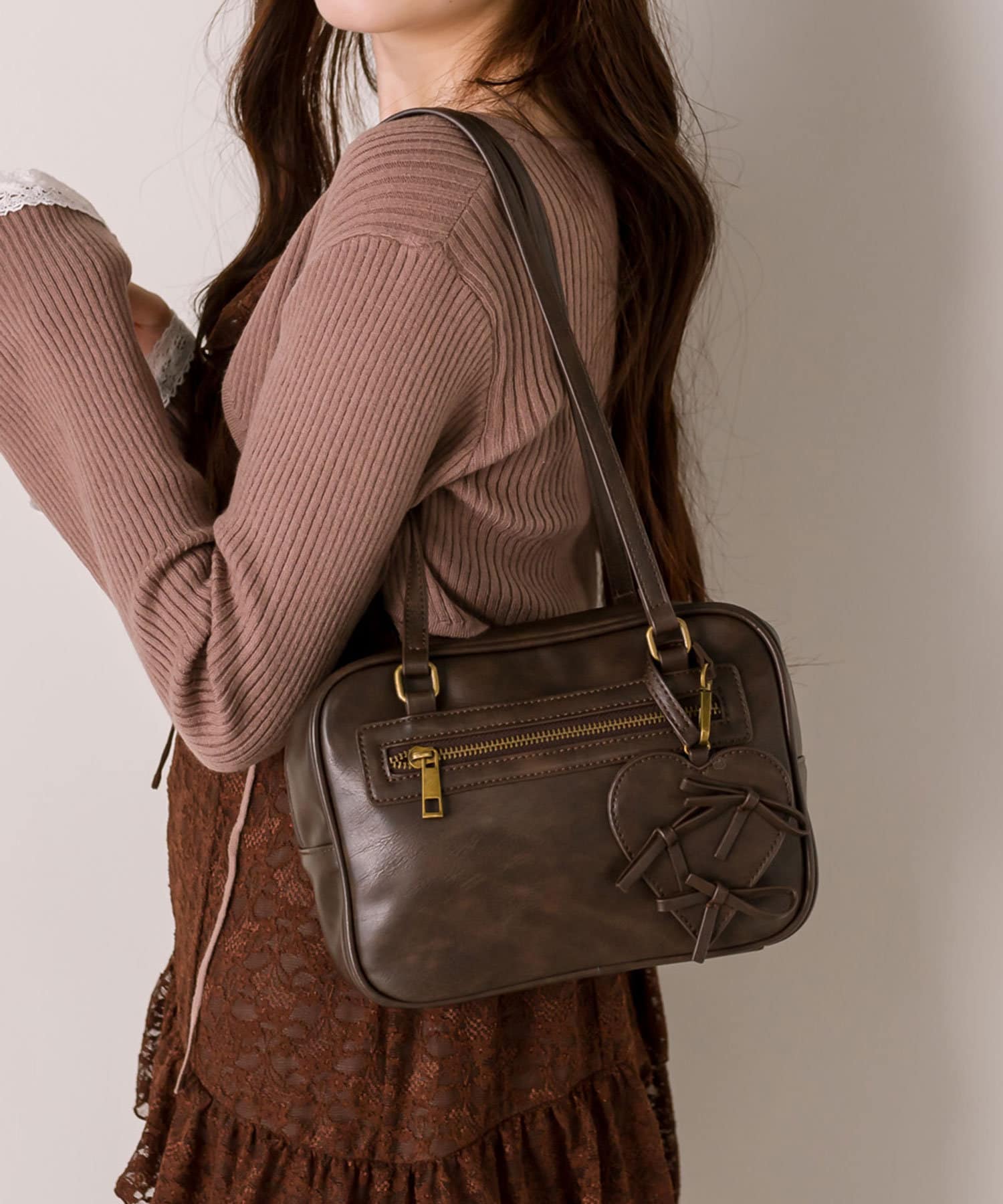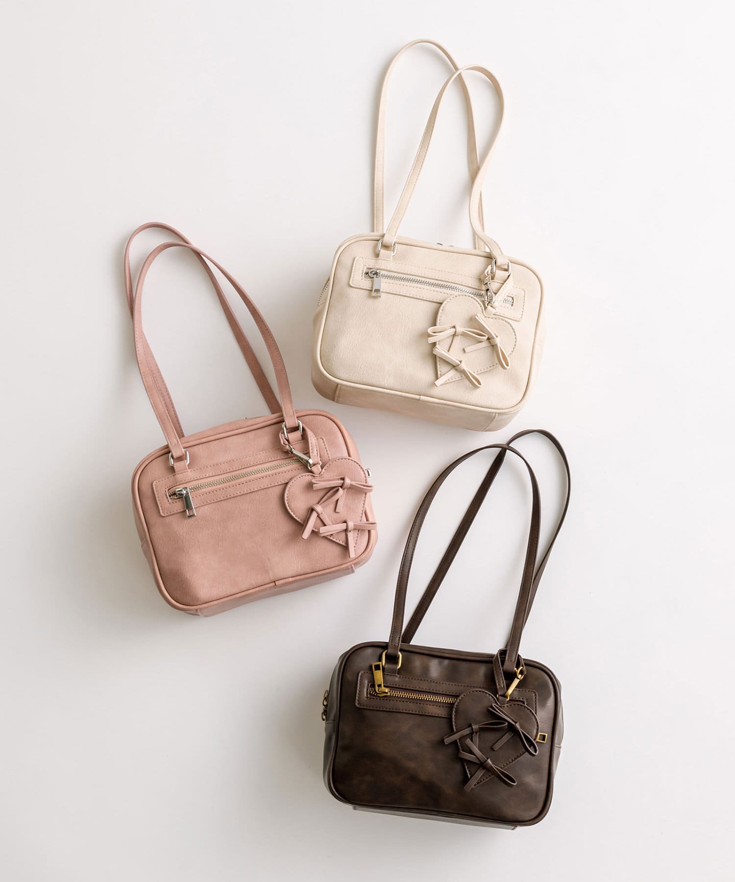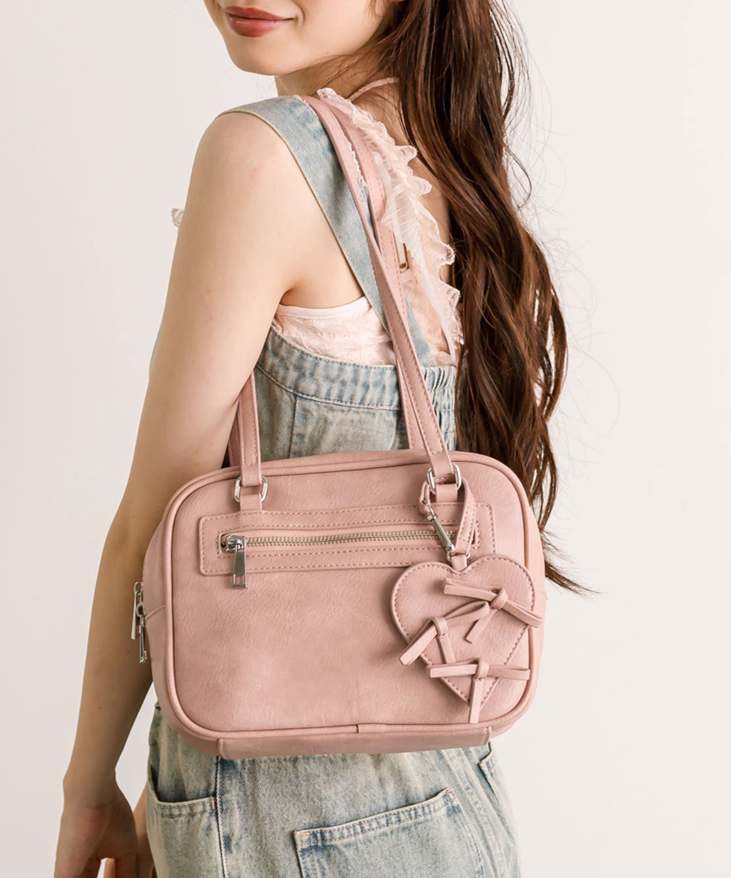 ・リボンが付いたハートポーチがワンポイントで韓国っぽいデザイン。