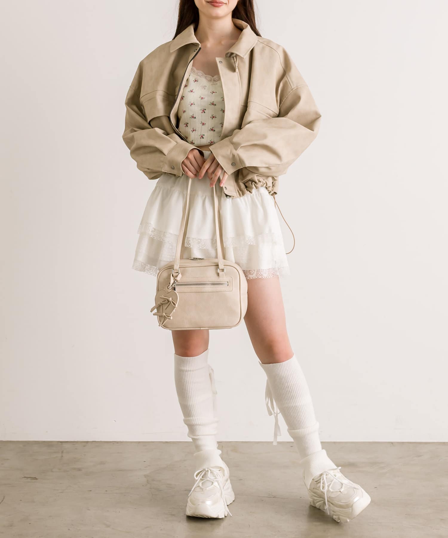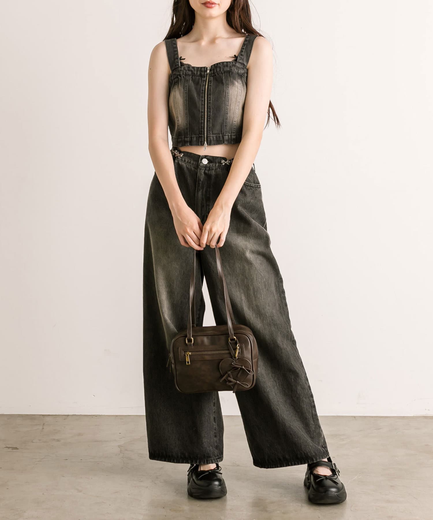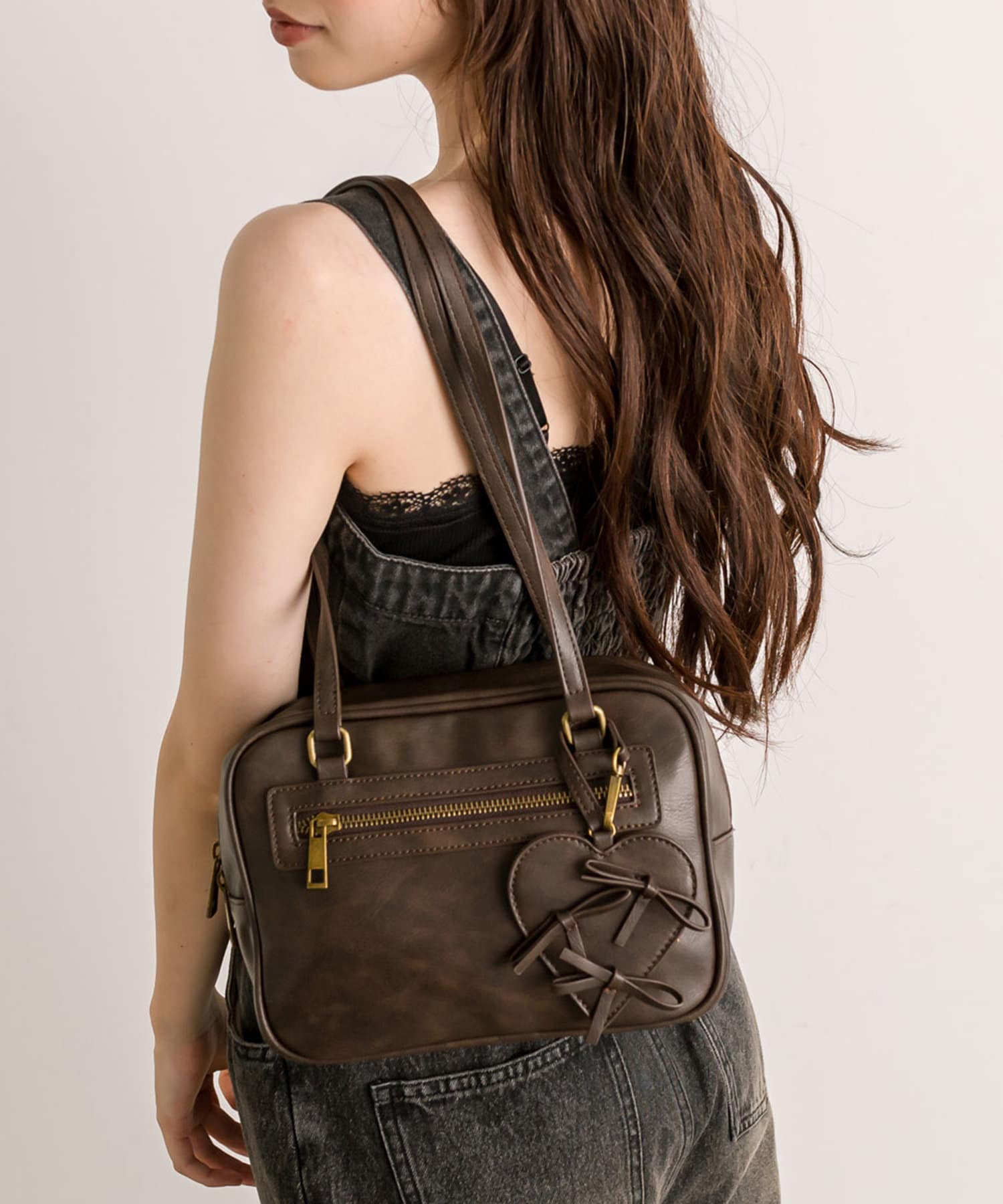 ・リボンが付いたハートポーチがワンポイントで韓国っぽいデザイン。