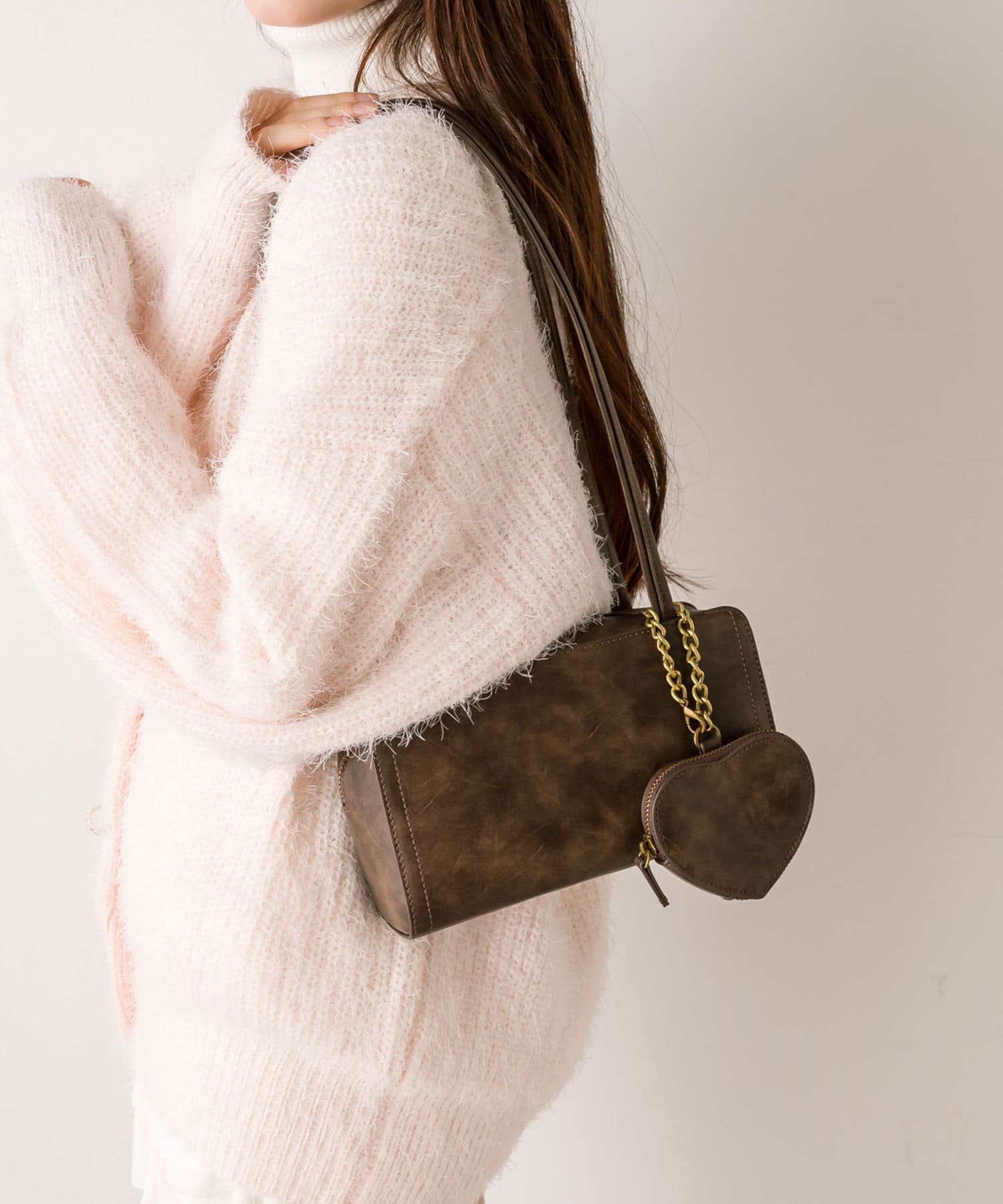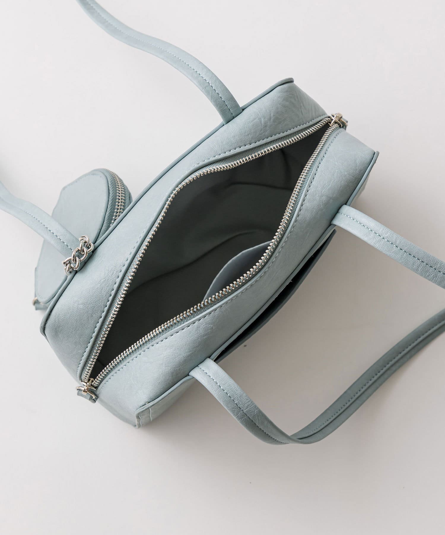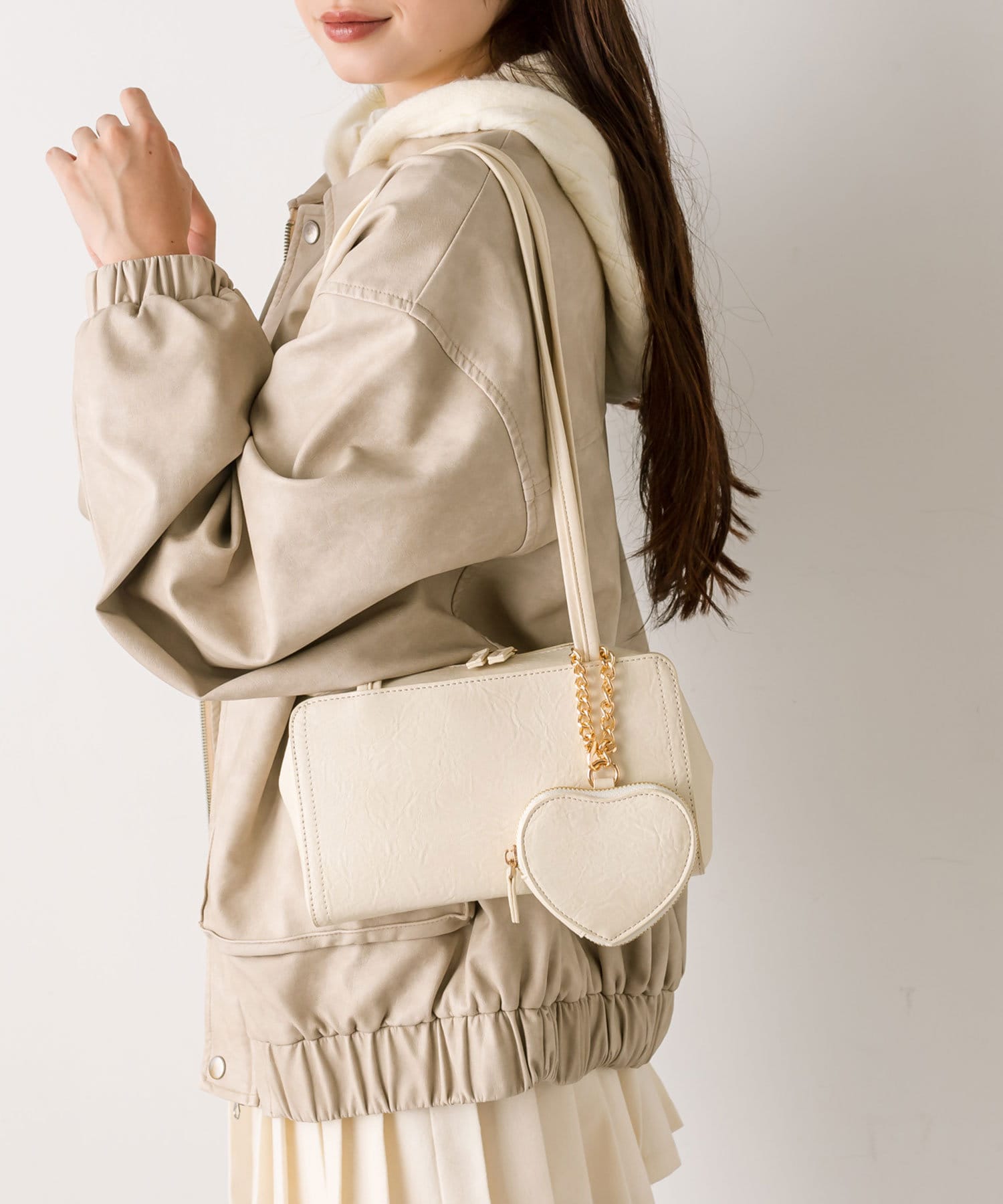 ・背面に外ポケットやハートチャームには、さっと取り出したい小物を収納できます。