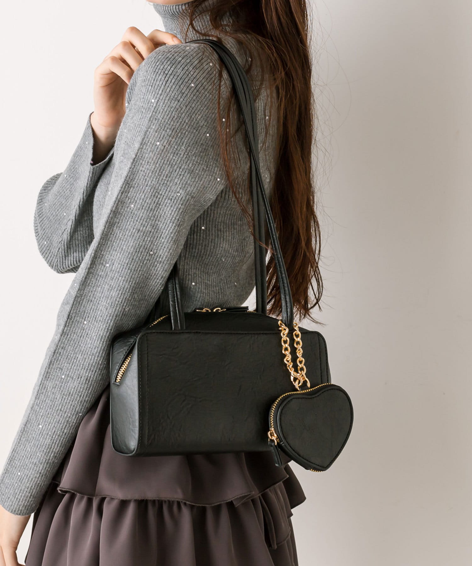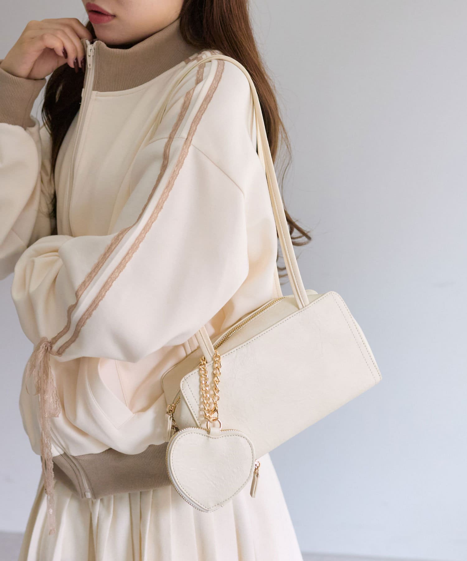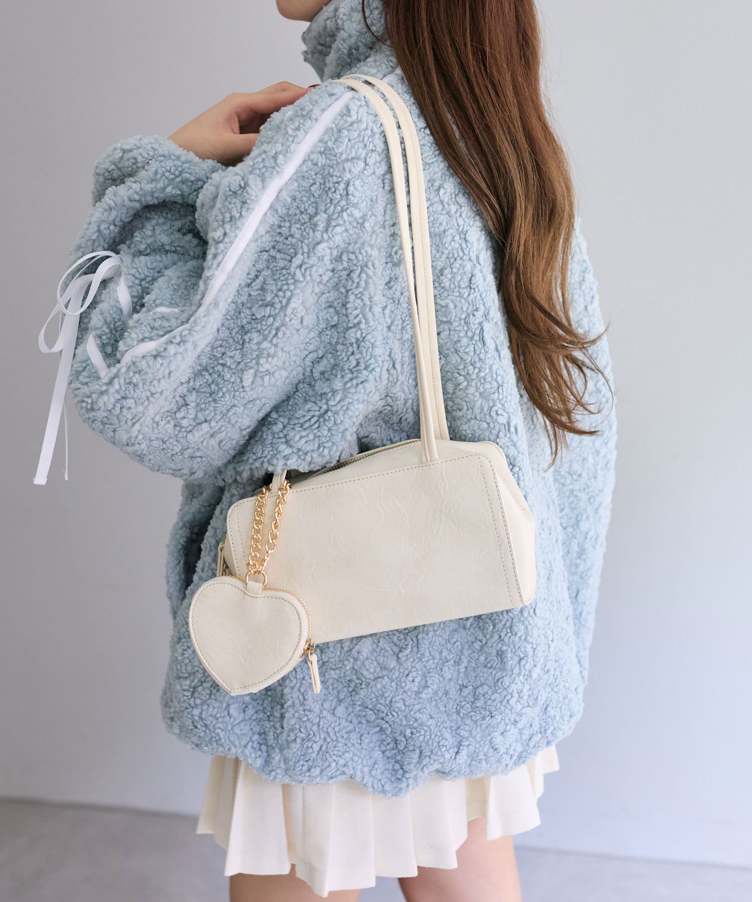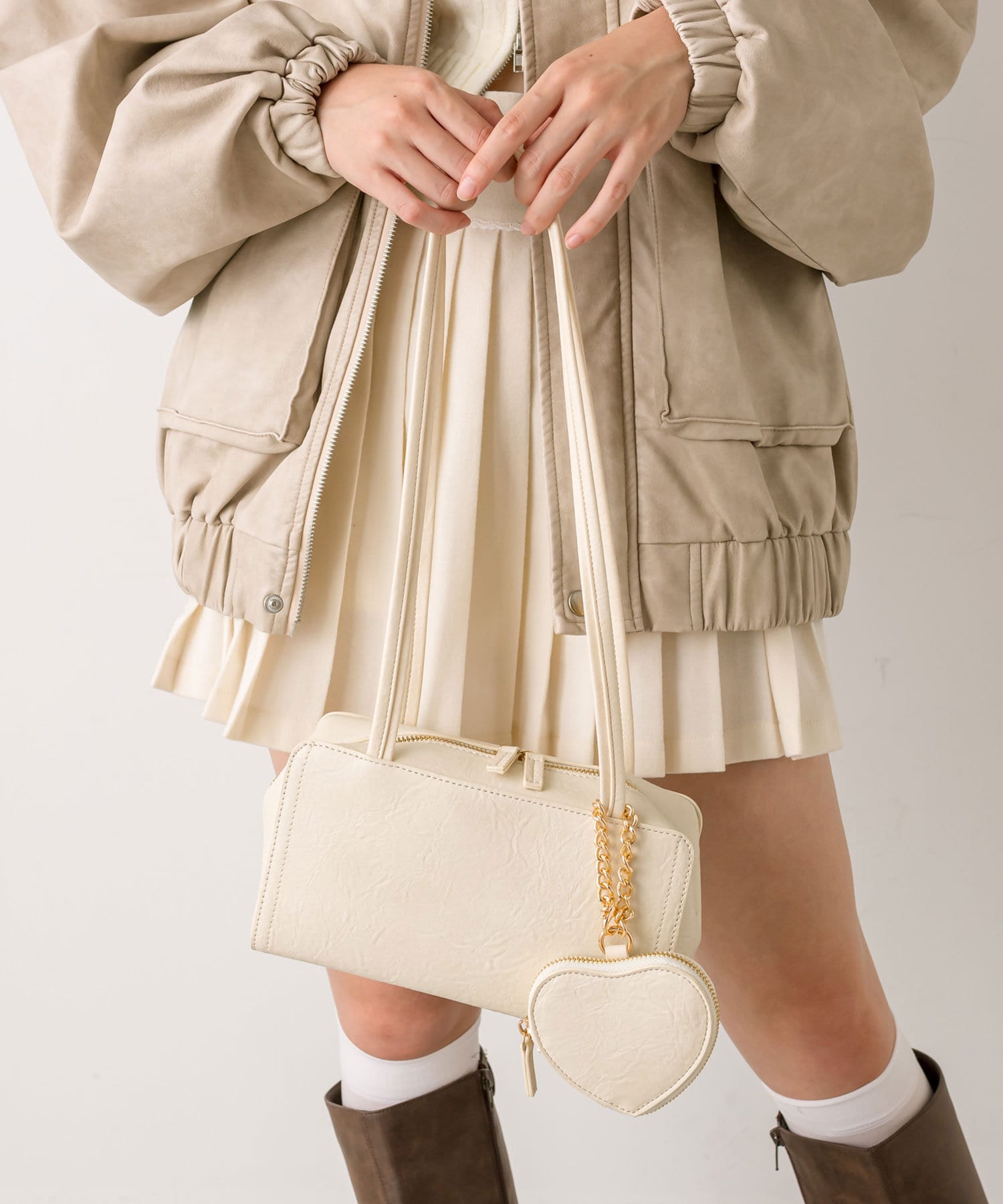 ・ハートポーチのチャームがワンポイントで韓国っぽいデザインです。