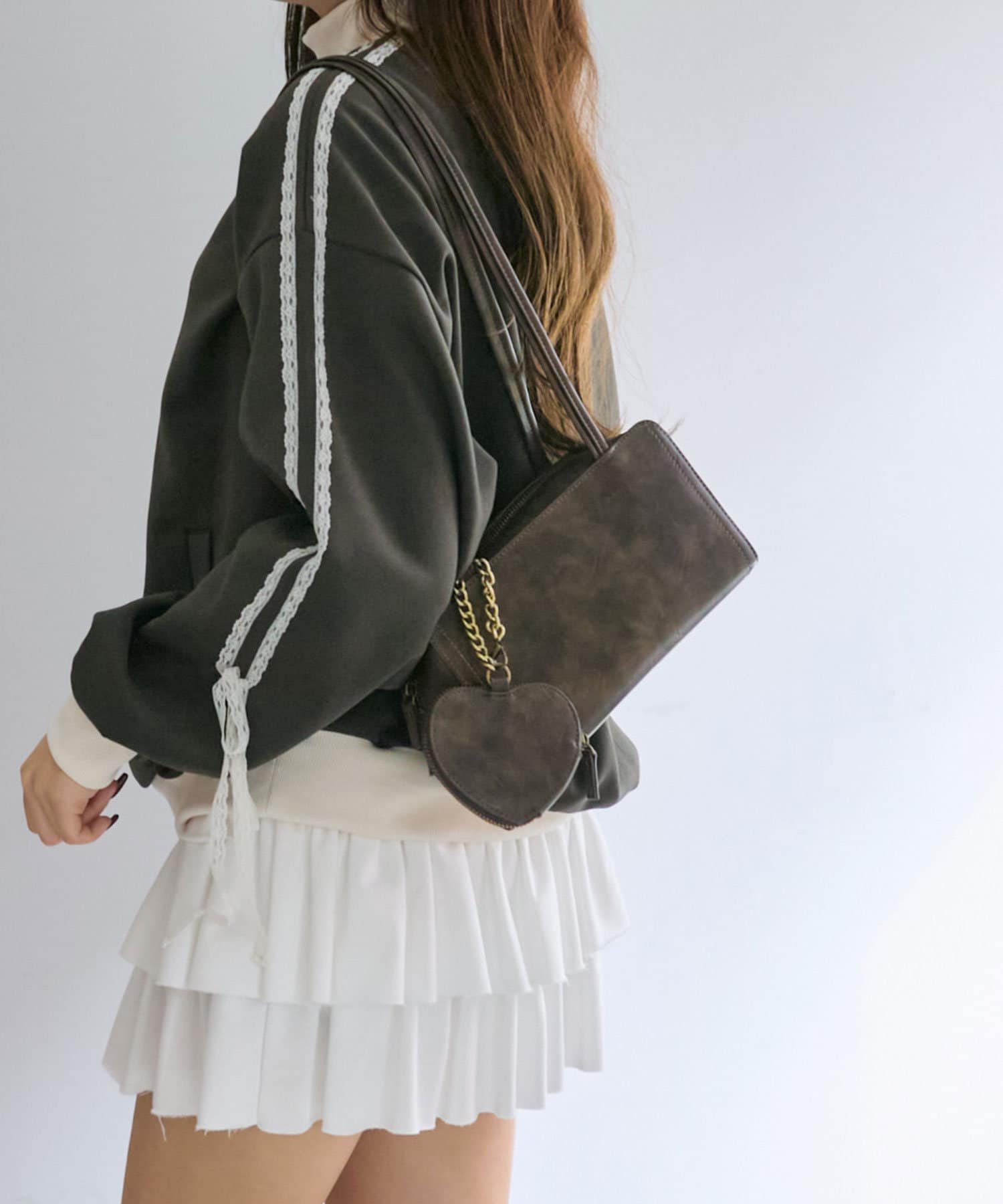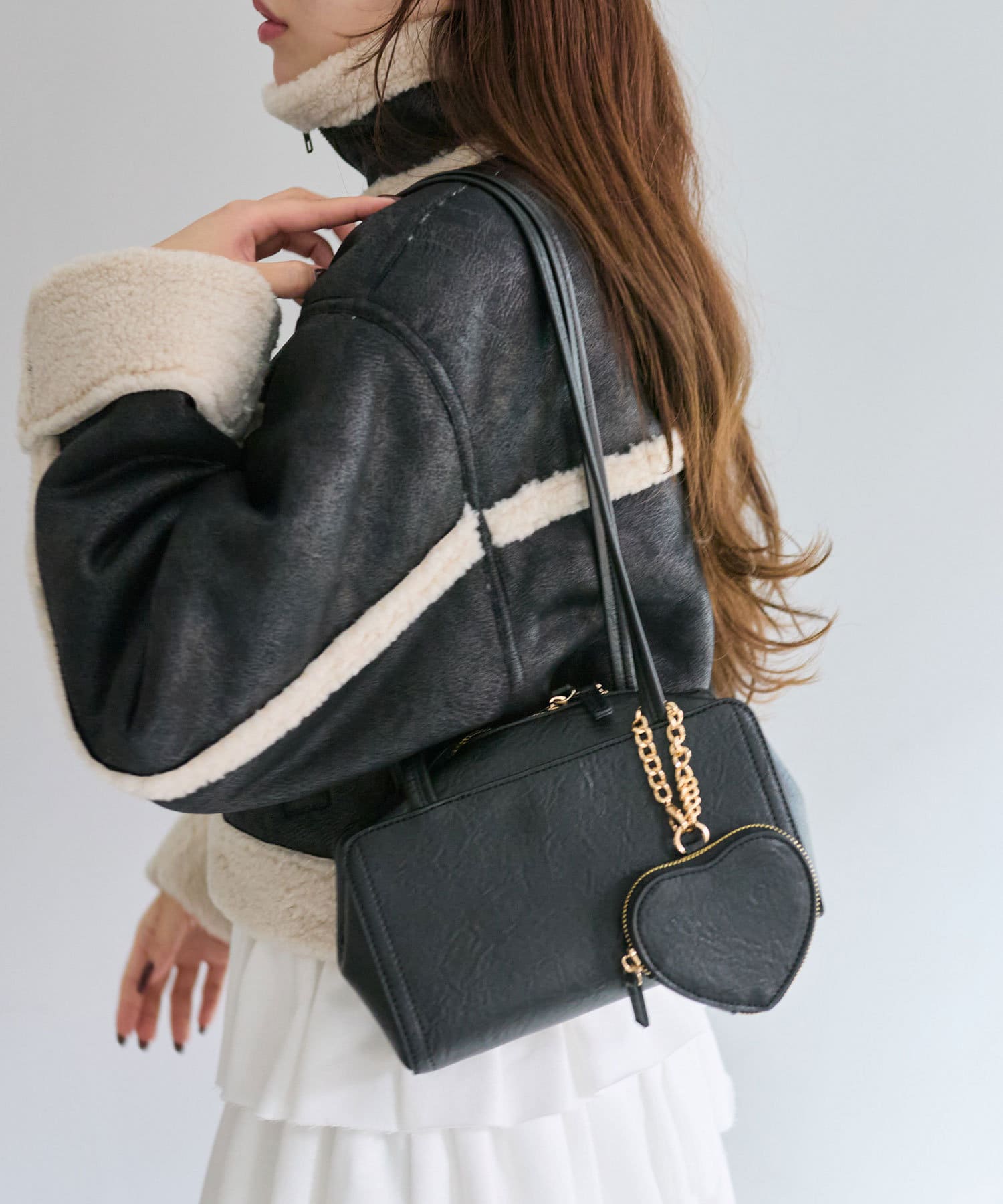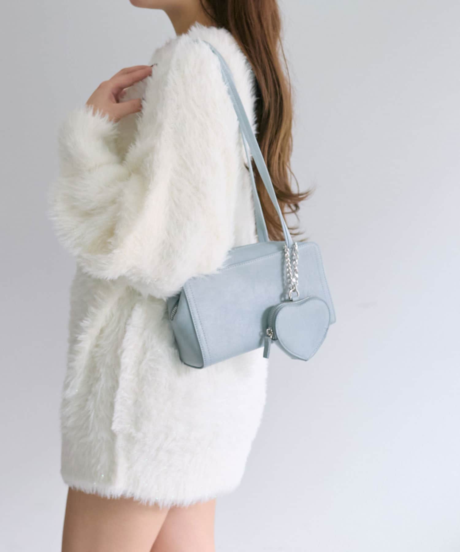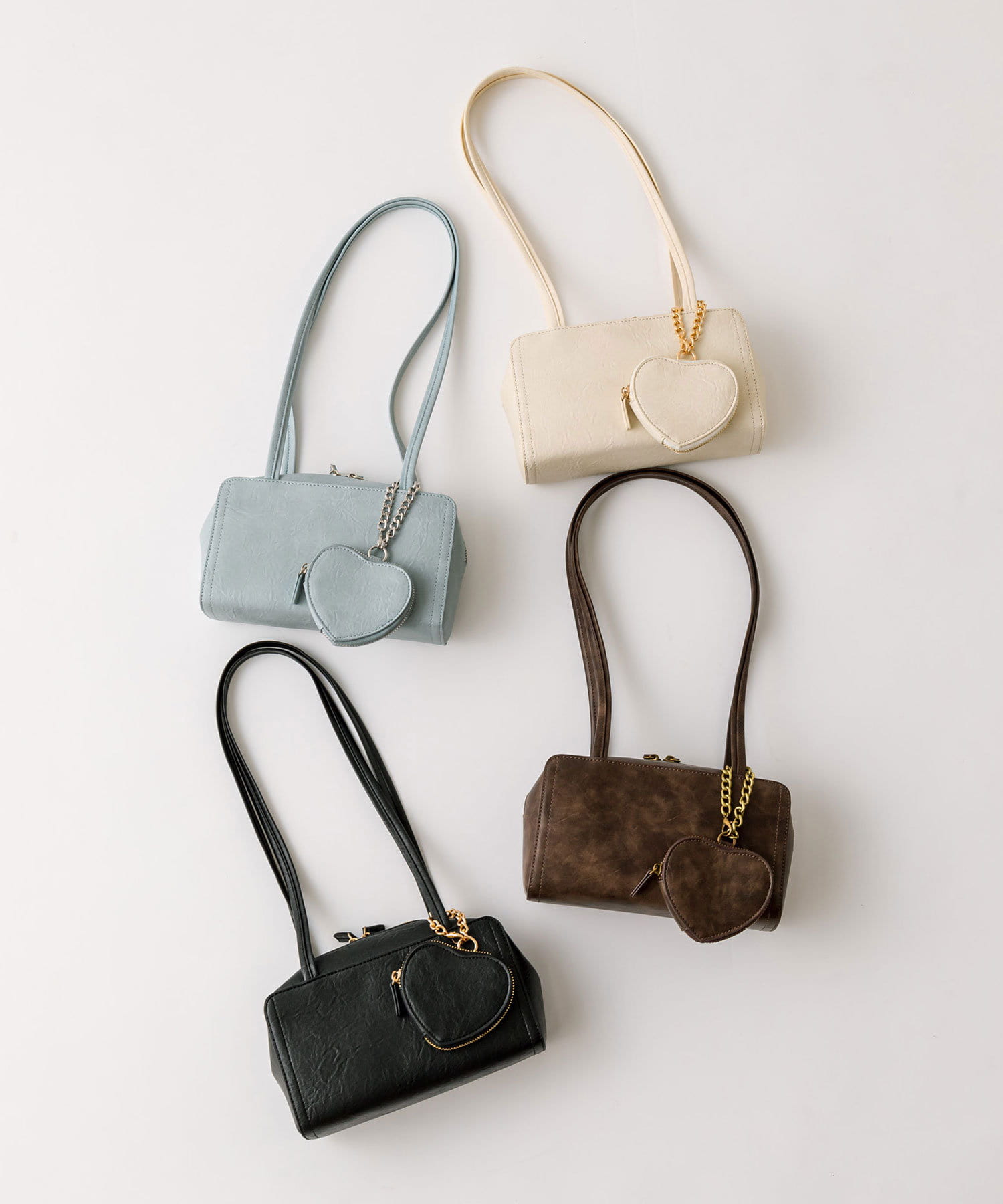 ・ハートポーチのチャームがワンポイントで韓国っぽいデザインです。