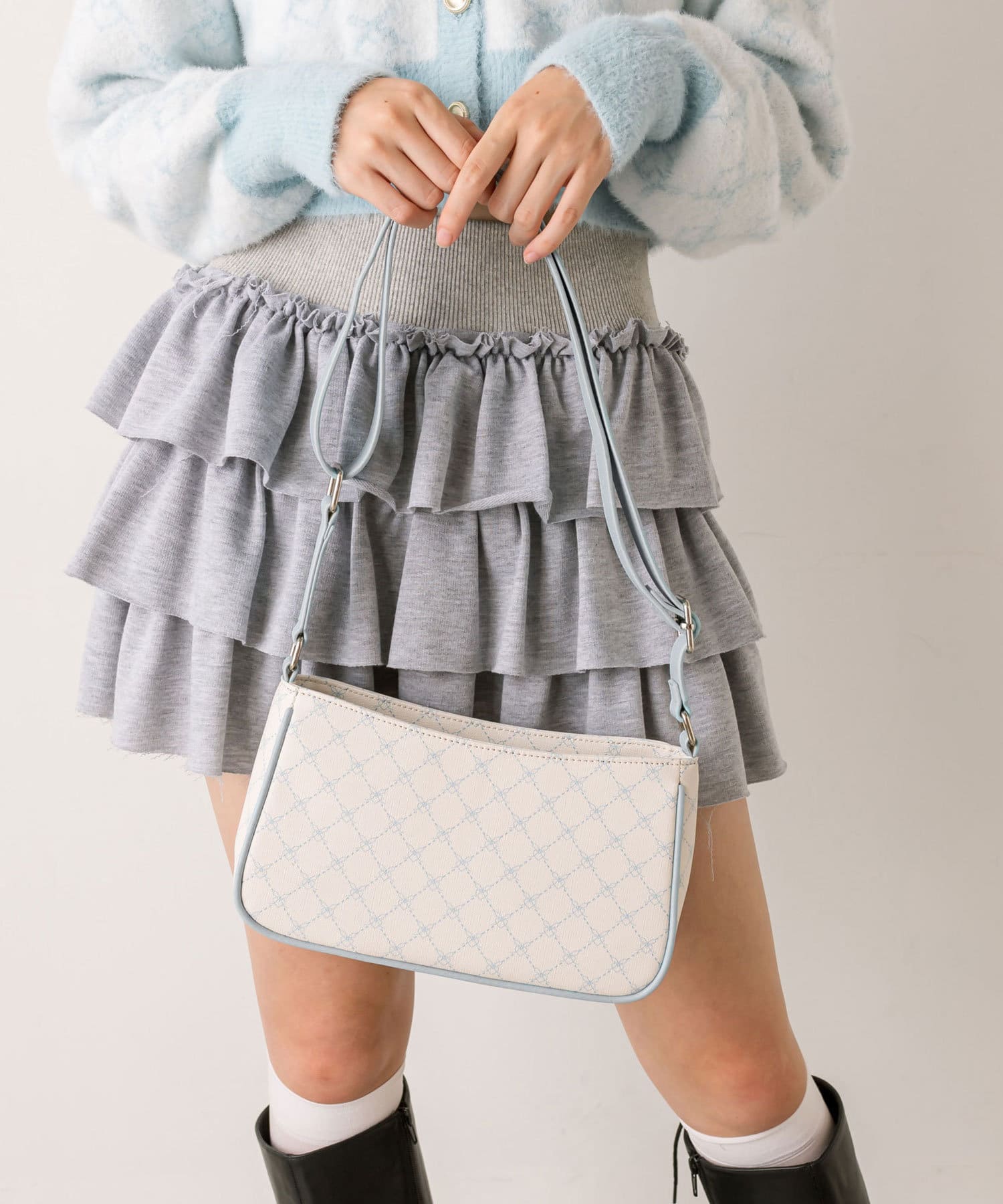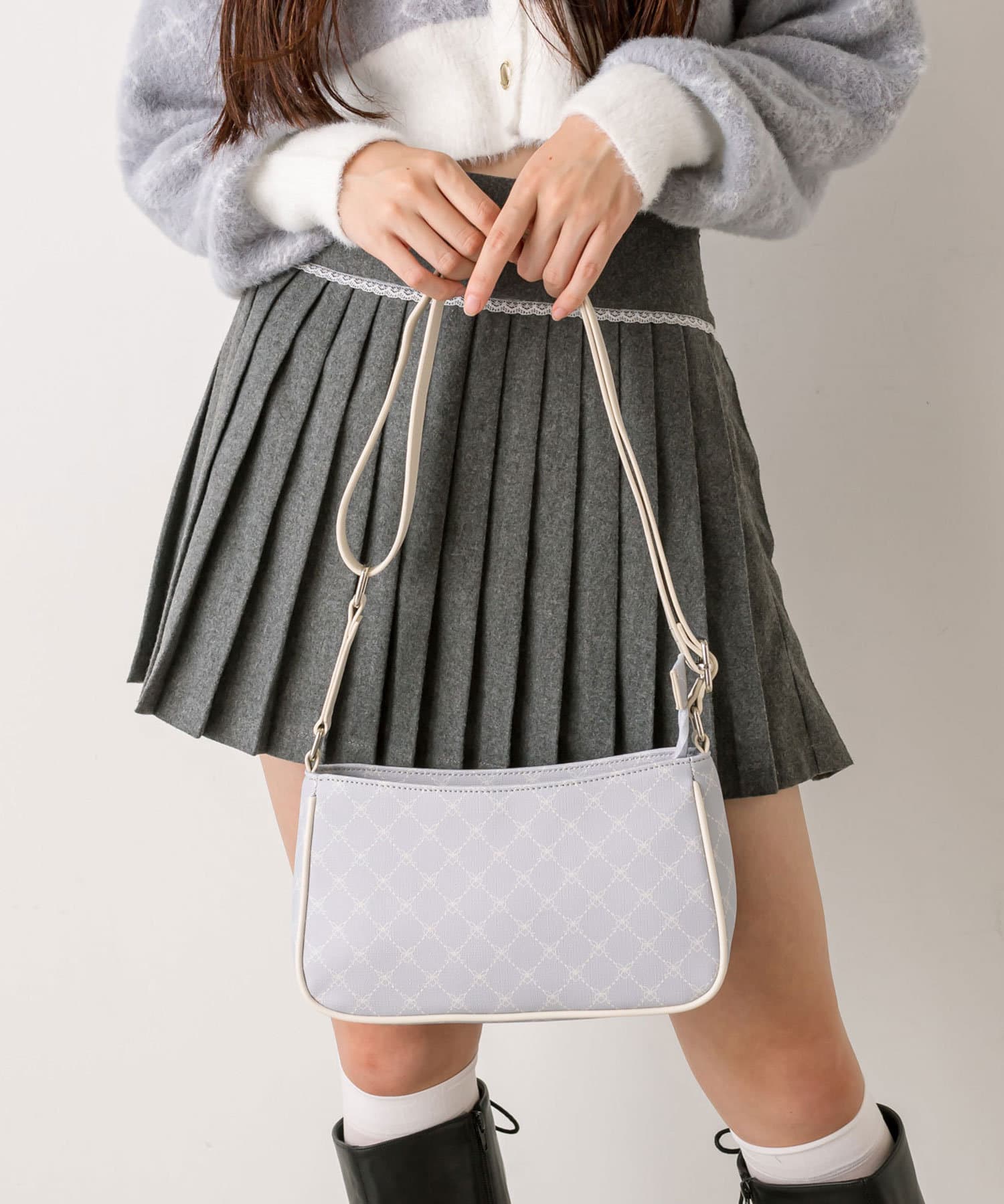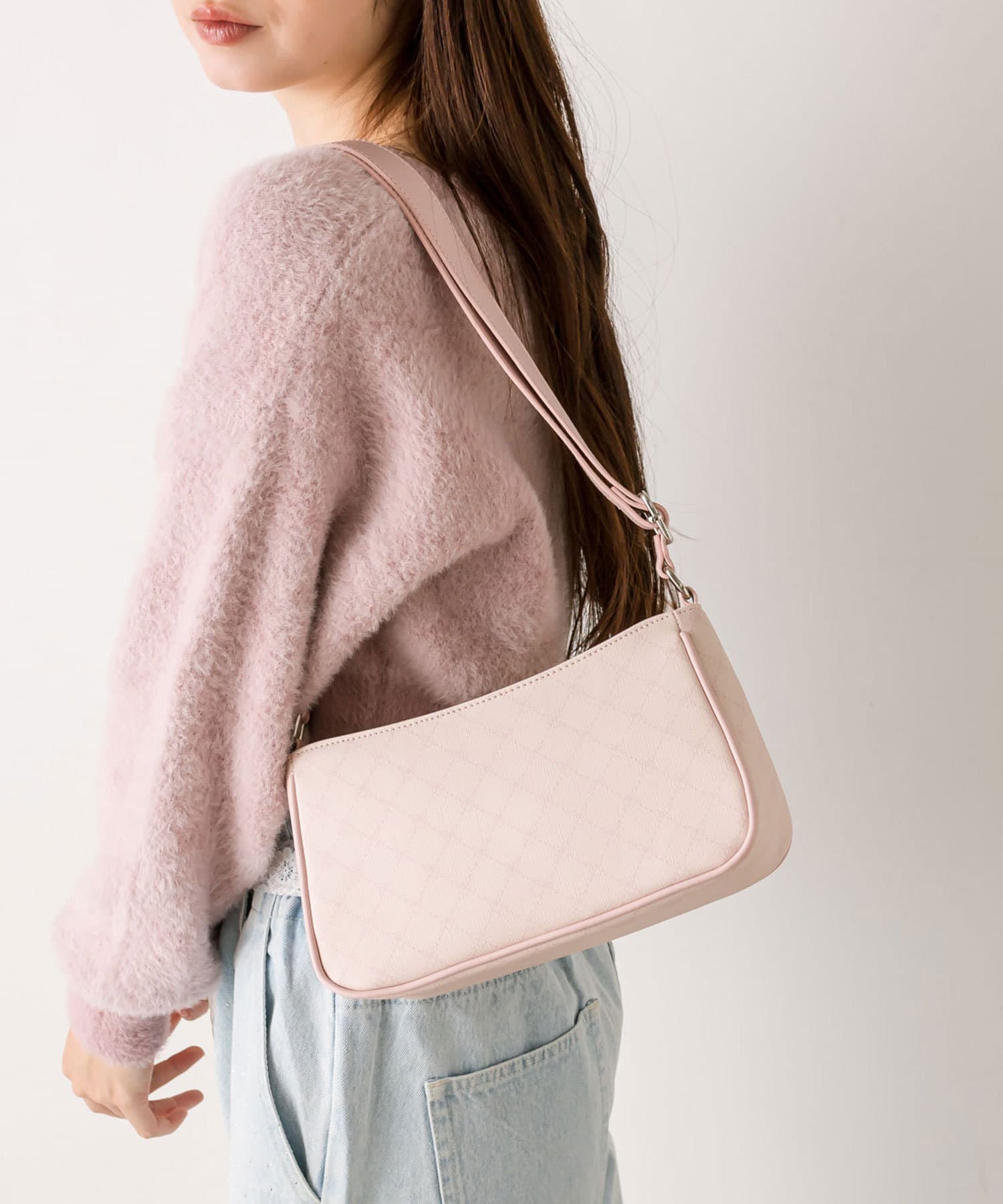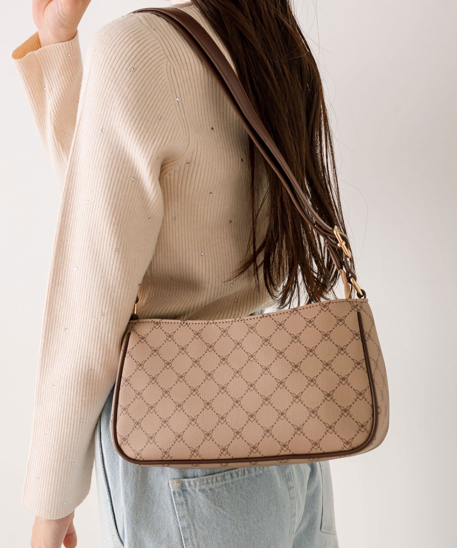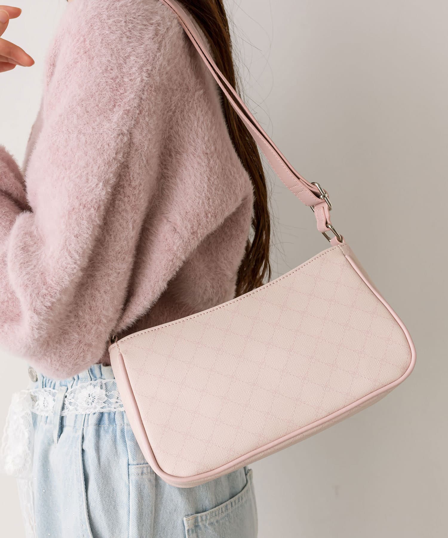 ・きれいめからカジュアルまで合わせやすく、韓国女子に人気のホーボーバッグ。