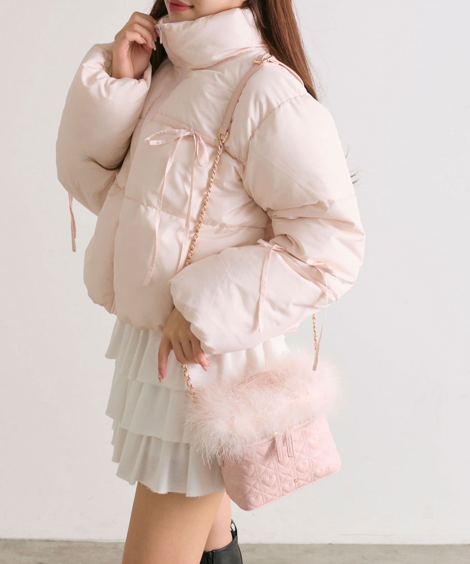 ・ふわふわのマラボ―付きでコーデが華やかになります。