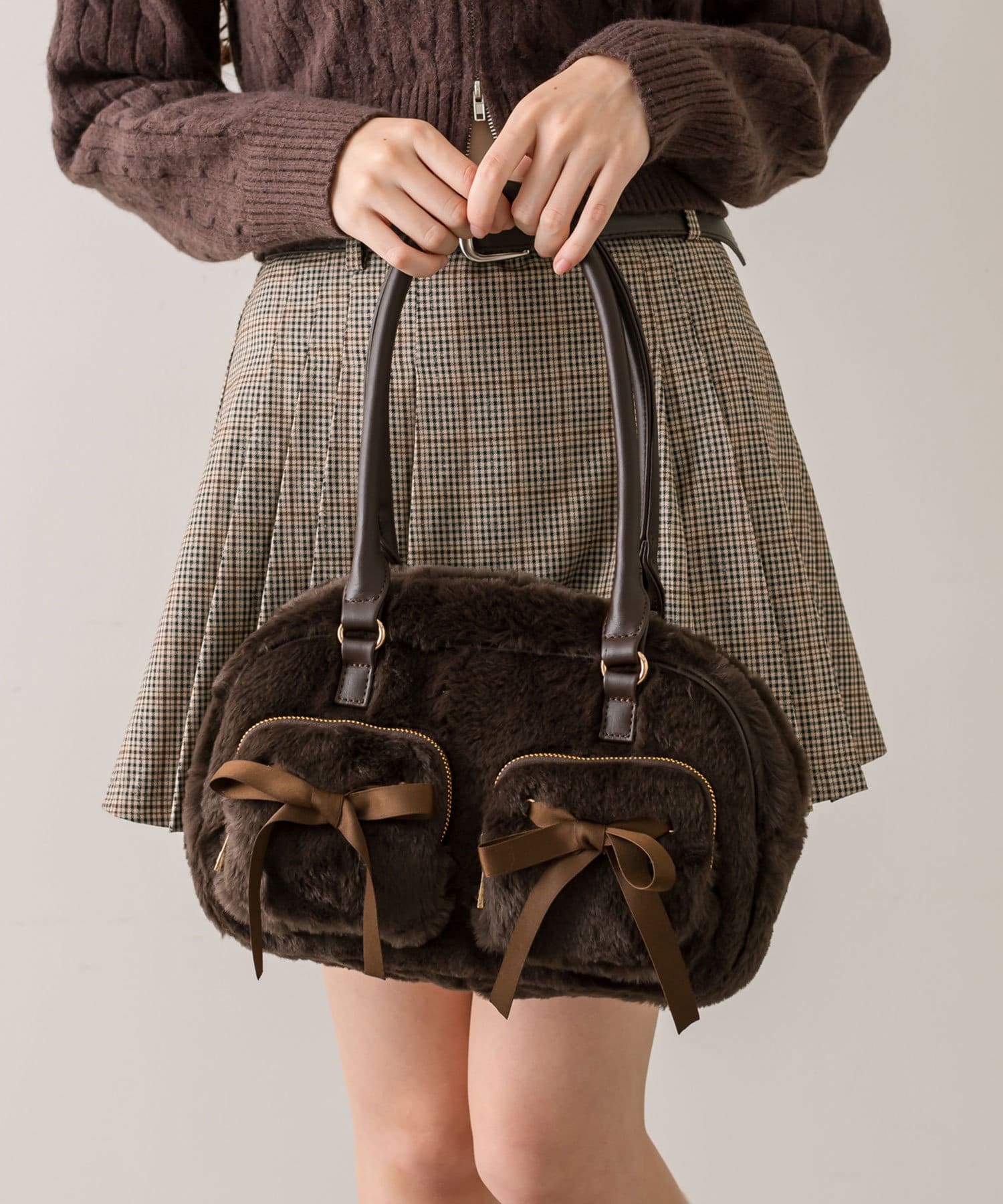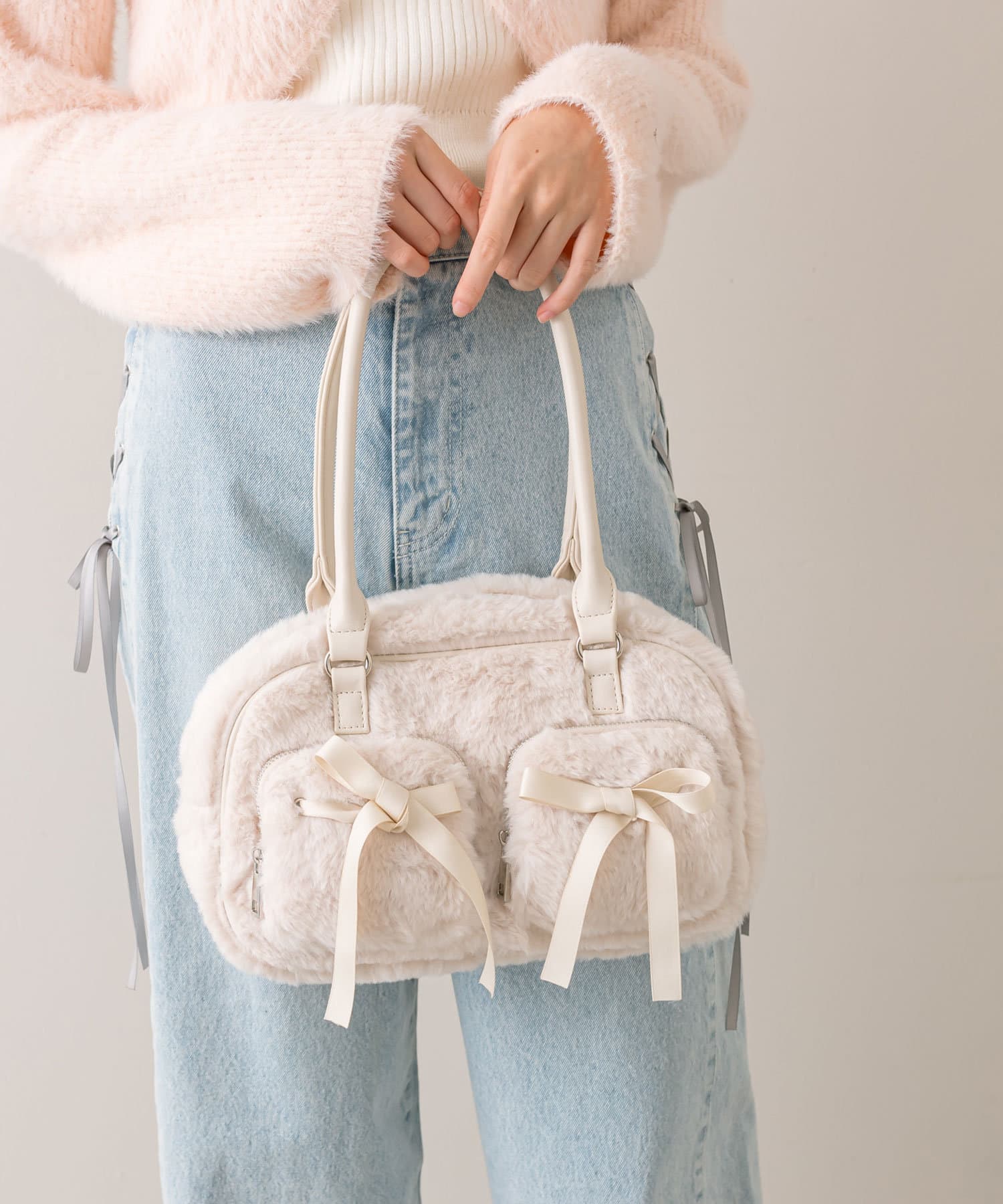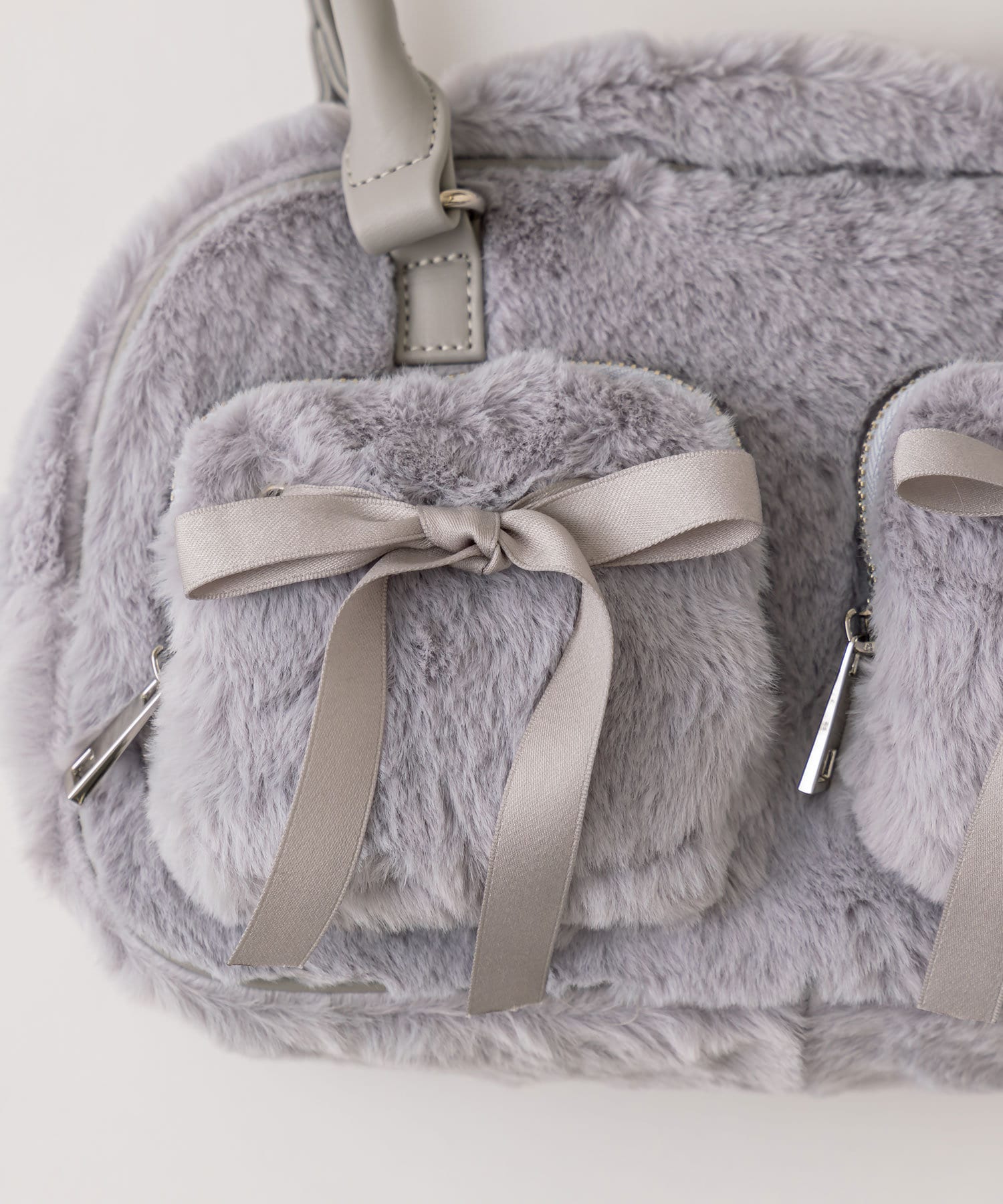 リボンポケット付きファーボストン