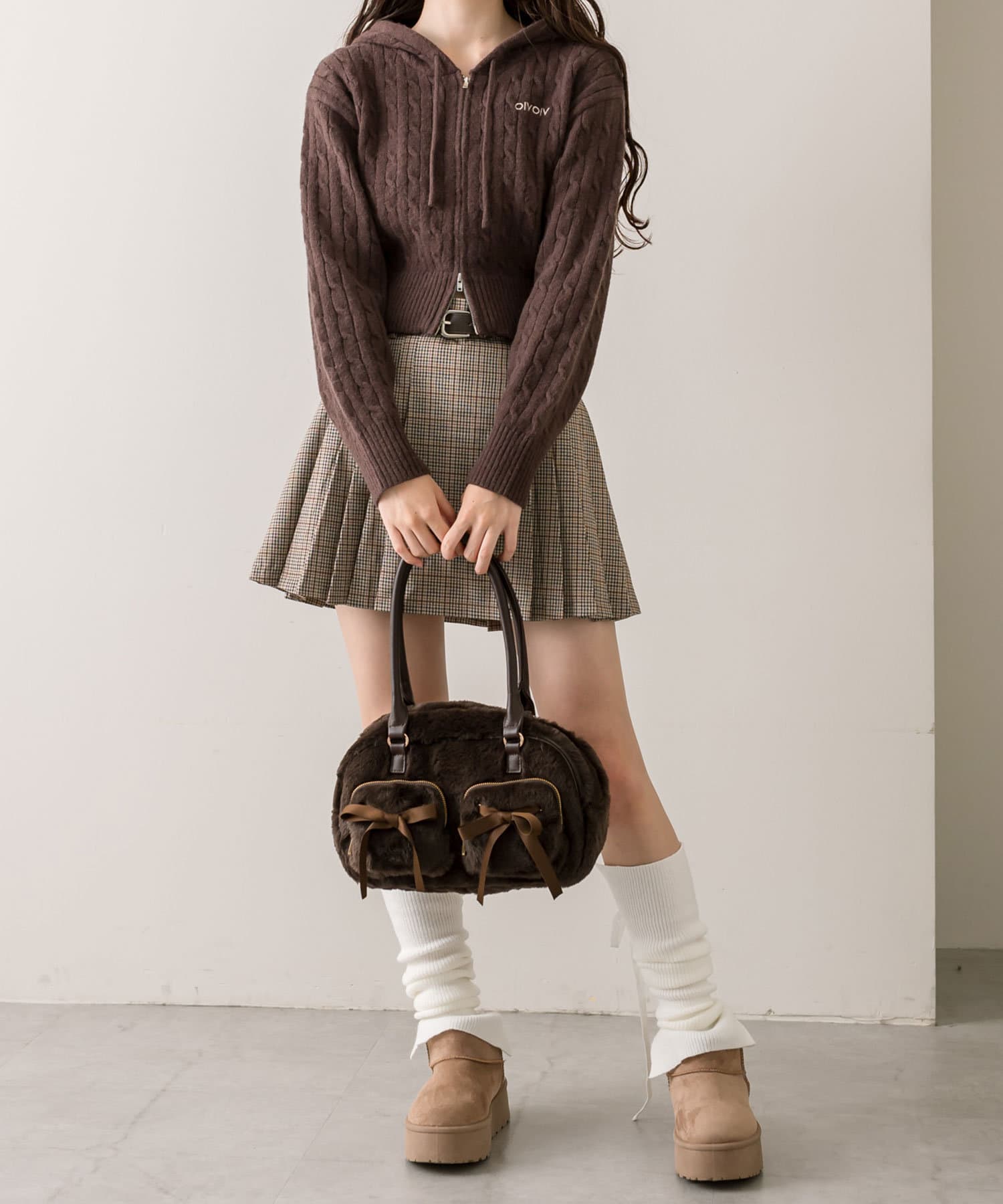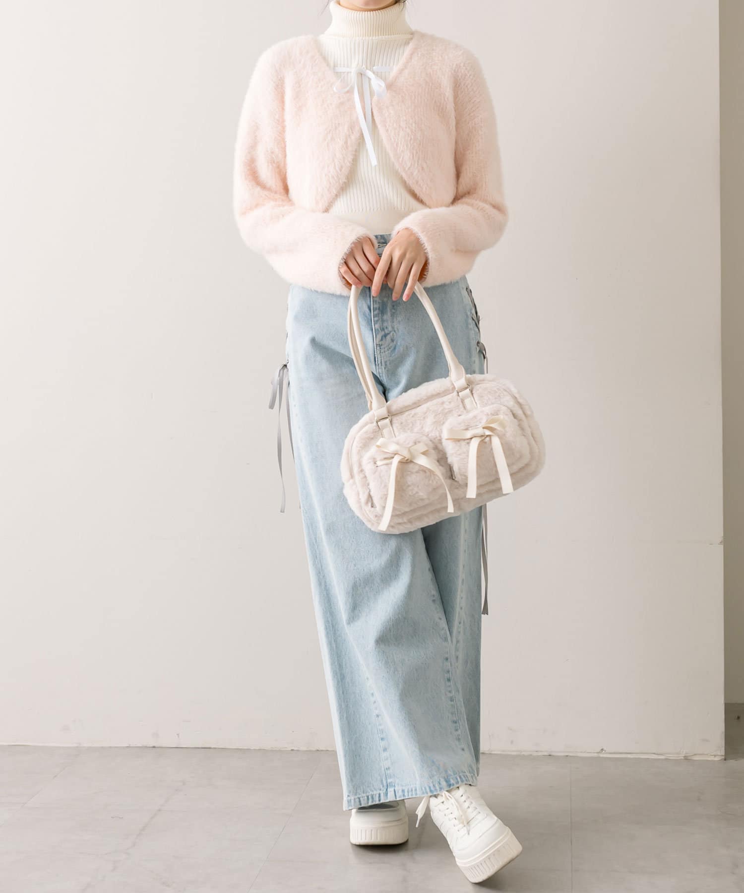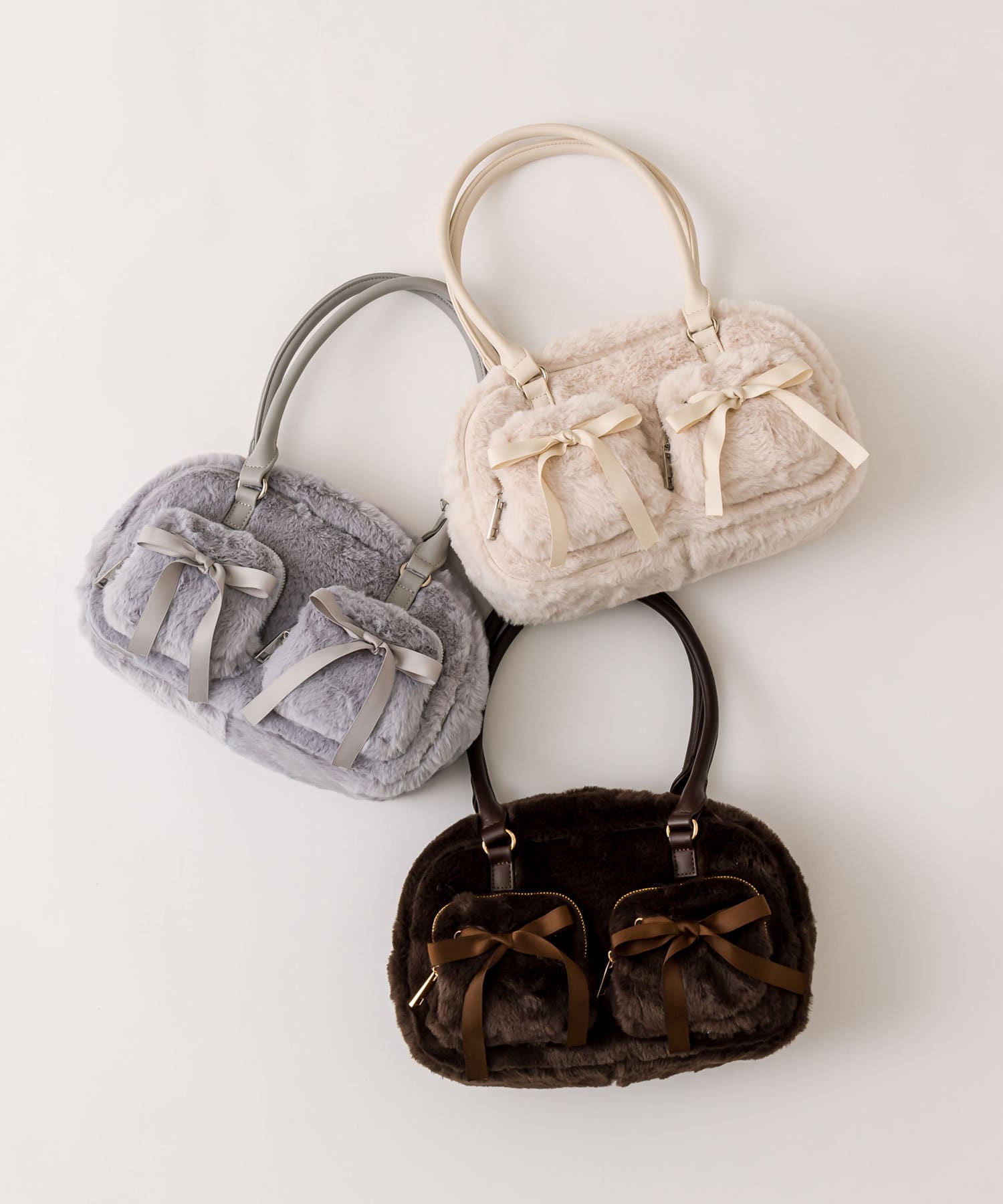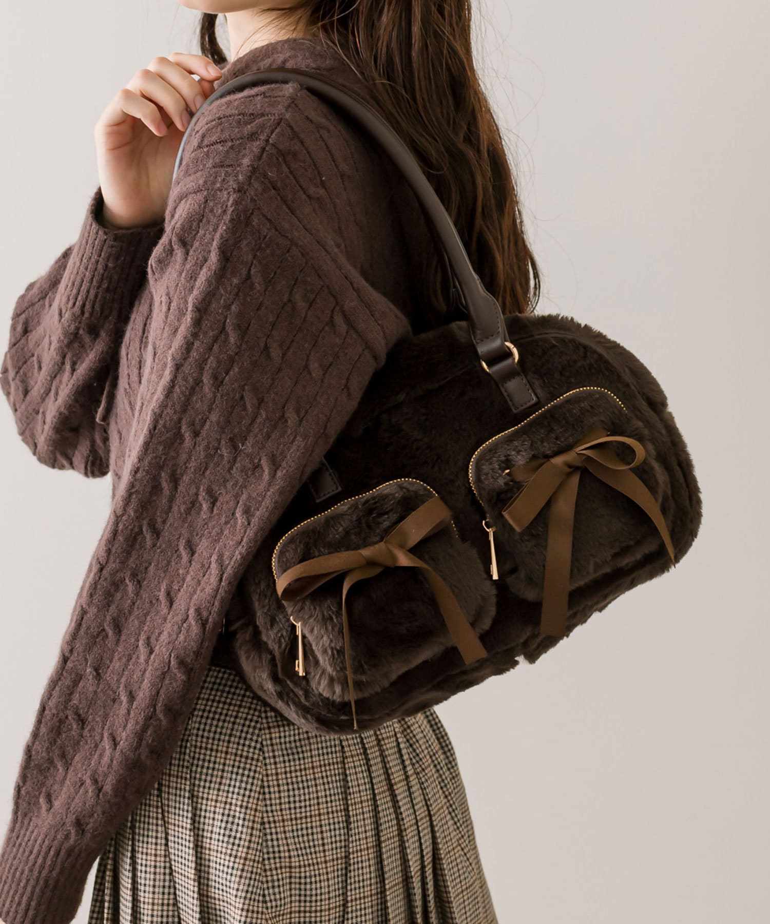 リボンポケット付きファーボストン