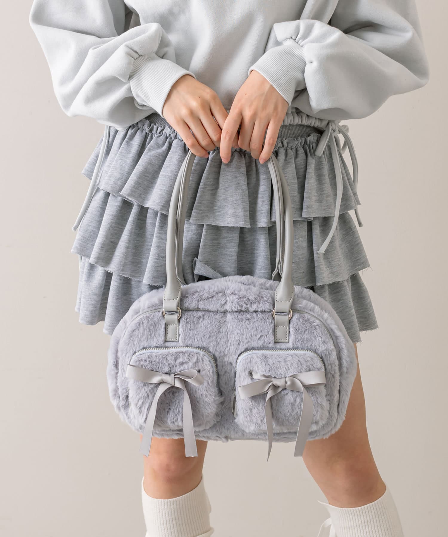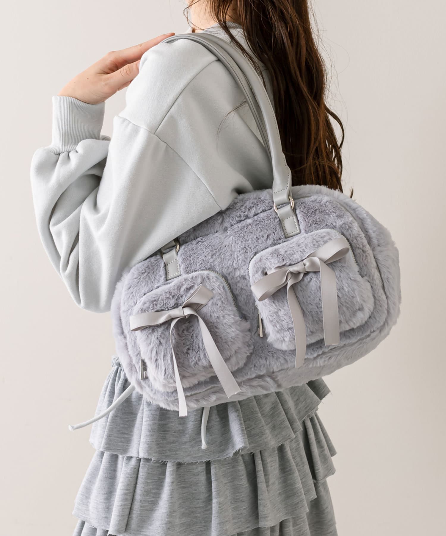 ・ふわふわのファー素材で冬のお出かけにぴったりなボストンバッグ。