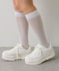・ミニボトムに合わせるときは、ハイソックスと履くと旬な着こなしに◎