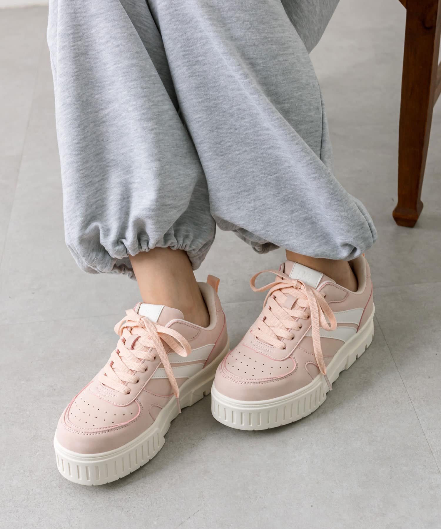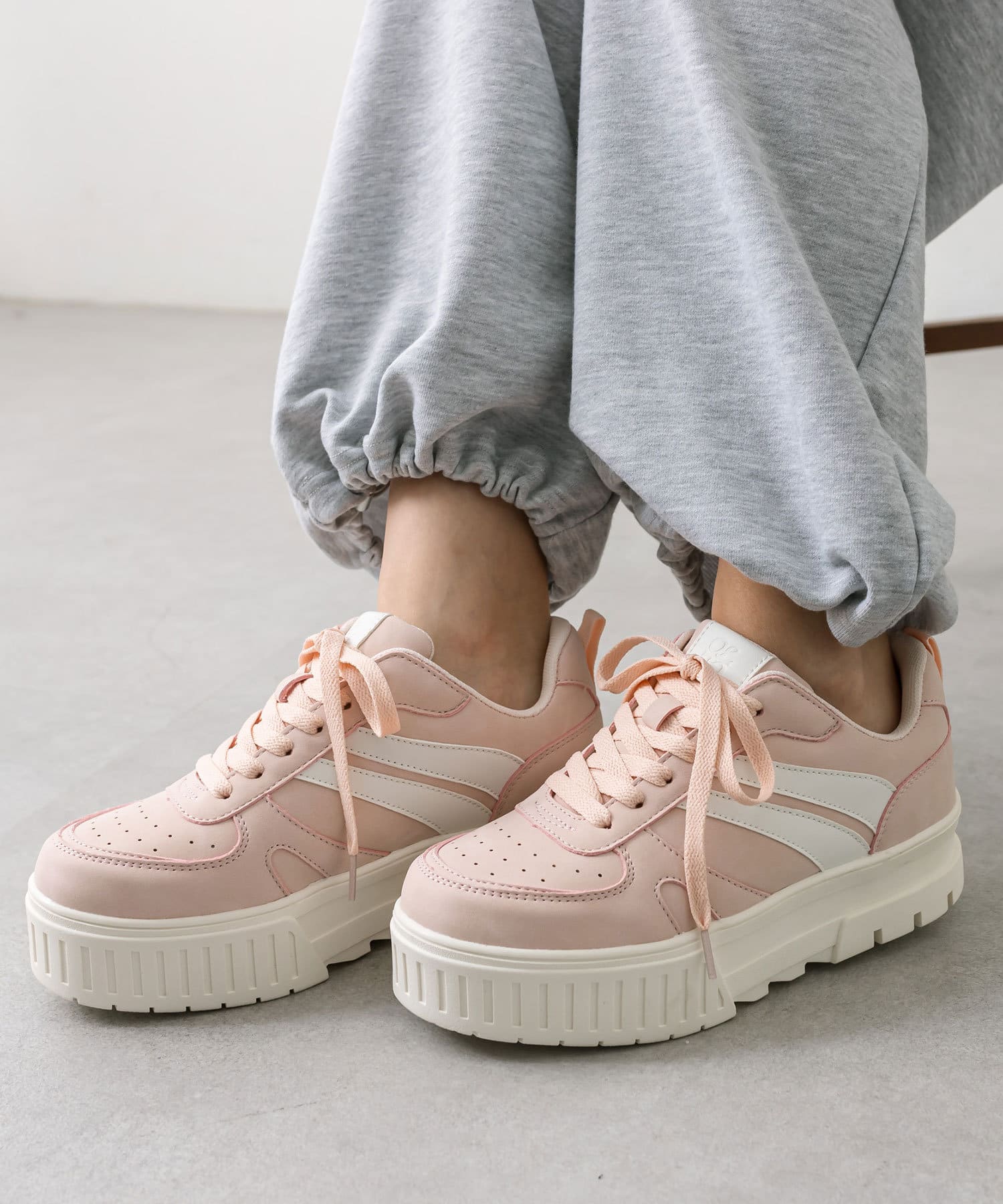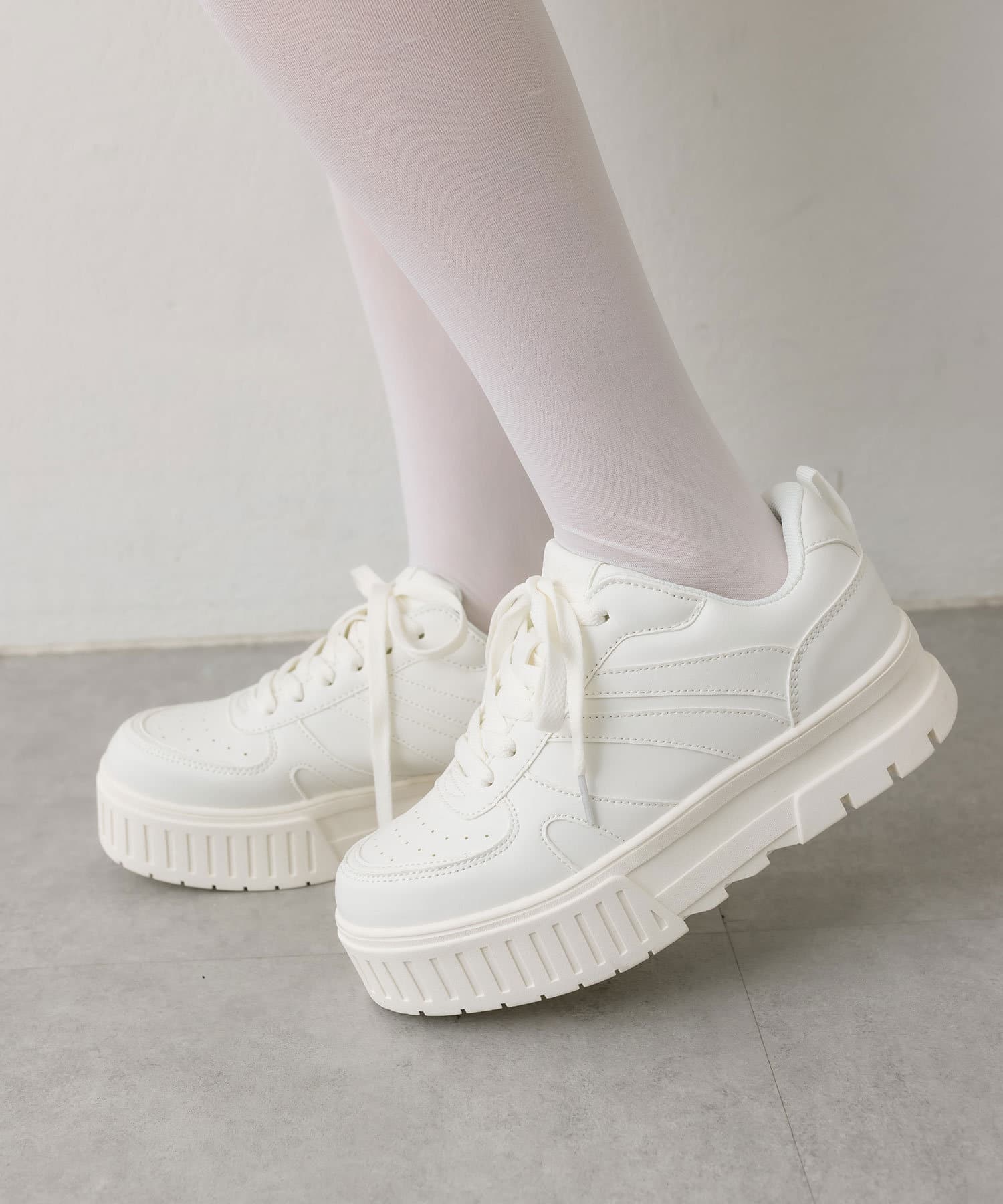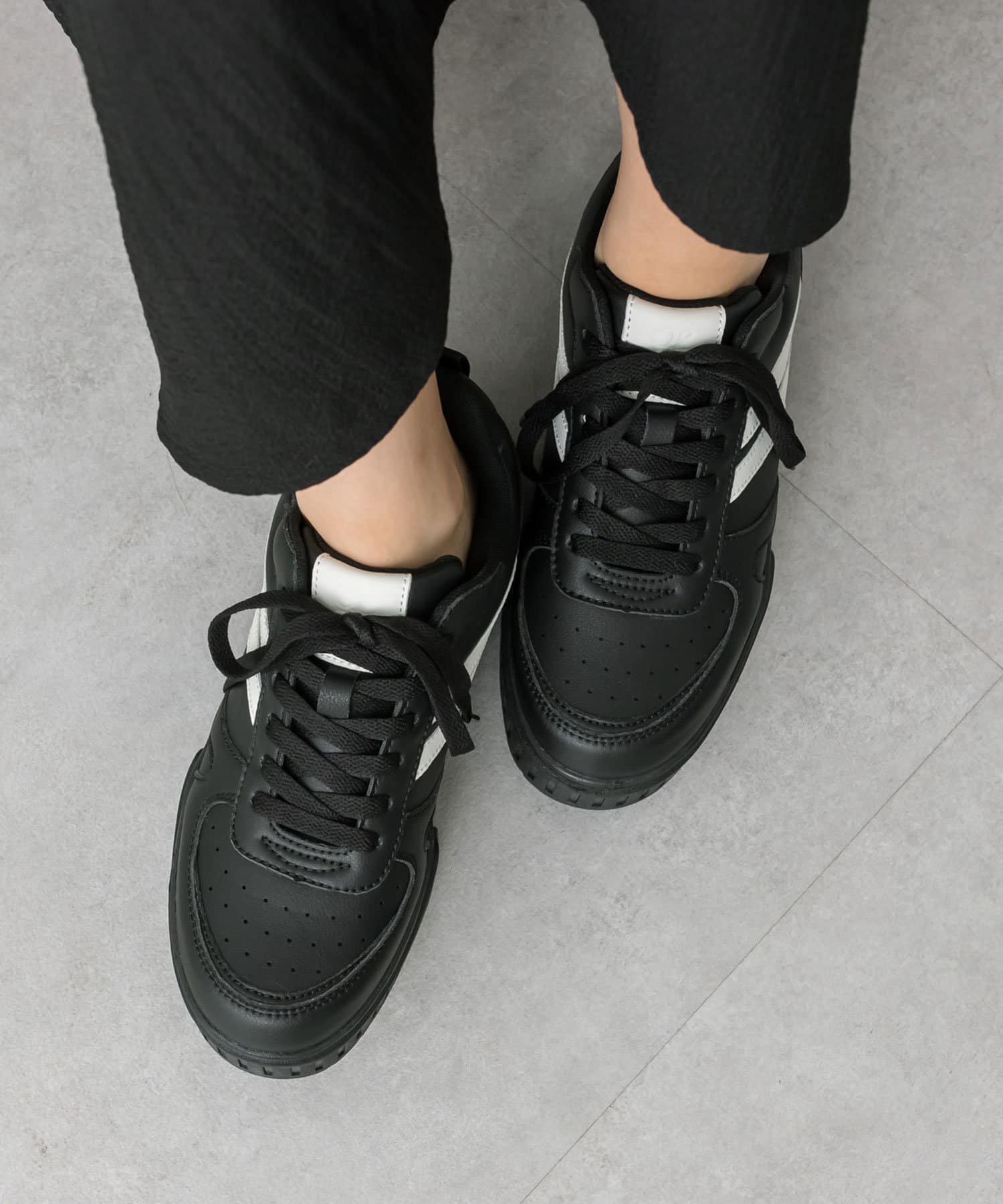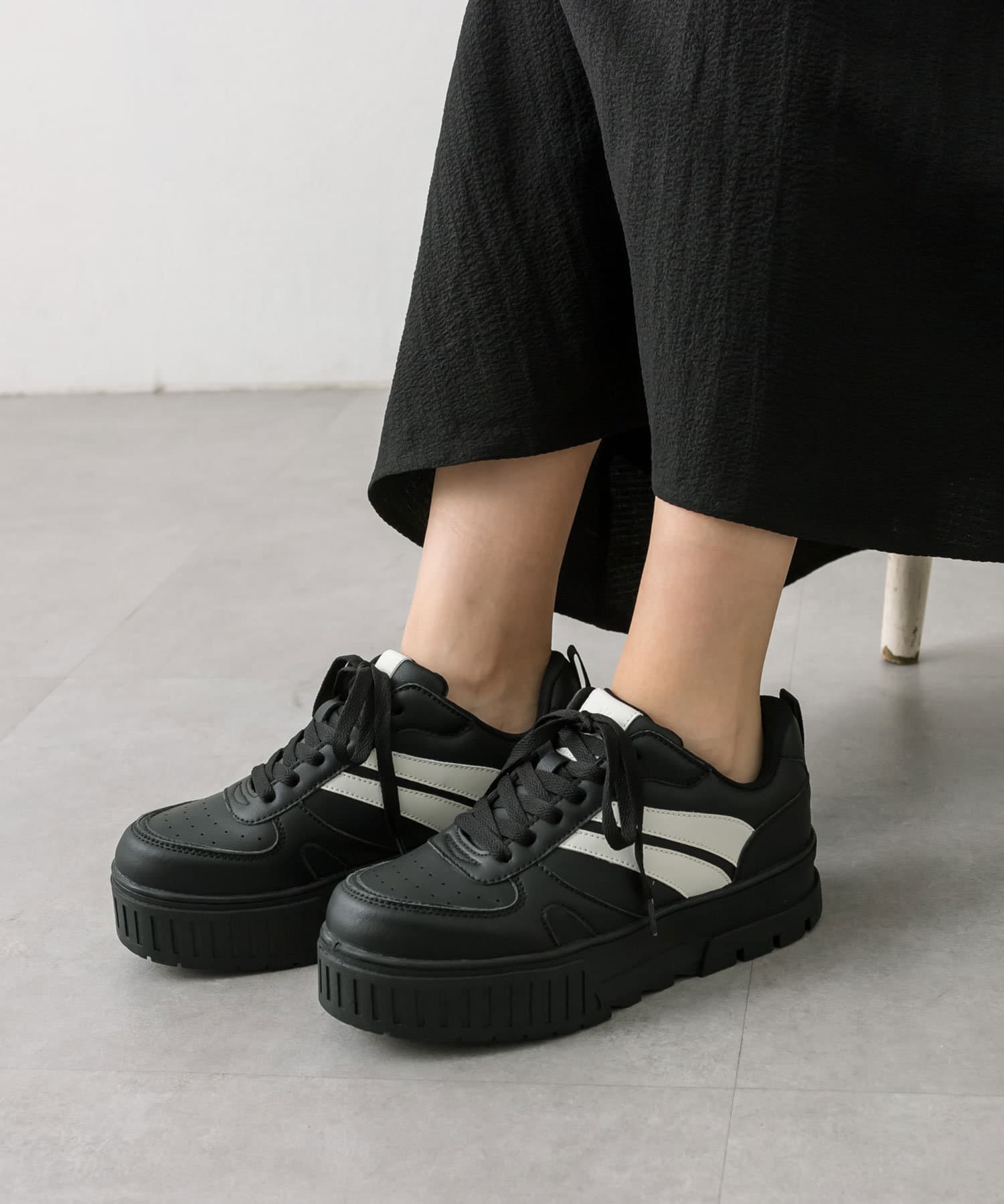 ラインがアクセントになるトレンドの厚底スニーカー
