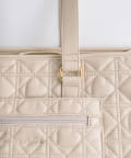 ・高見えする合皮のキルティングを使用した、大容量サイズのキャリーオントート。