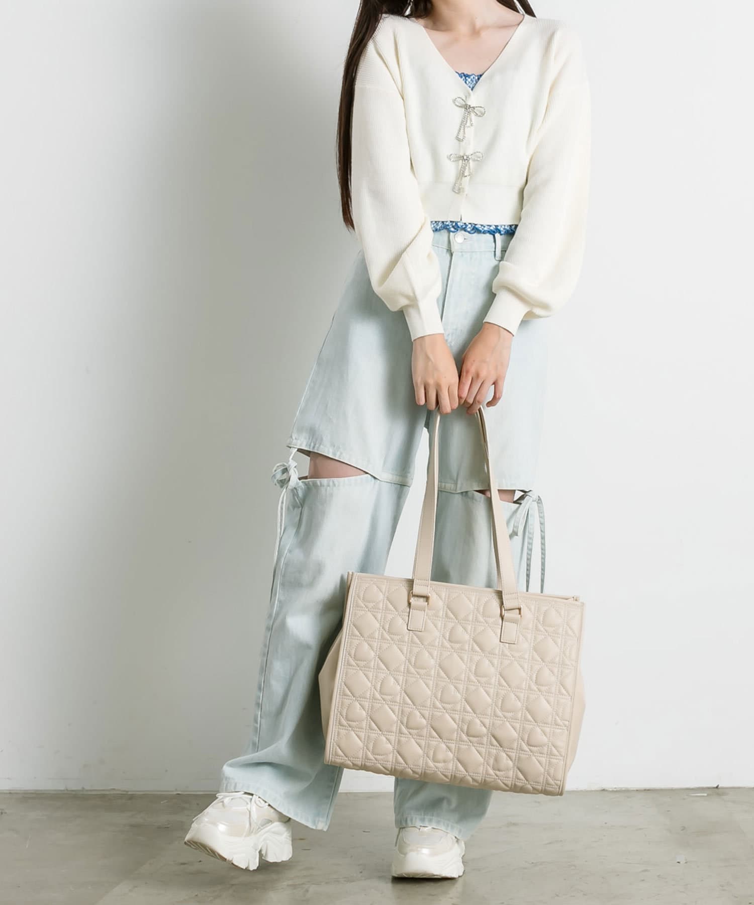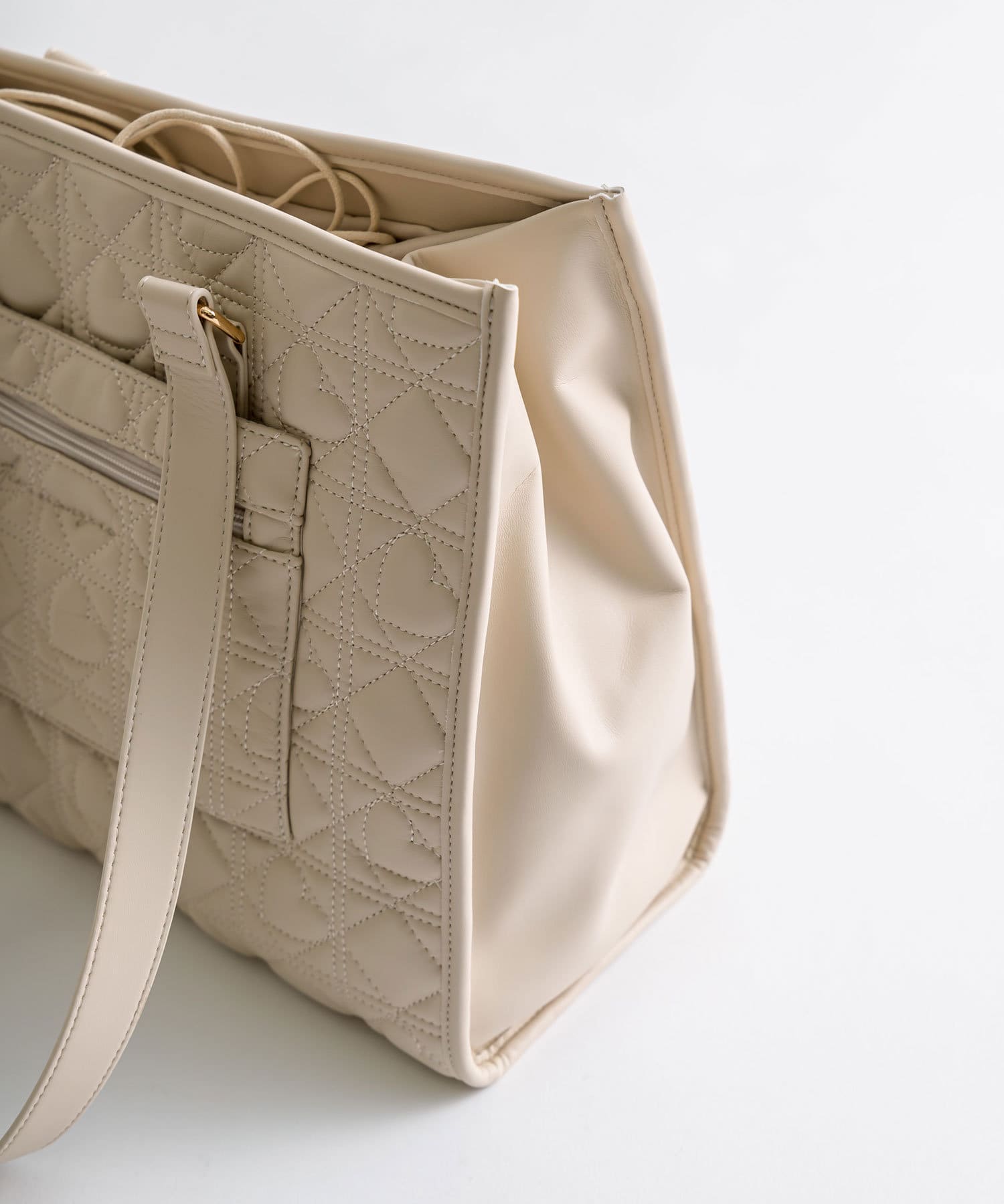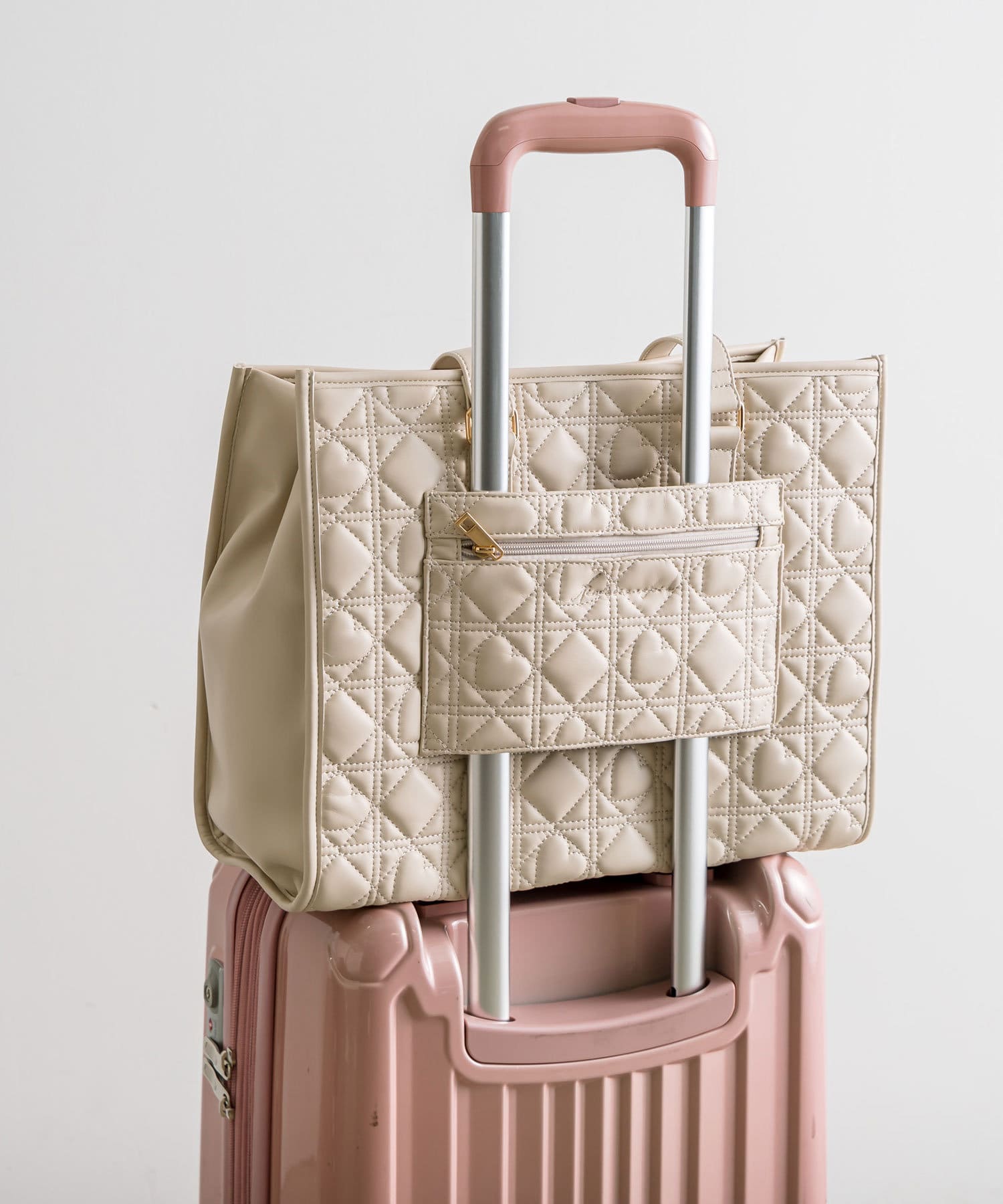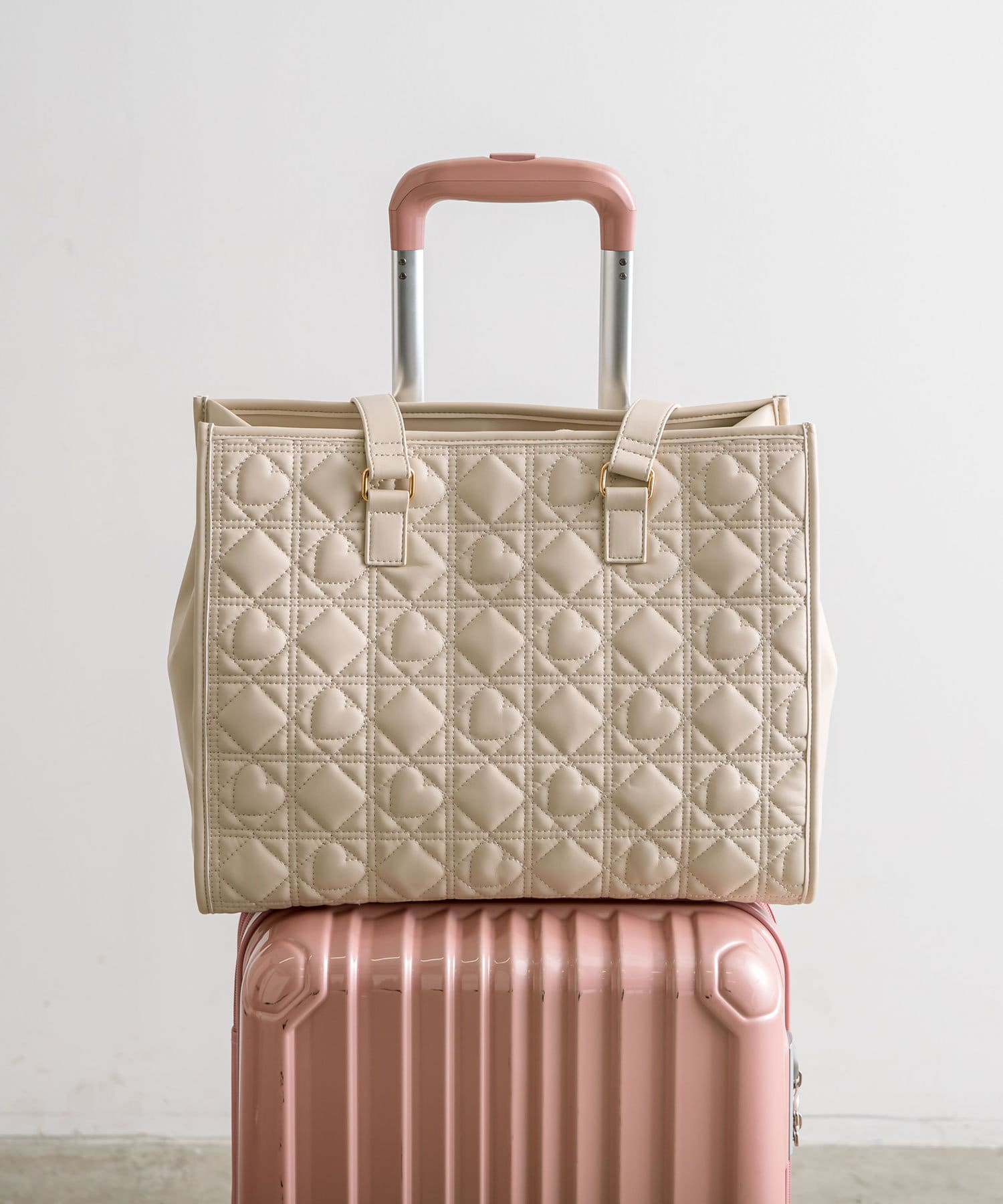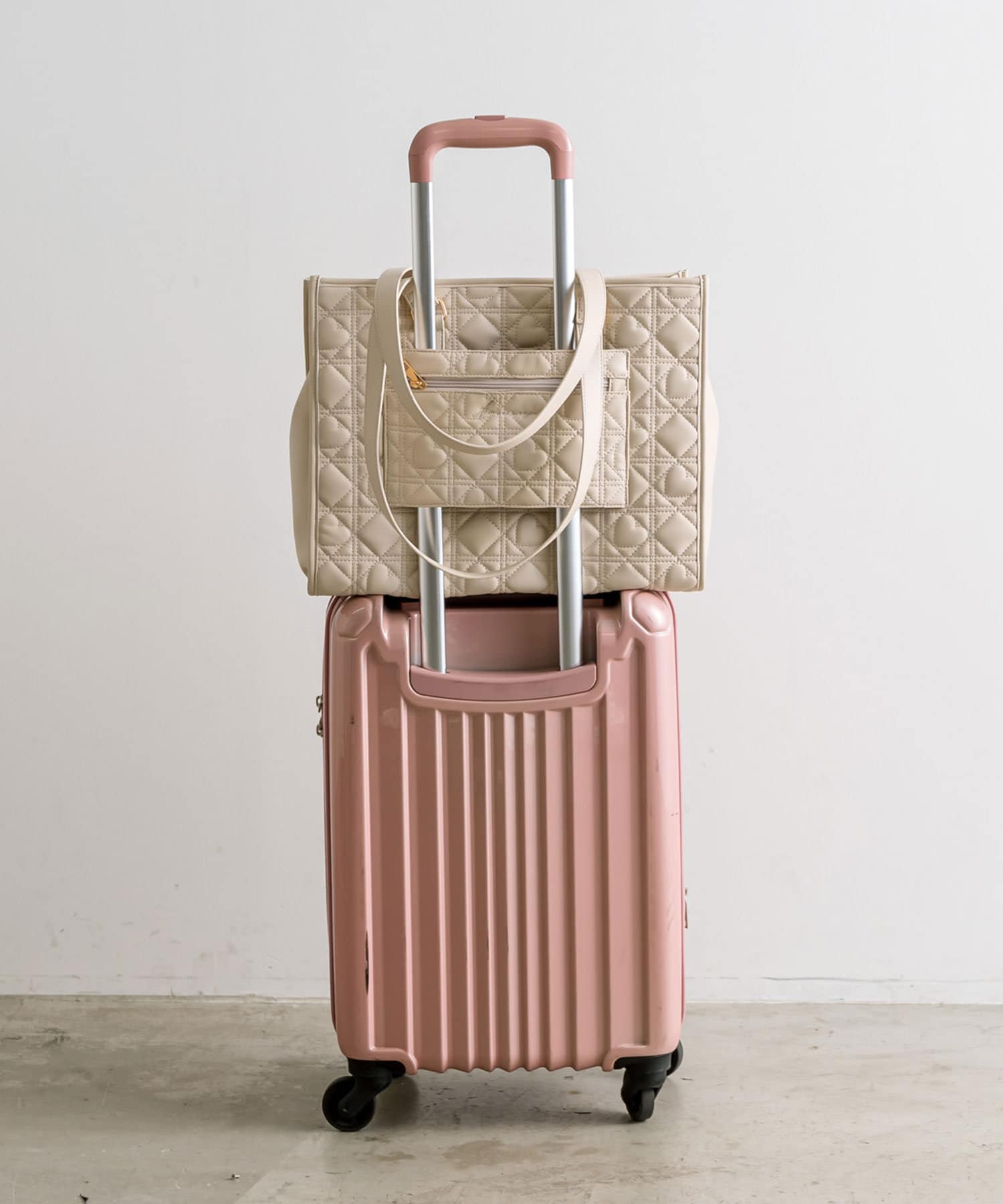 ・高見えする合皮のキルティングを使用した、大容量サイズのキャリーオントート。