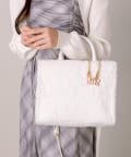 ・秋冬のシーズンムードを高めるファー素材を使用したミニサイズのトートバッグ。