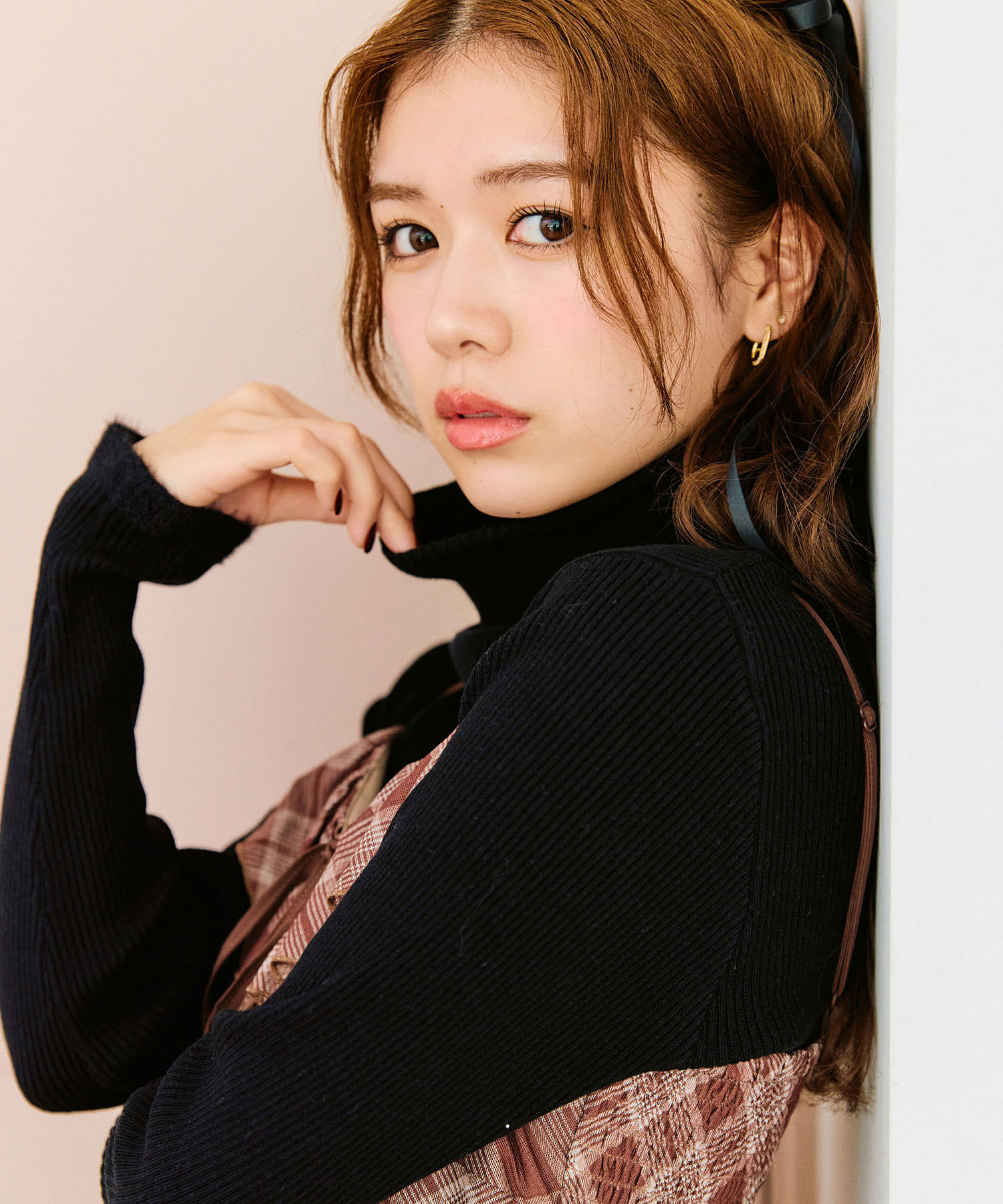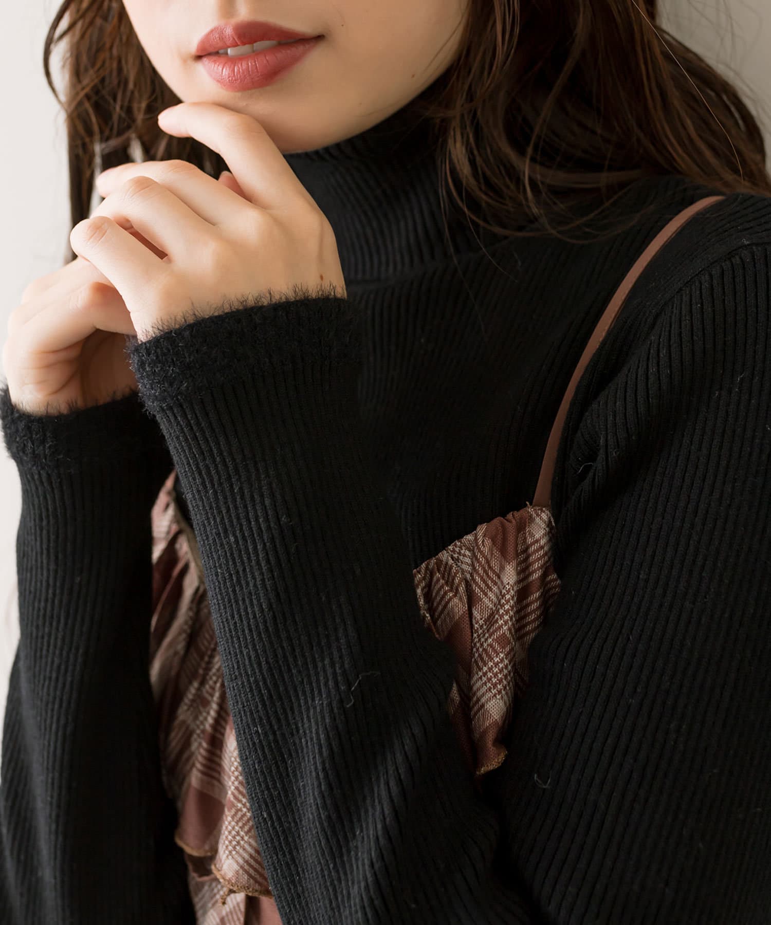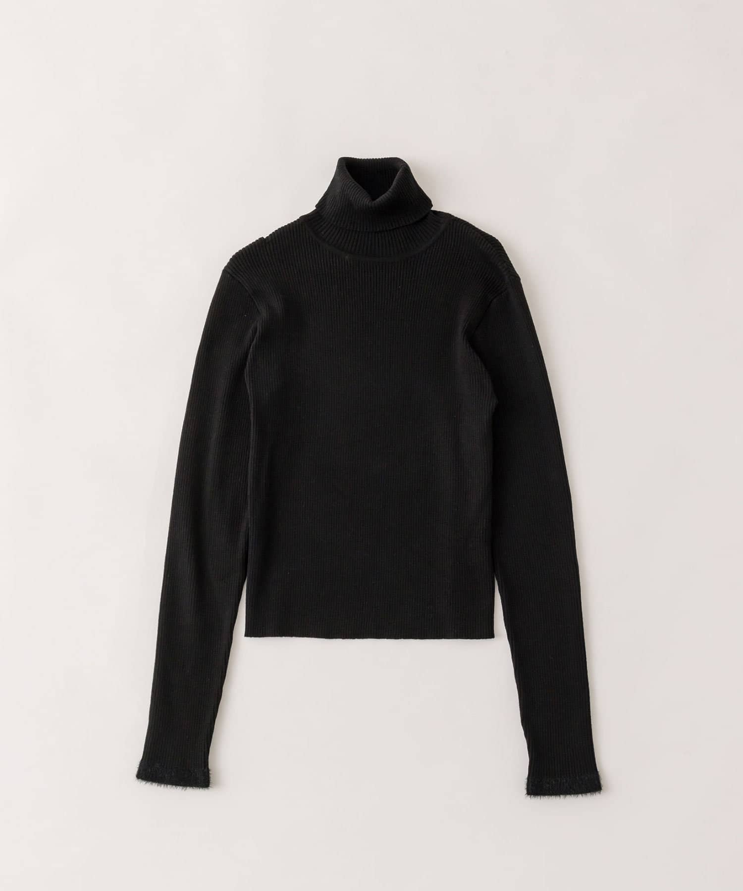 ・シンプルなリブタートルで幅広いコーデに活躍するニット。