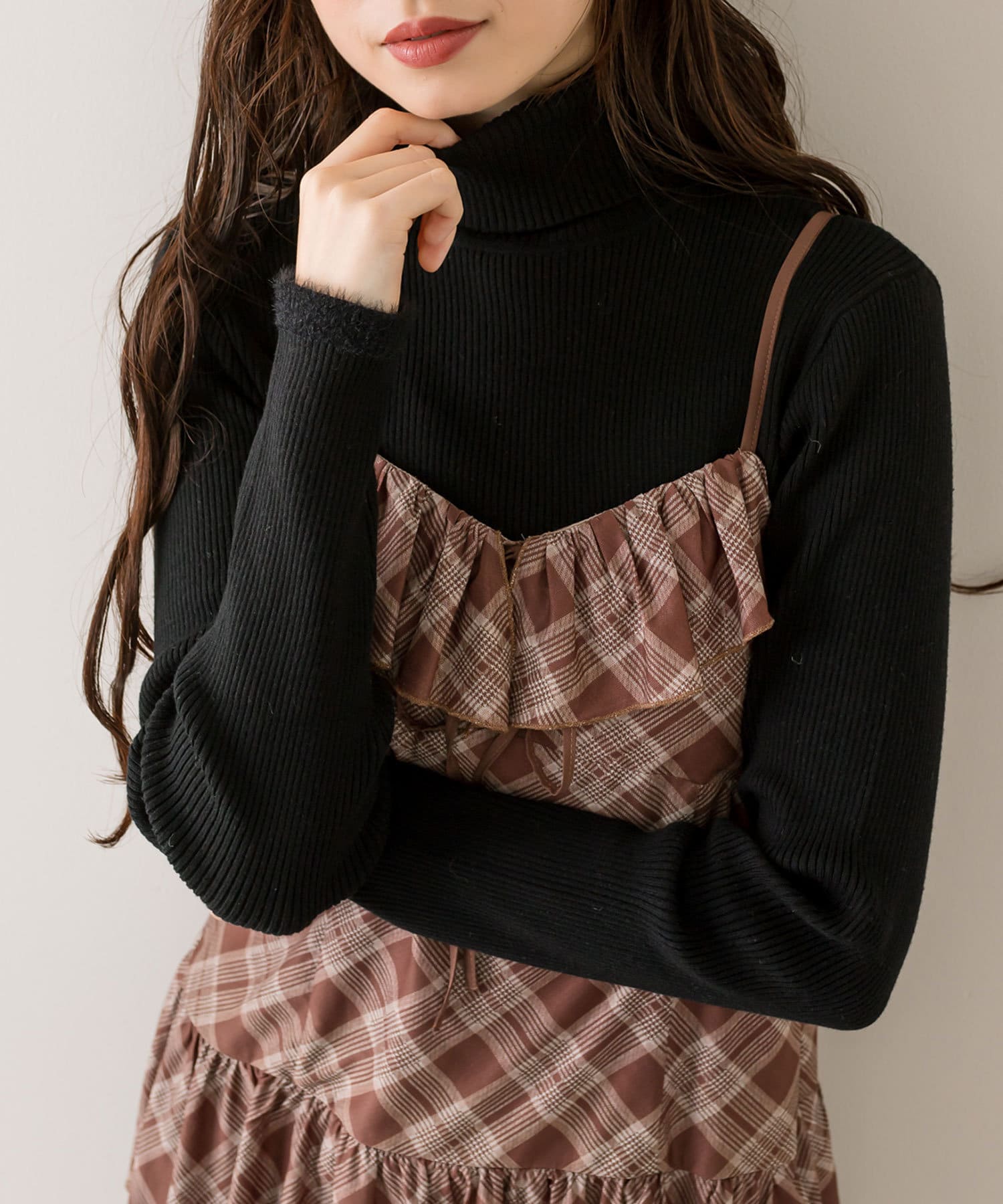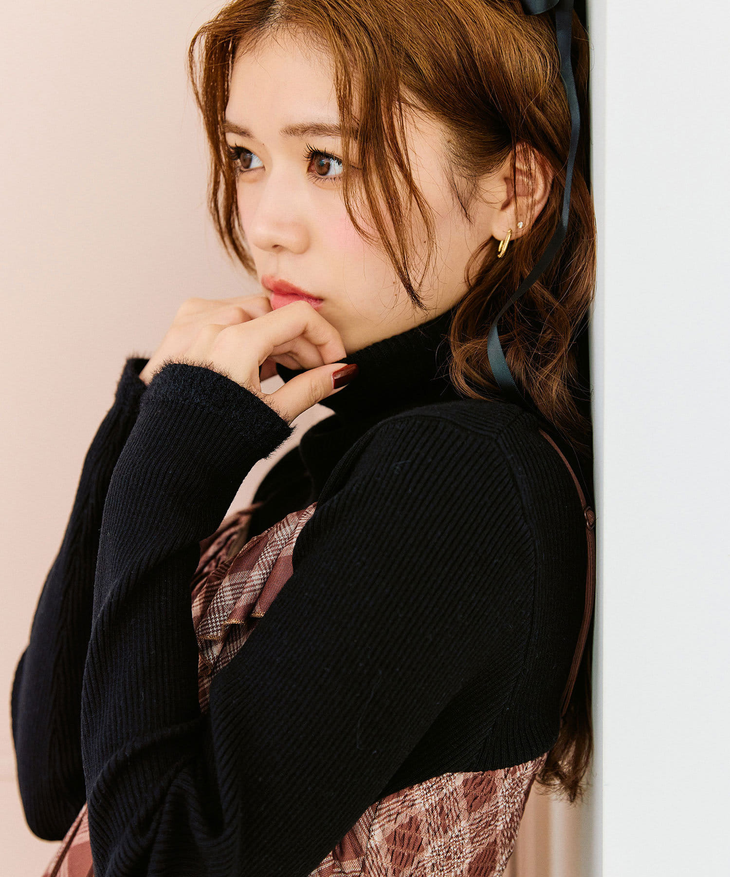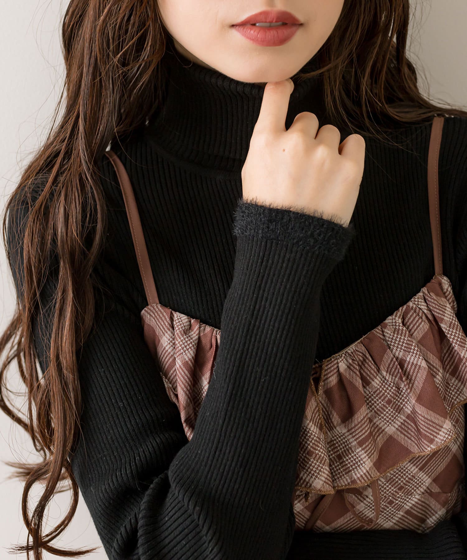 ・シンプルなリブタートルで幅広いコーデに活躍するニット。
