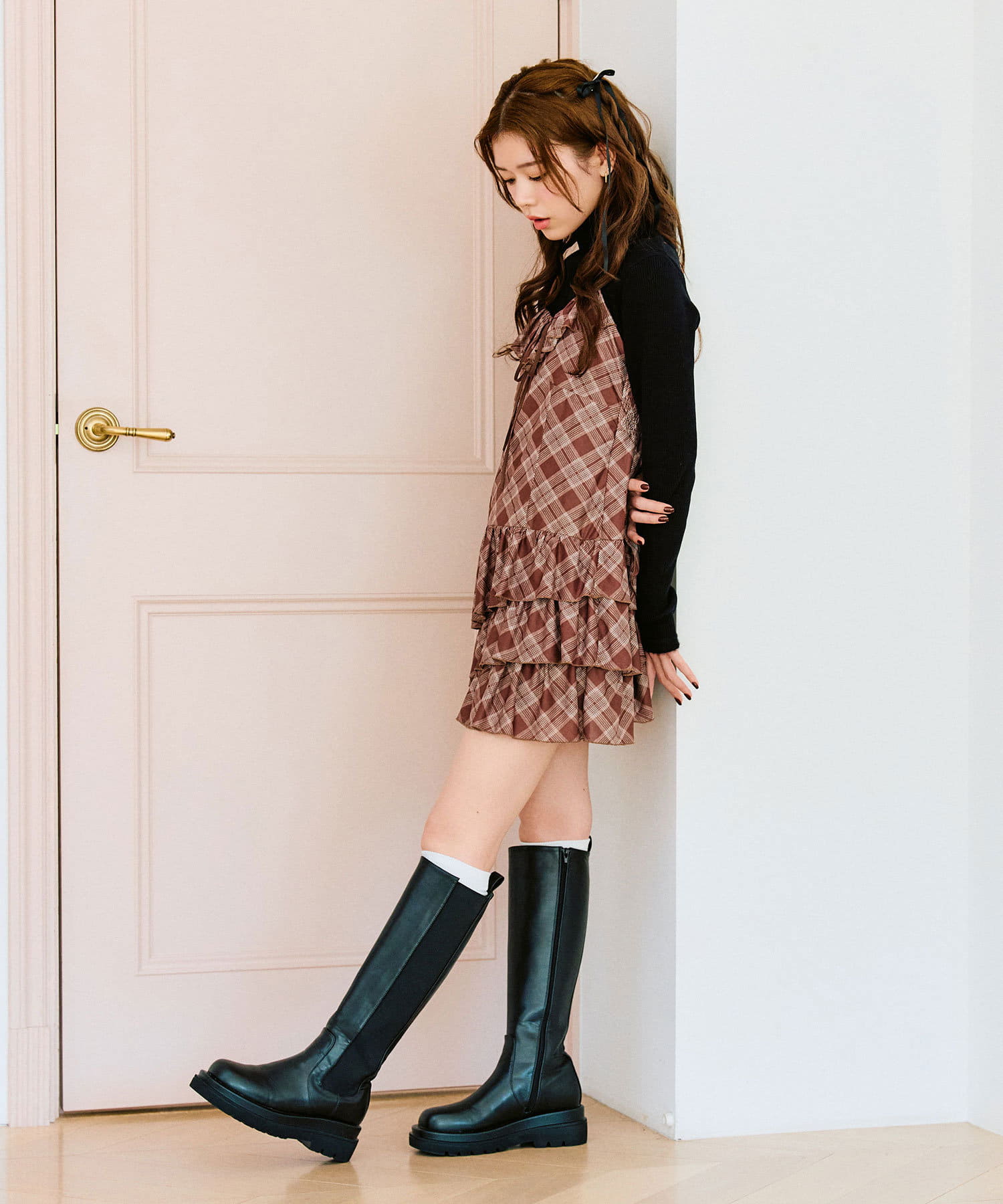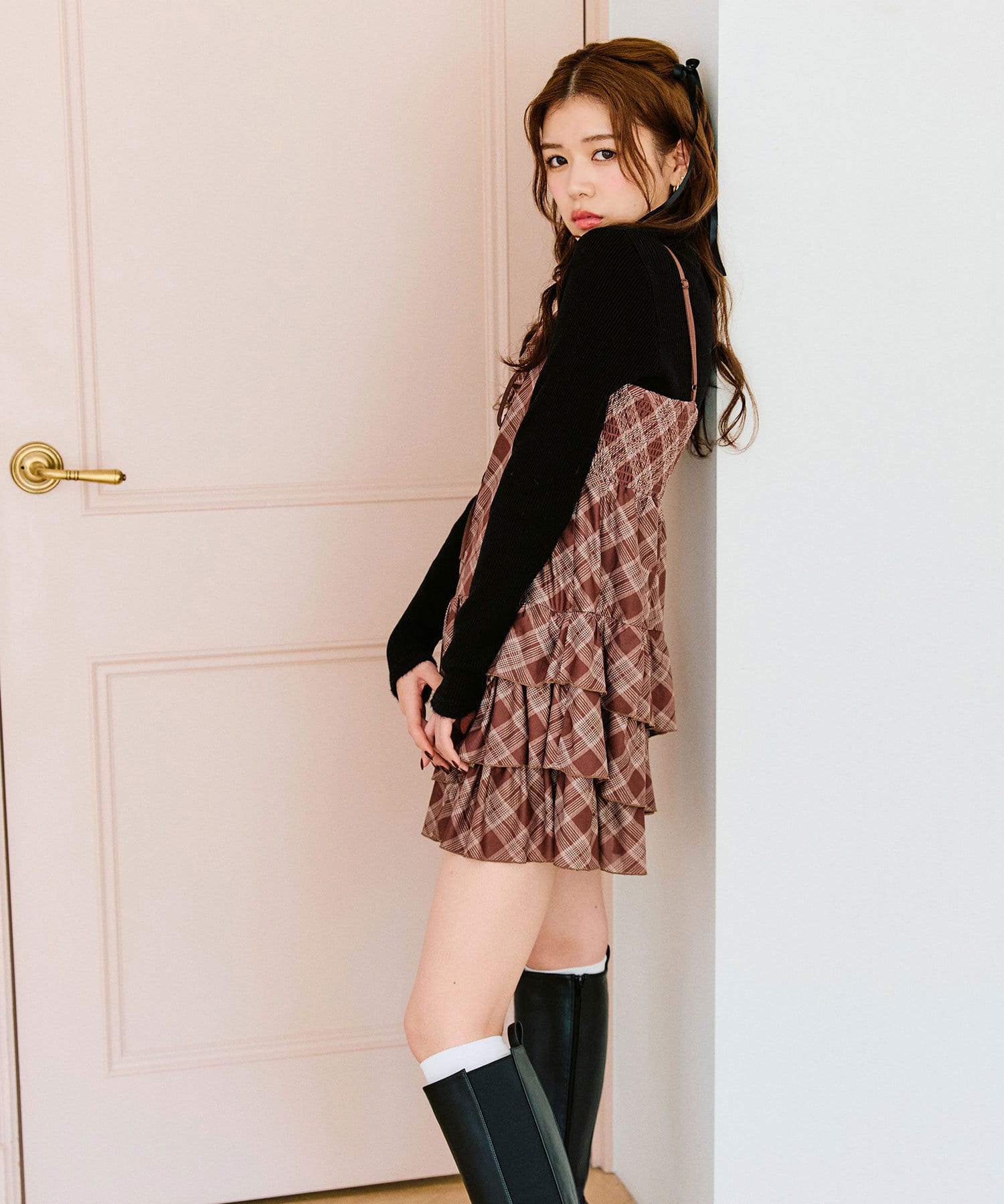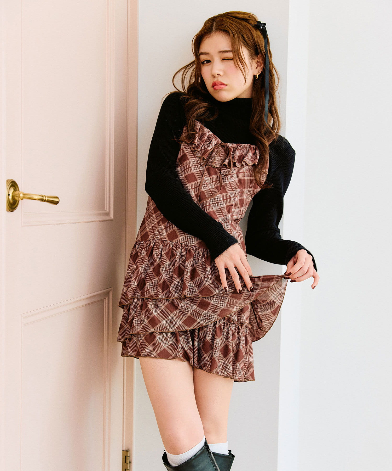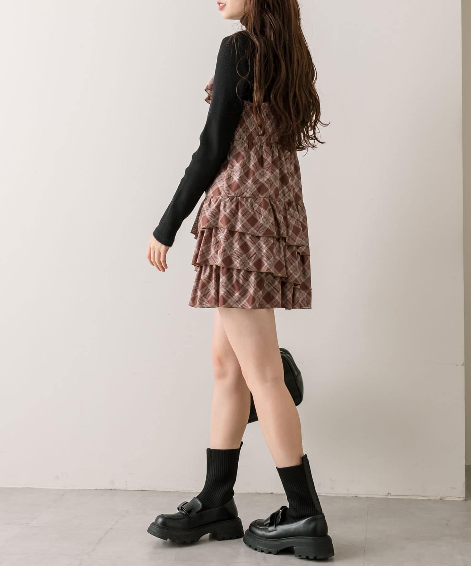 ・アシンメトリーな裾フリルで脚長効果も抜群です。