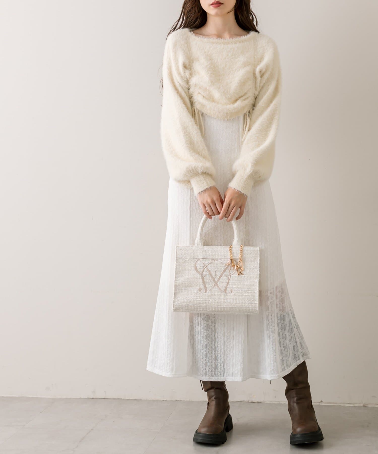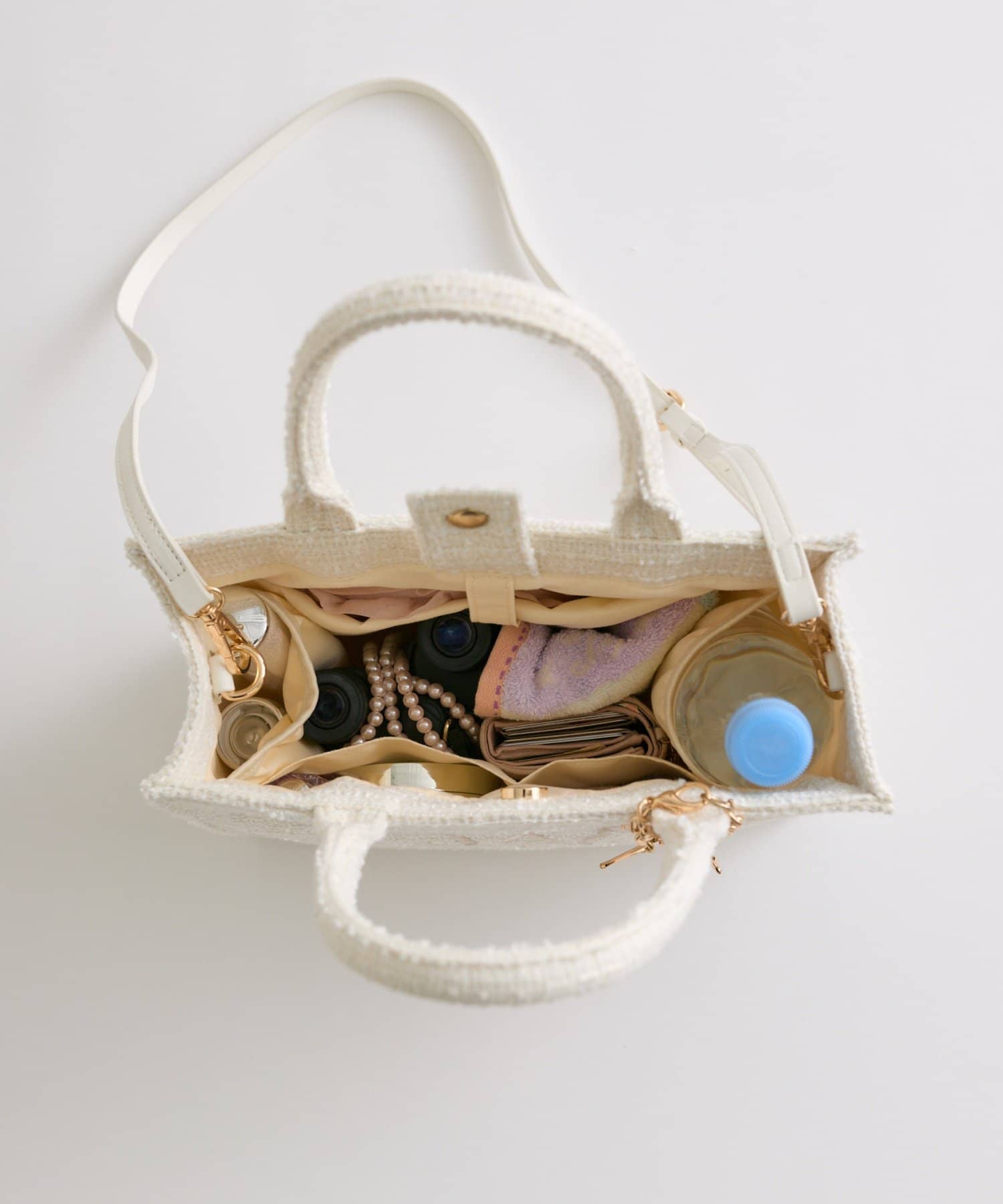 ・高見え間違いなしなツイード生地に、オリジナルのロゴ刺繍を施したミニサイズのトートバッグ。