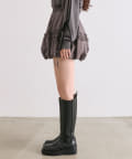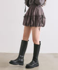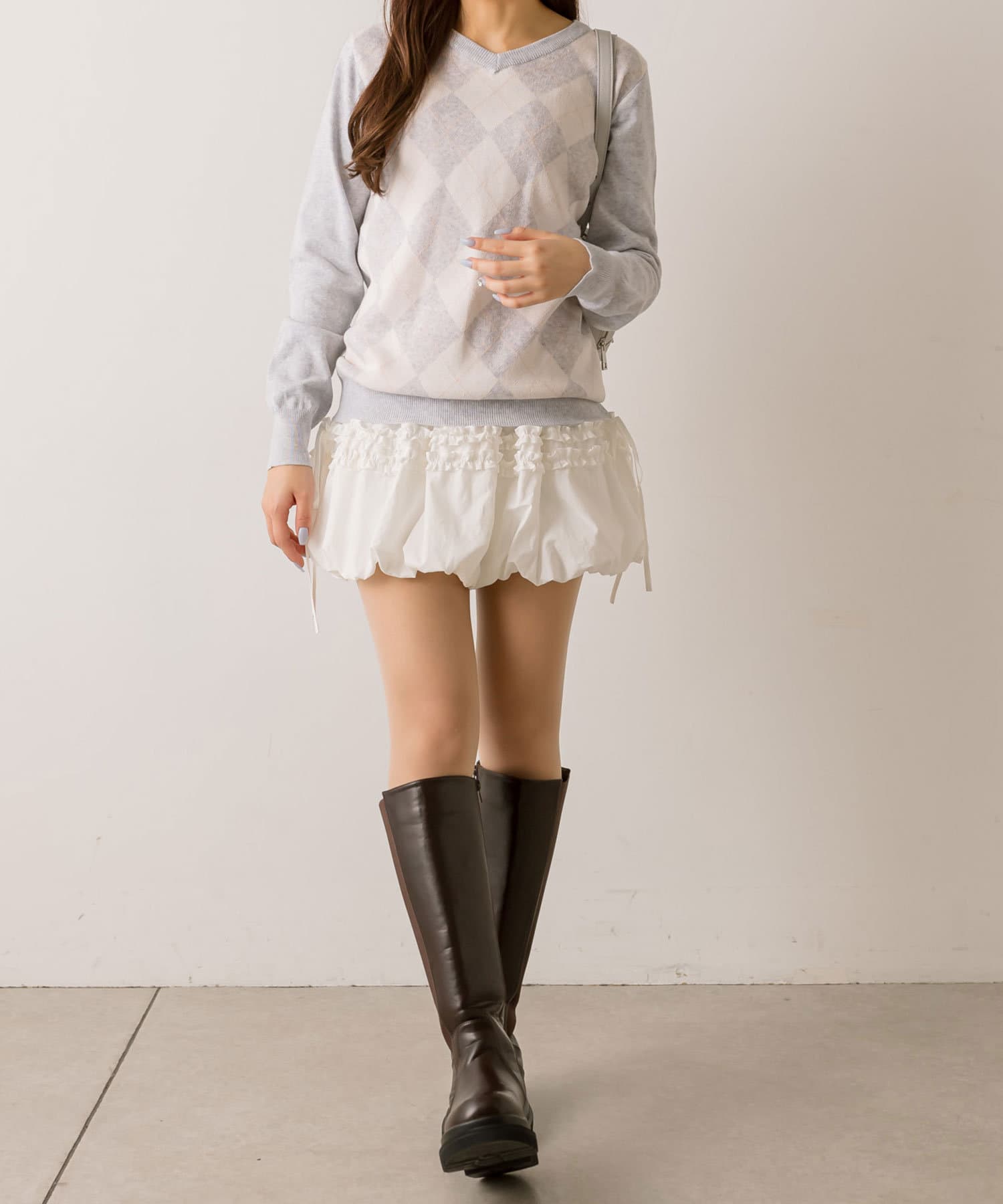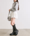 ・足元はハイソックスにブーツやバレエシューズを合わせると韓国っぽい着こなしに。